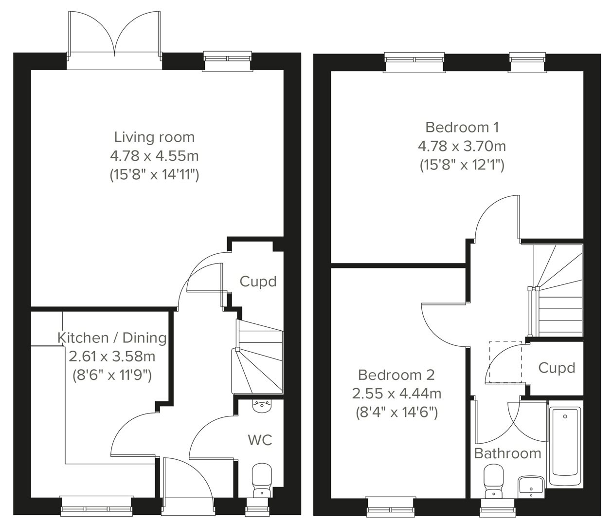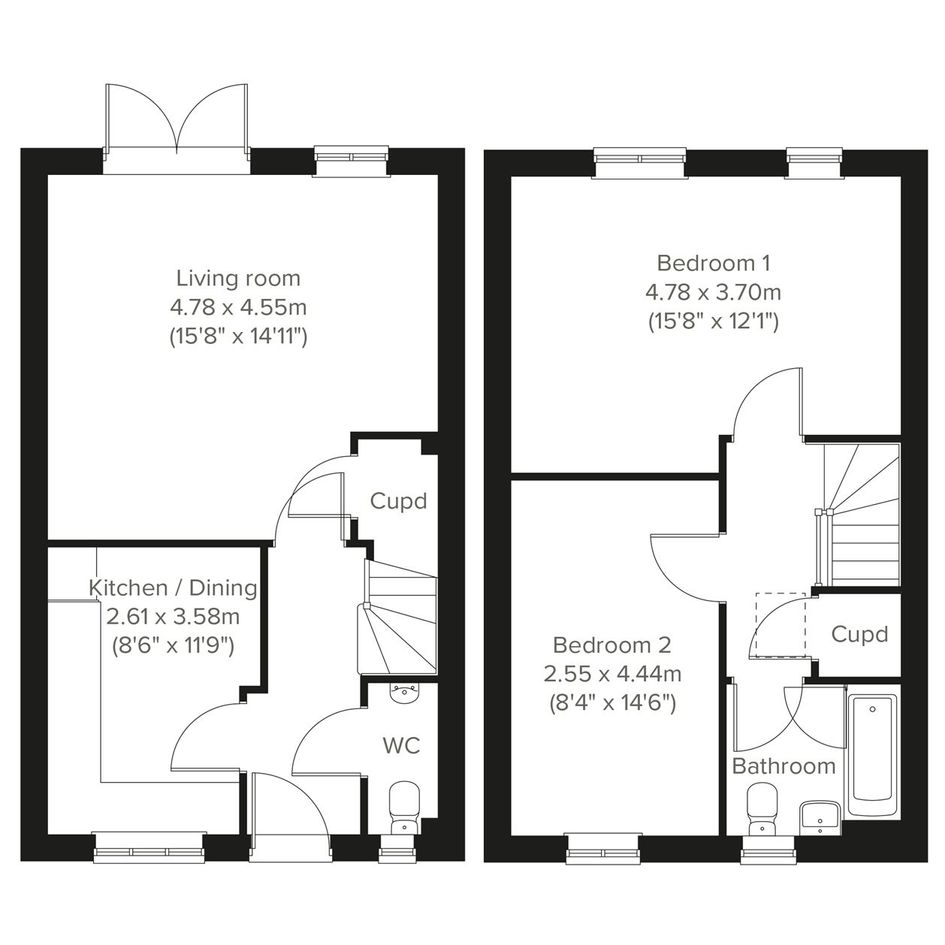 Upstairs, two well-proportioned bedrooms offer comfort and flexibility, complemented by a sleek family bathroom and additional storage.