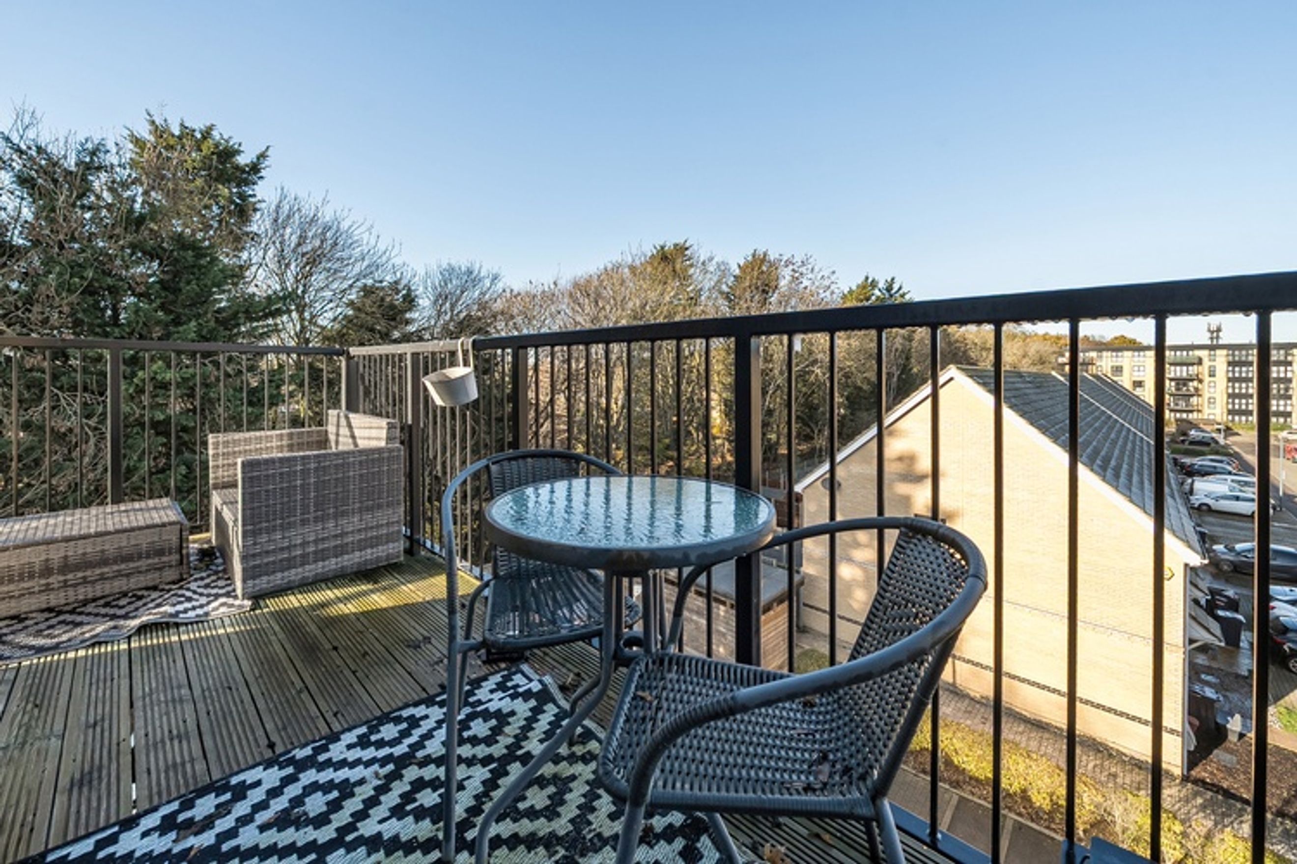 Outside, there is a private wrap-around balcony, allocated parking and a shared garden area. Perfect for couples and small families.