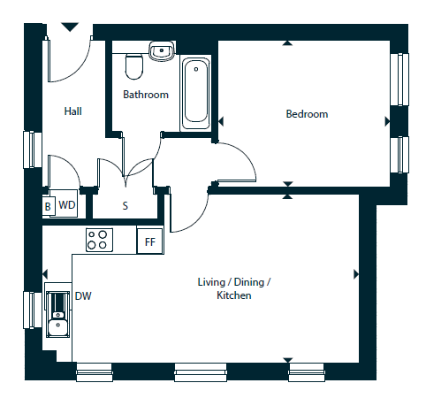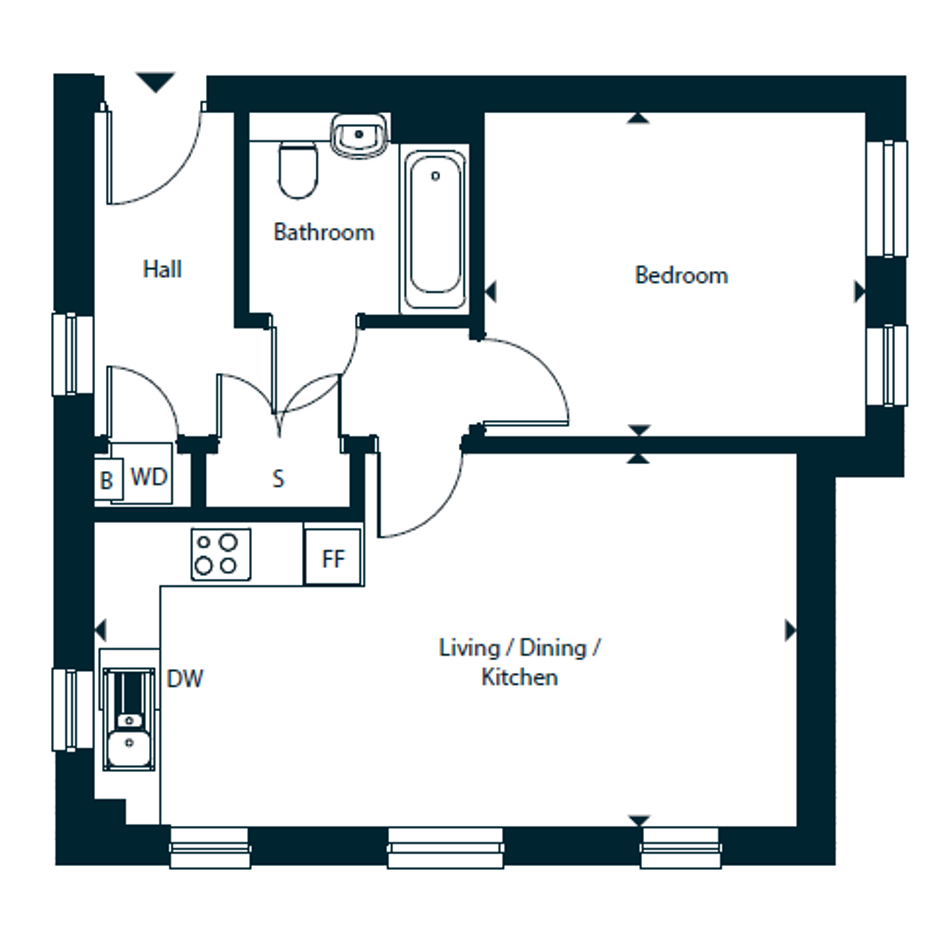 The Briar is a 1-bedroom first floor apartment which offers an open-plan kitchen/living/dining area. The kitchen is complete with integrated appliances for a sleek and modern appearance. With one generously sized bedroom and a modern bathroom, this apartment is perfect for a first time buyer.