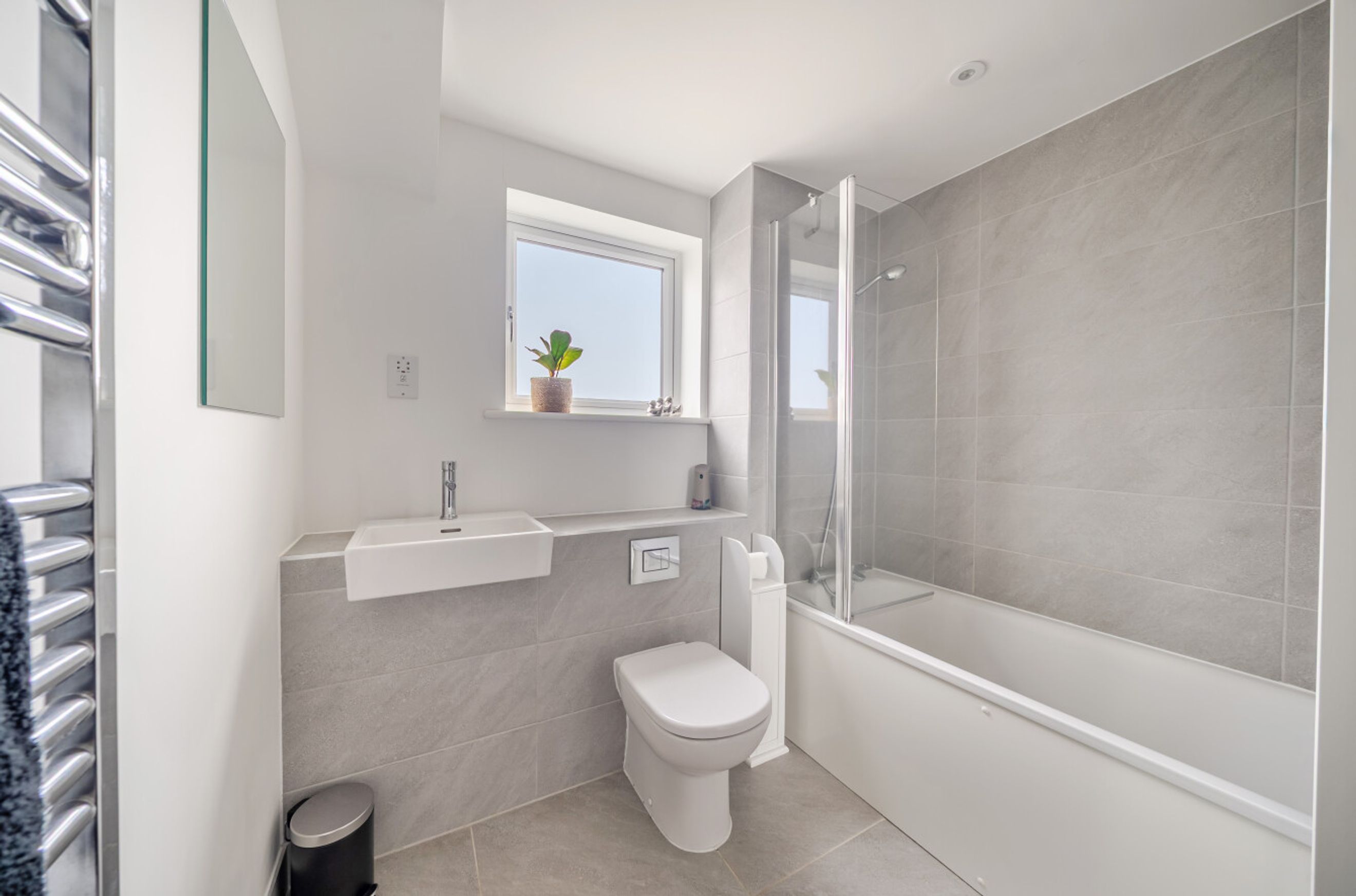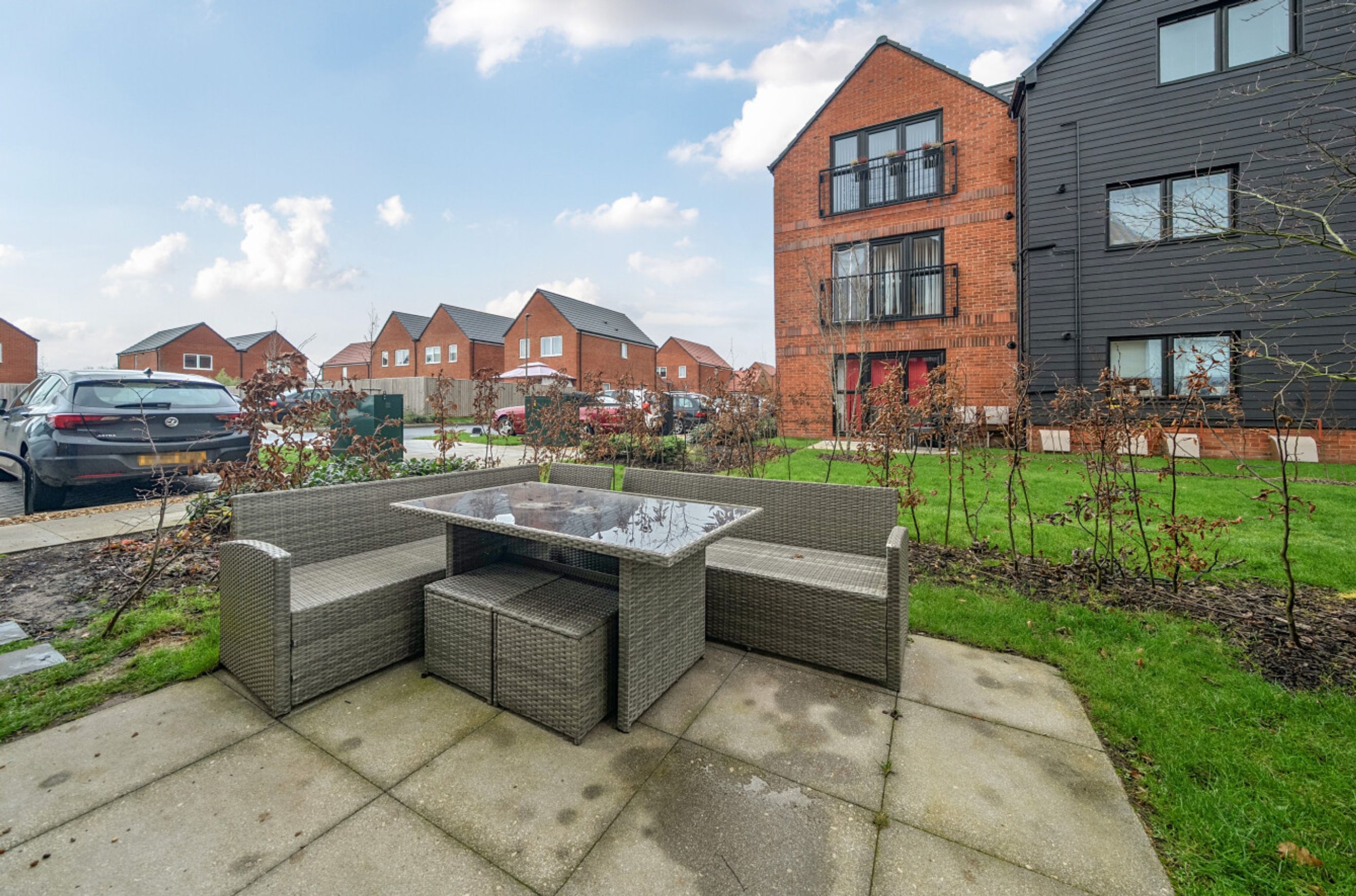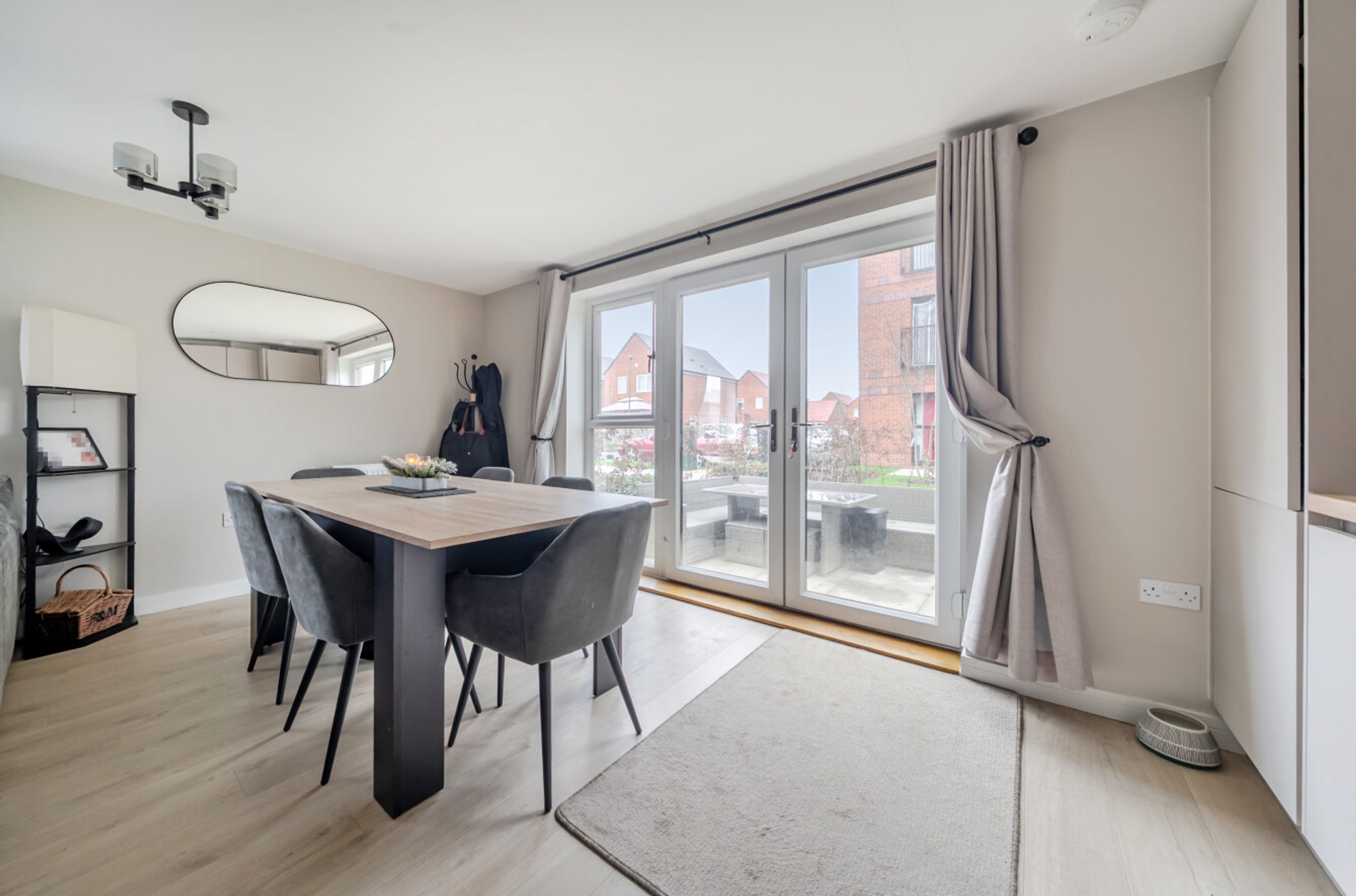 This stylishly-presented flat is on the ground floor of a recently-constructed development on the semi-rural outskirts of Cranleigh. The property has a large reception room with attractive flooring, handle-less kitchen units and integrated appliances. There are windows on two sides plus double doors that open onto an area of private patio. These doors can also be used as an alternative entrance, if desired. The bedrooms are similar-sized doubles and the bathroom is sleek, modern and naturally lit. A pair of built-in storage/utility cupboards have been provided in the hallway and the energy-efficiency rating is very good, thanks to well insulated walls and floor, high performance glazing and gas central heating. The flat comes with use of two parking spaces and is also within comfortable walking distance, or a brief bike ride, of Cranleigh High Street. The village, considered by some to be the largest in Britain, has an arts centre and leisure centre, along with a range of shops and other amenities. Knowle Country Park is a nearby and recently-developed nature reserve which offers beautiful, outside space to enjoy as well as hosting occasional events. Guildford is approximately eight miles to the north-west, Horsham around twelve miles south-east.