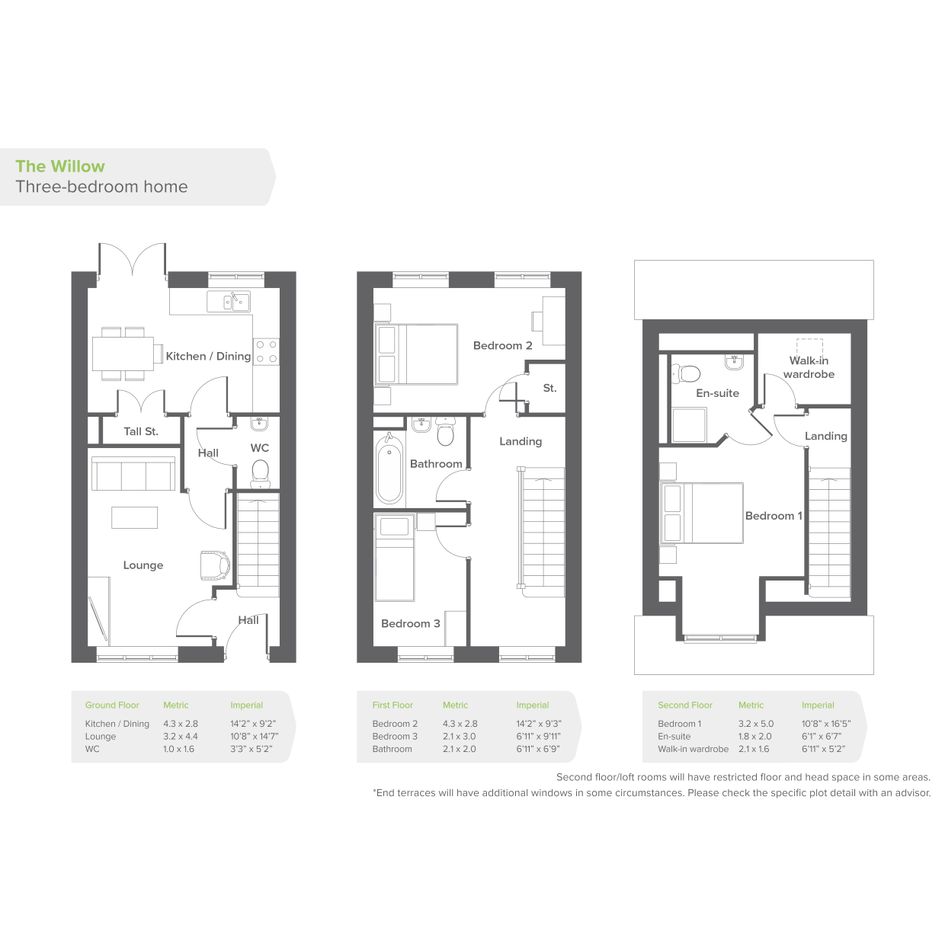 The first floor of The Willow is made up of two bedrooms, one double and one single, and a sparkling three-piece family bathroom containing an over-bath shower plus designer taps and tiling completes this floor.