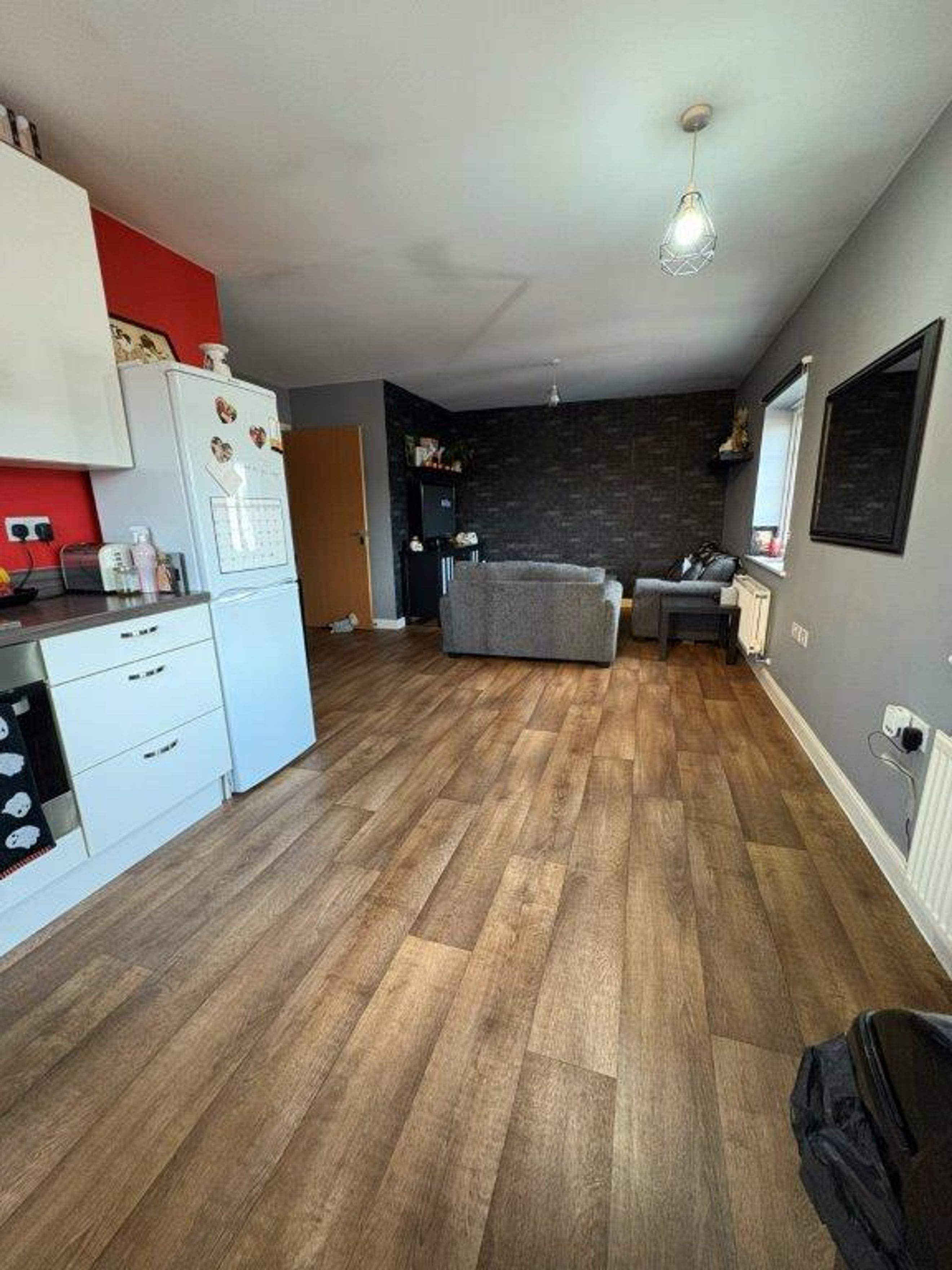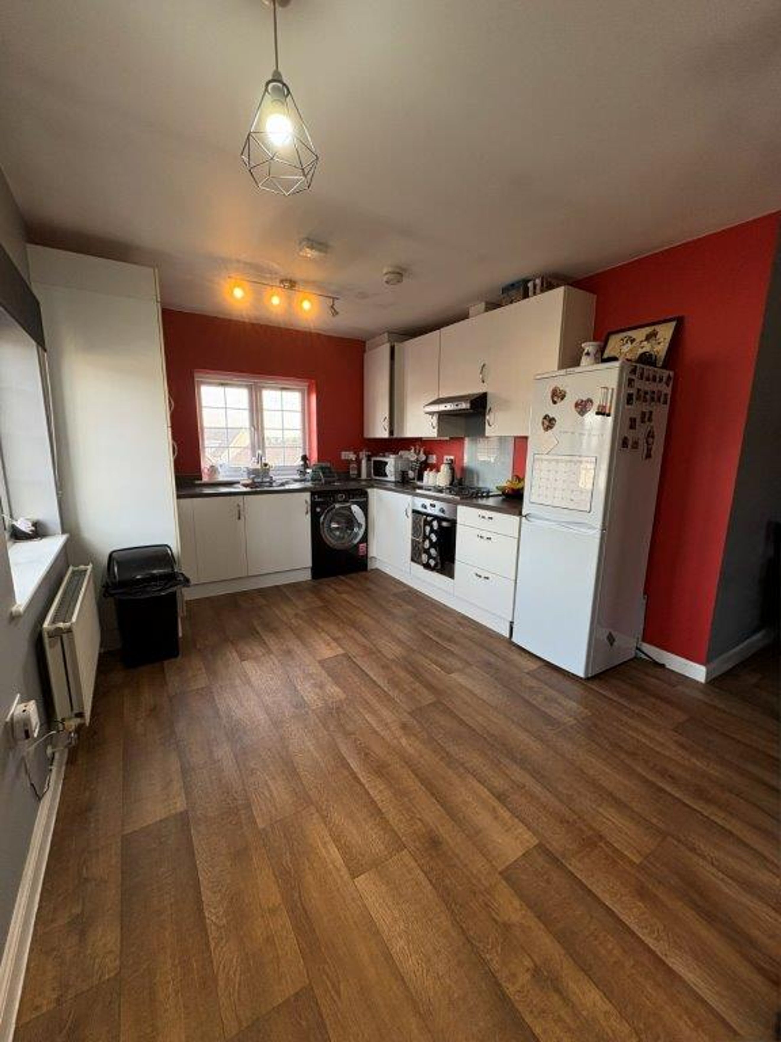 The large open-plan kitchen/living area is perfect for relaxing or entertaining, complemented by three generous storage cupboards.