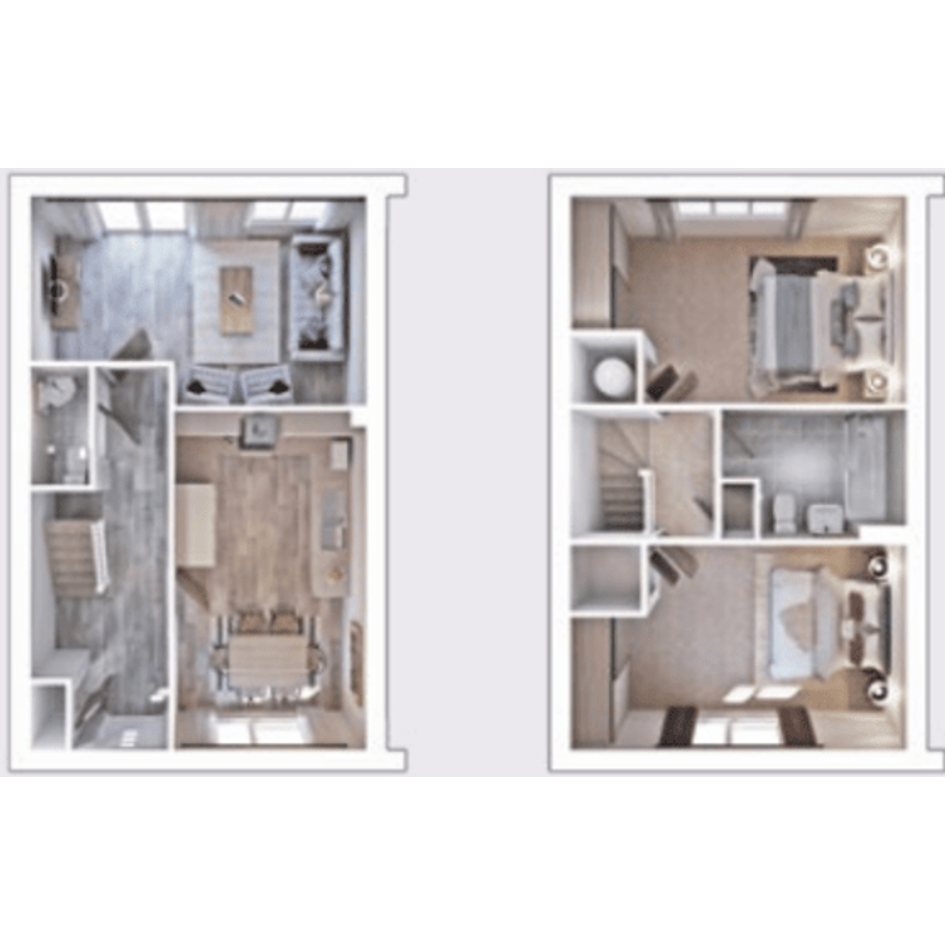 On entry into The Cooper, you'll find yourself in a long hallway leading to a downstairs W/C, storage cupboard, stairs and the two ground-floor rooms.
