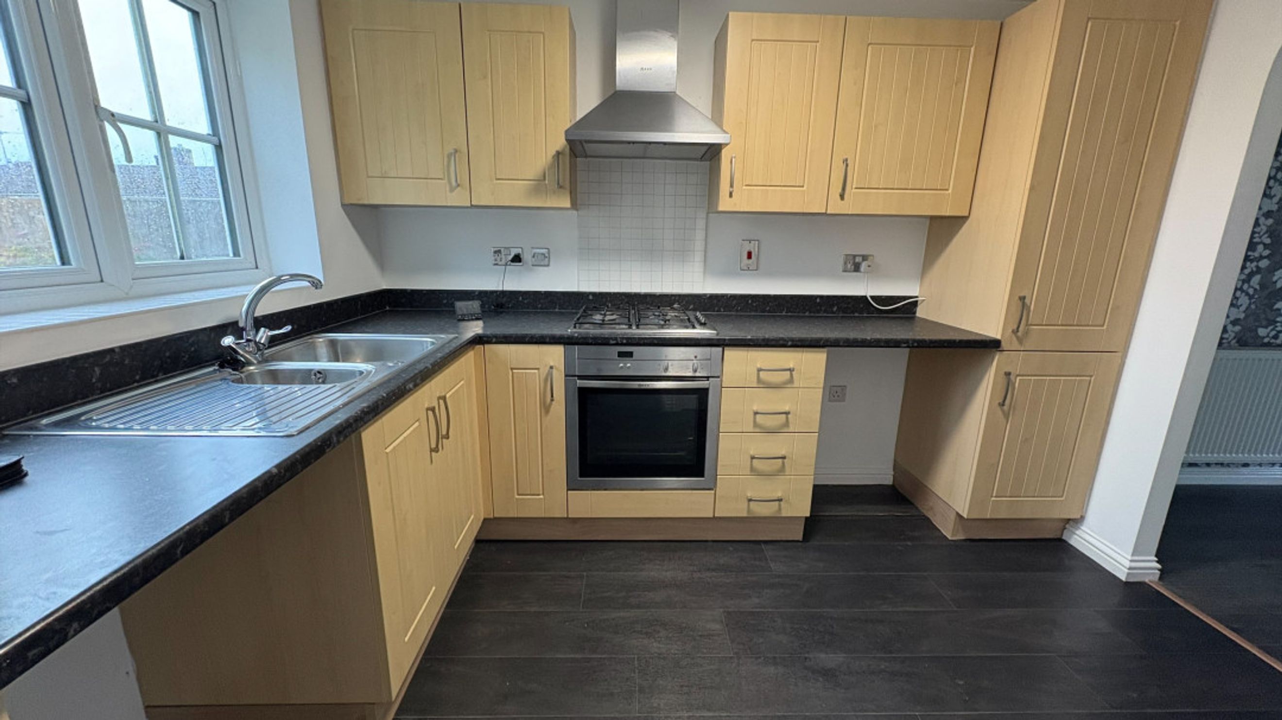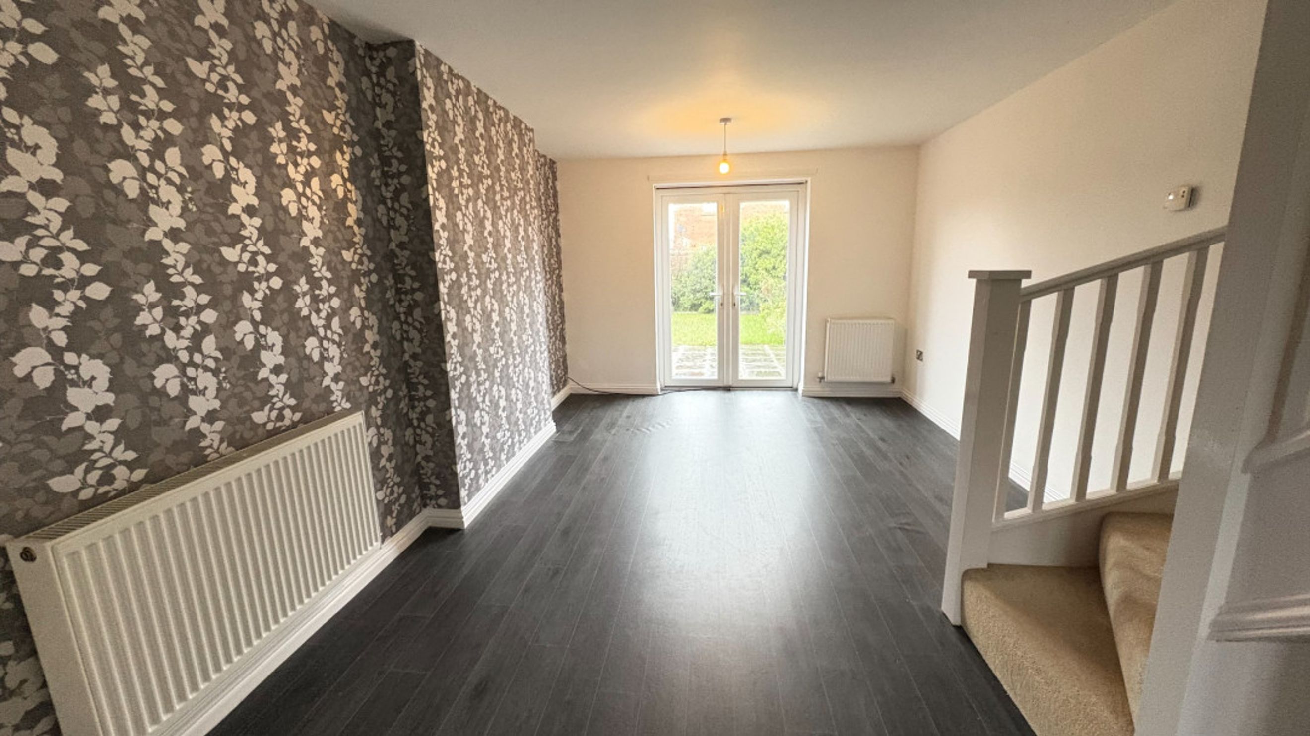 Entering the ground floor of the property, you are greeted by an entrance hall leading to the stairs, a living room with double doors leading out into the garden of the property, a kitchen/dining room with integrated appliances (oven, hob and extractor hood) and a downstairs W/C.