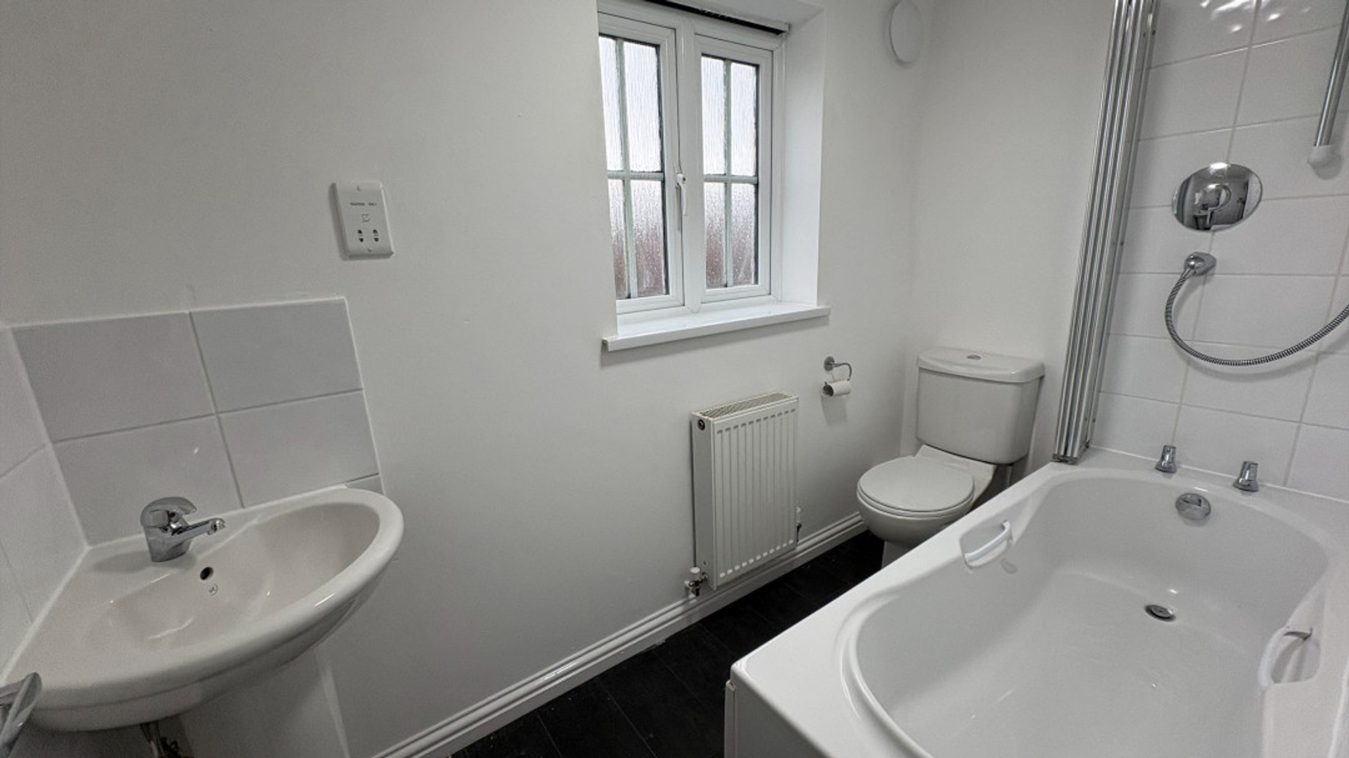 Upstairs you have a landing, 2 bedrooms, with a family bathroom which has a bath with a shower over head. There is also allocated parking for one vehicle.