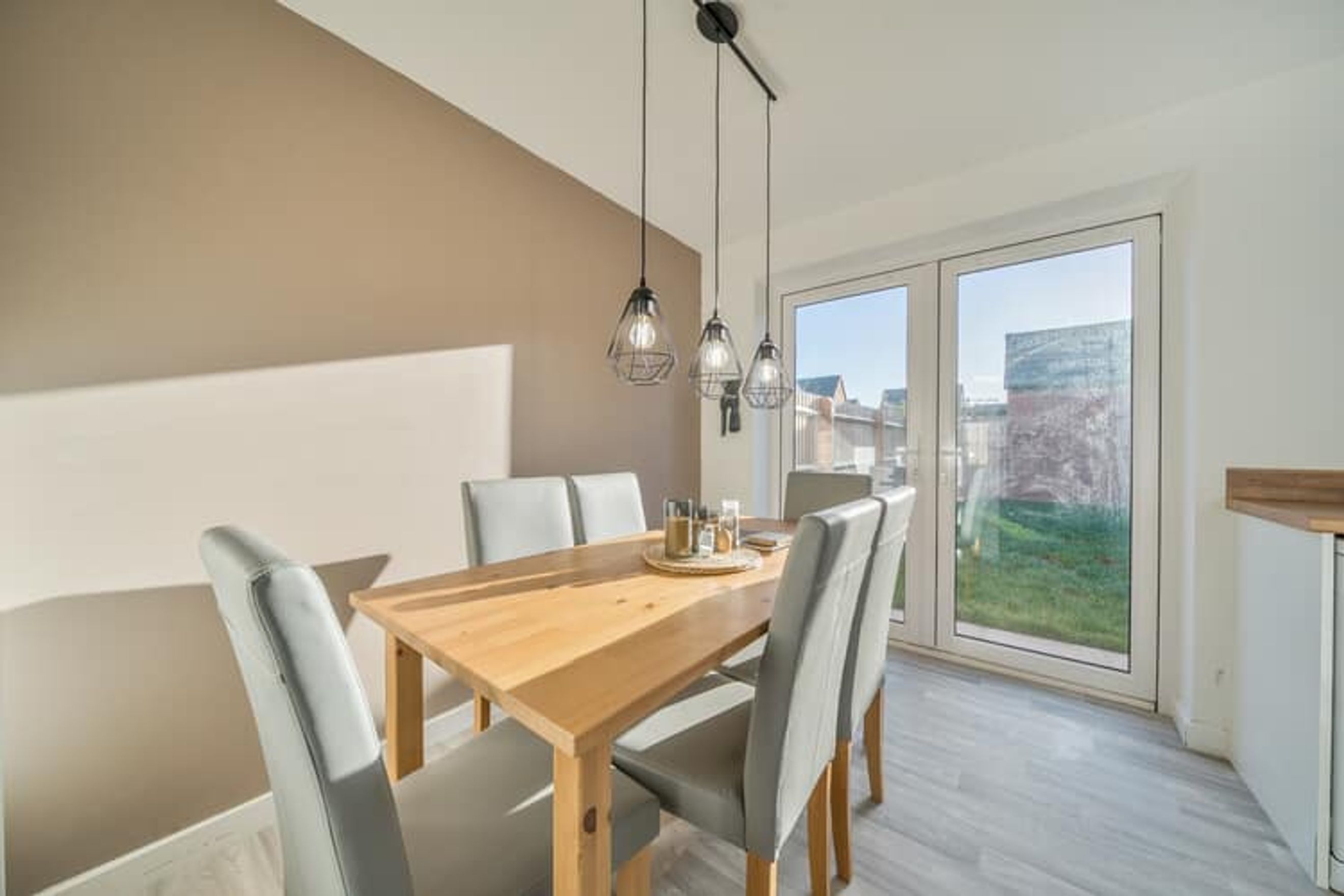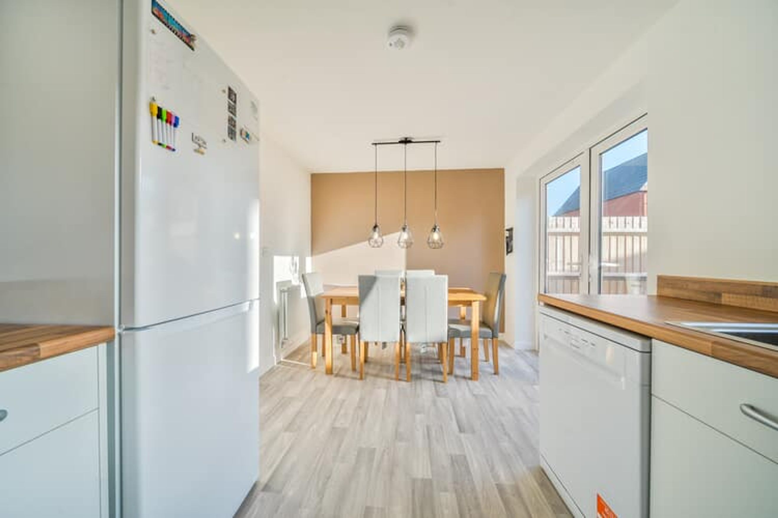 The ground floor features a bright living room, a fitted kitchen with dining space, and double doors opening to the rear garden, plus a convenient WC. The first floor comprises of 3 bedrooms (one en-suite) and a bathroom.