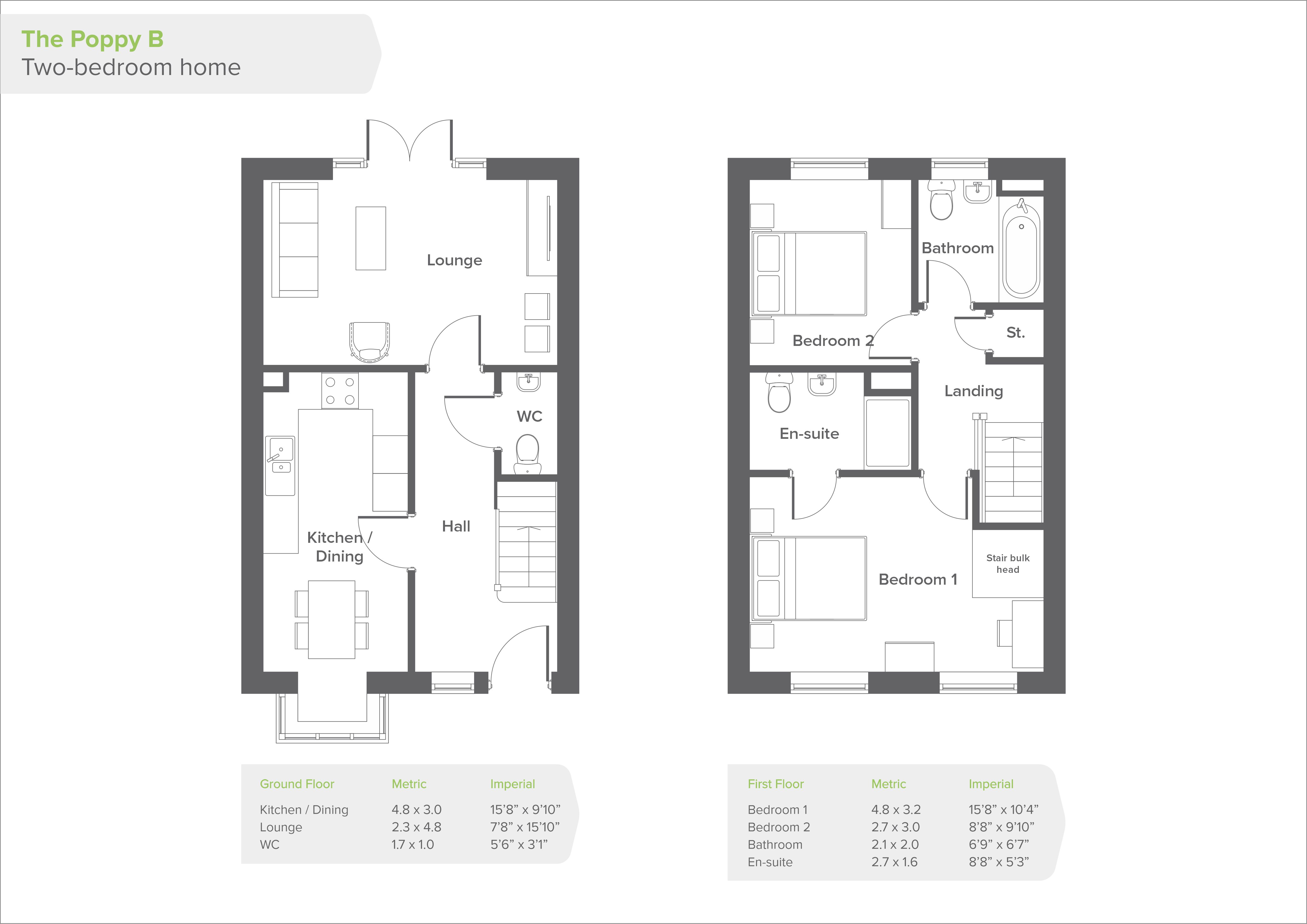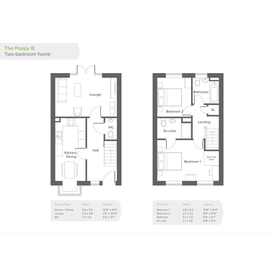 The Poppy at Orchard View is a stylish two-bedroom property, perfect for first-time buyers to call home. Featuring parking, separate lounge, and a kitchen/diner filled with integrated appliances and a downstairs W.C.