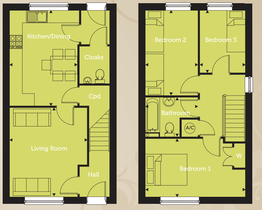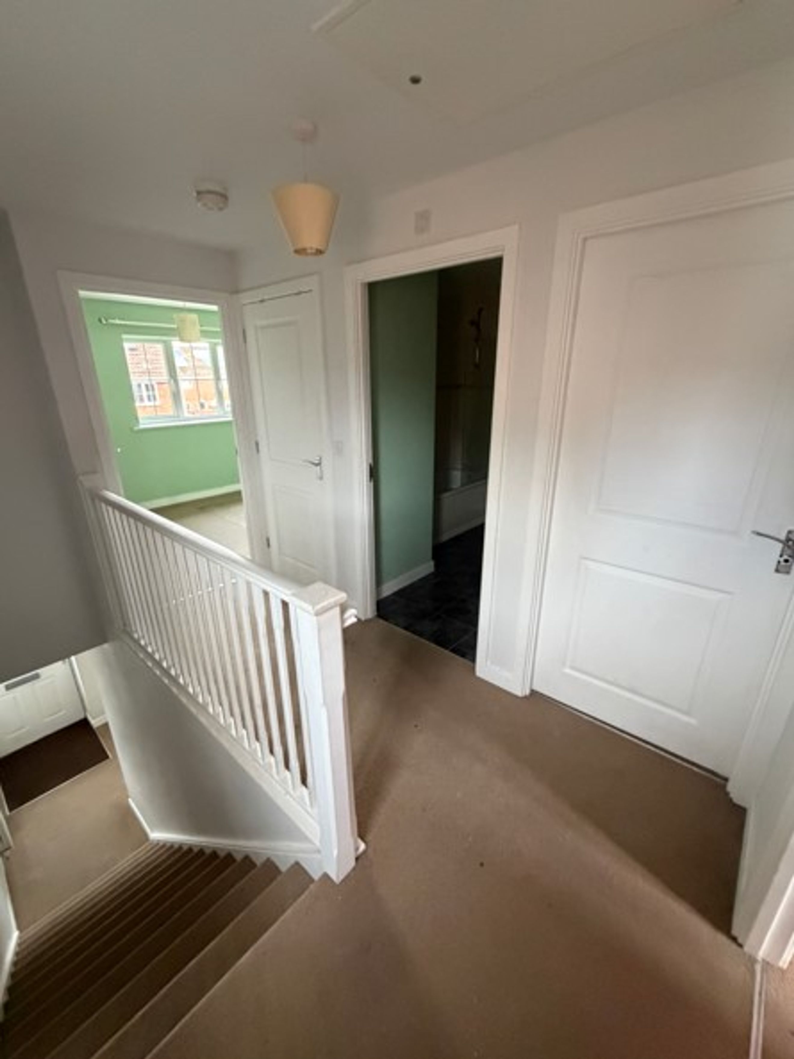 Upstairs, there are 3 bedrooms — 2 doubles, including a master with built-in wardrobe, and 1 single — along with a family bathroom featuring a three-piece suite and shower over bath, plus a built-in airing cupboard on the landing.