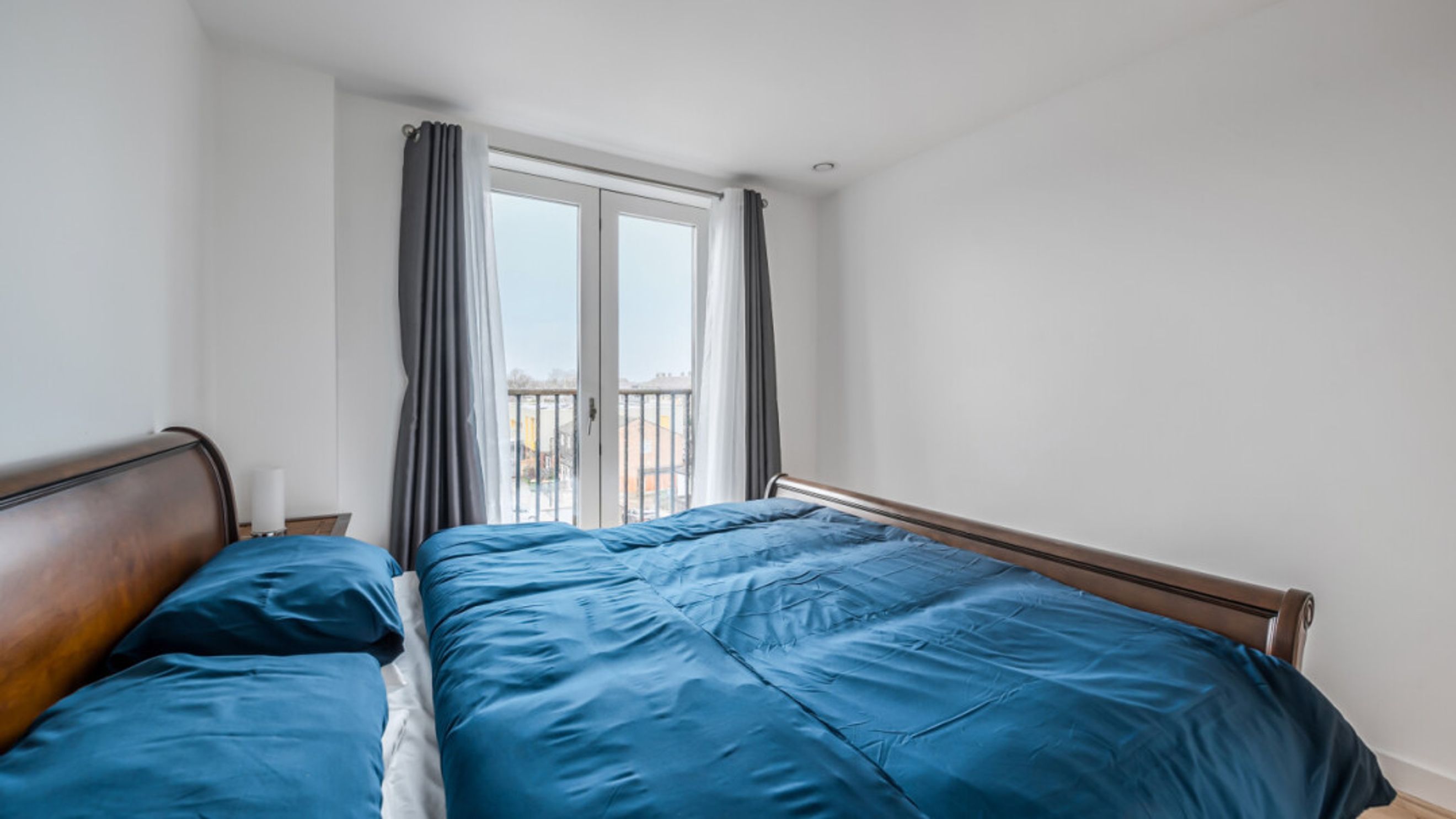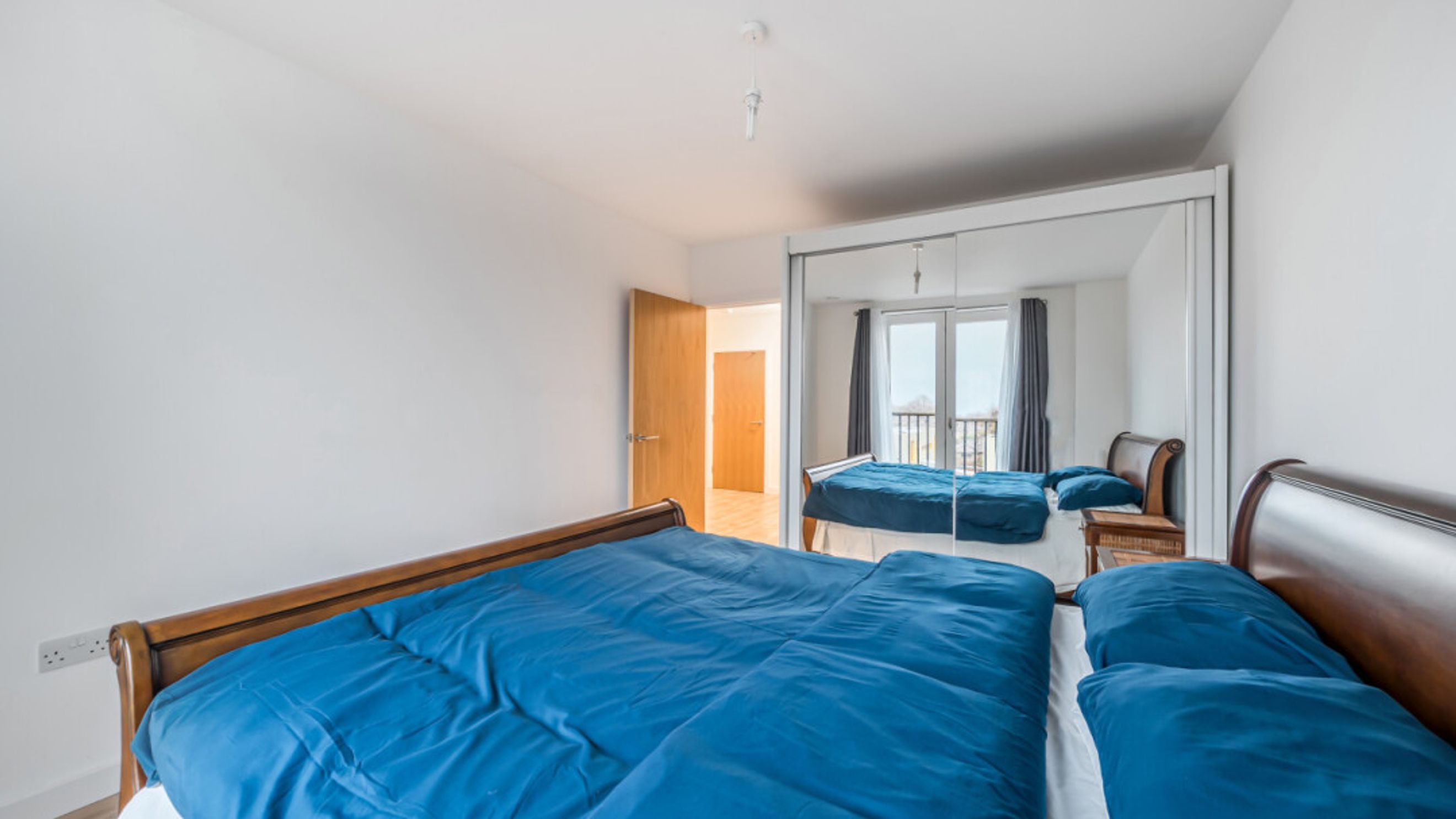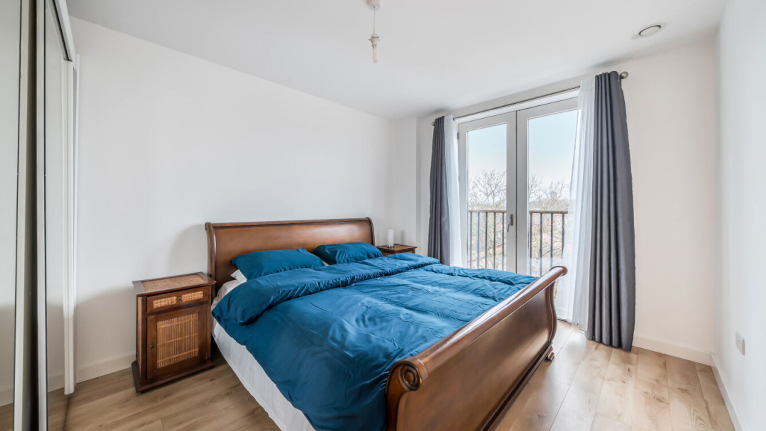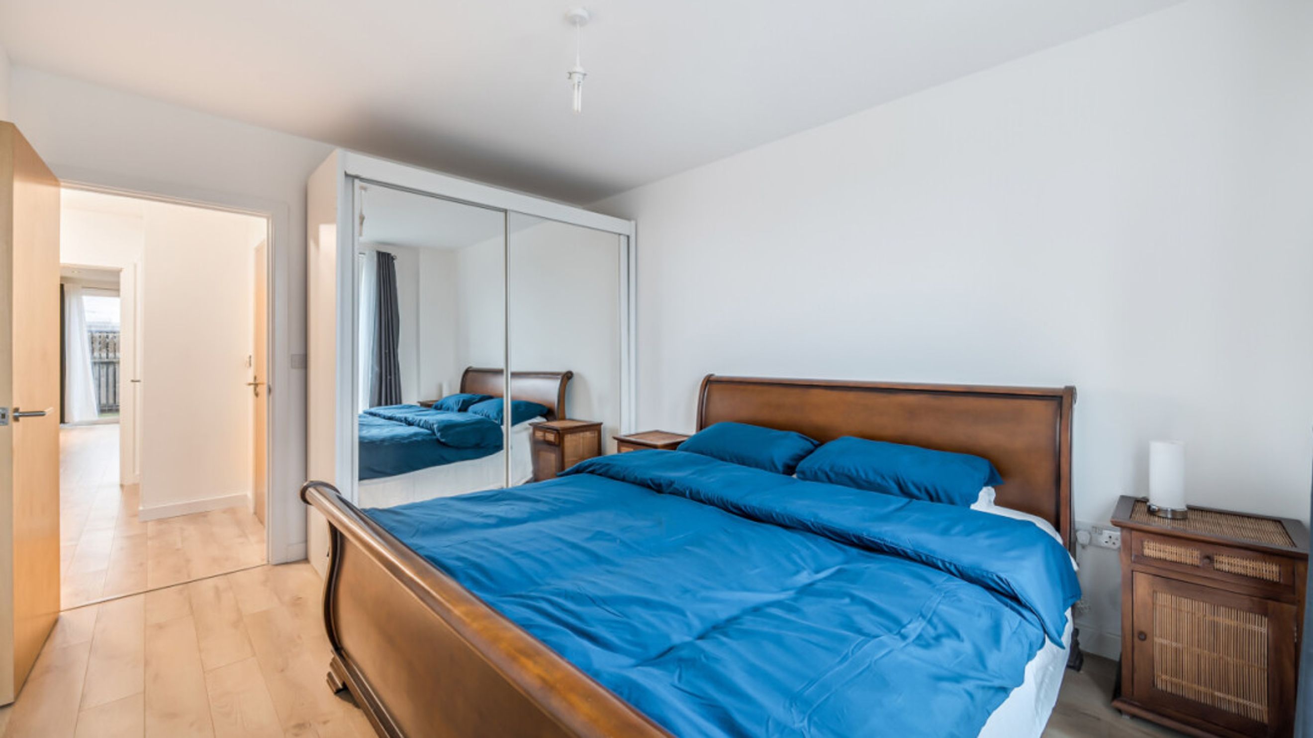 All rooms lead from a central hallway, incorporating storage, in this dual aspect apartment. The large open plan living area is south facing and opens onto a private balcony large enough to relax and dine. The modern kitchen features high gloss units and integrated appliances. There are two generous bedrooms, each with a juliette balcony. The larger of the bedrooms includes built-in storage. A contemporary bathroom completes the accommodation.