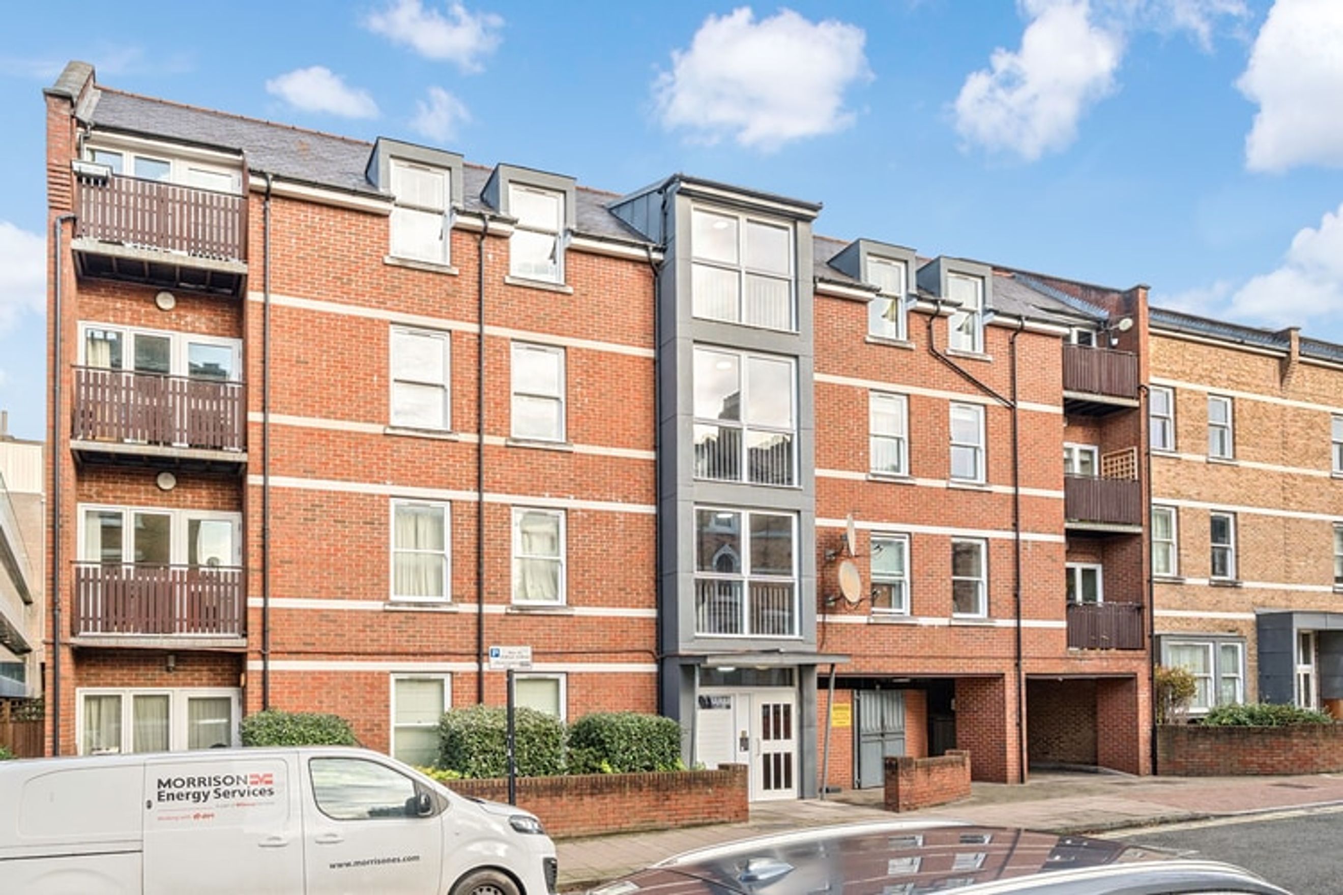 The property on the third floor comprises an entrance hall with storage, a spacious living room, with a fitted kitchen, two good sized bedrooms and a bathroom.