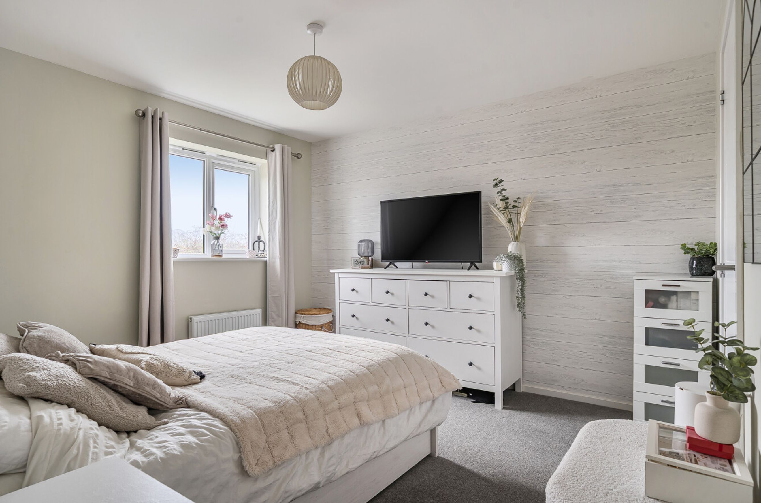 Upstairs, there are three comfortable bedrooms, with an ensuite to the master. The bathroom has a white suite.