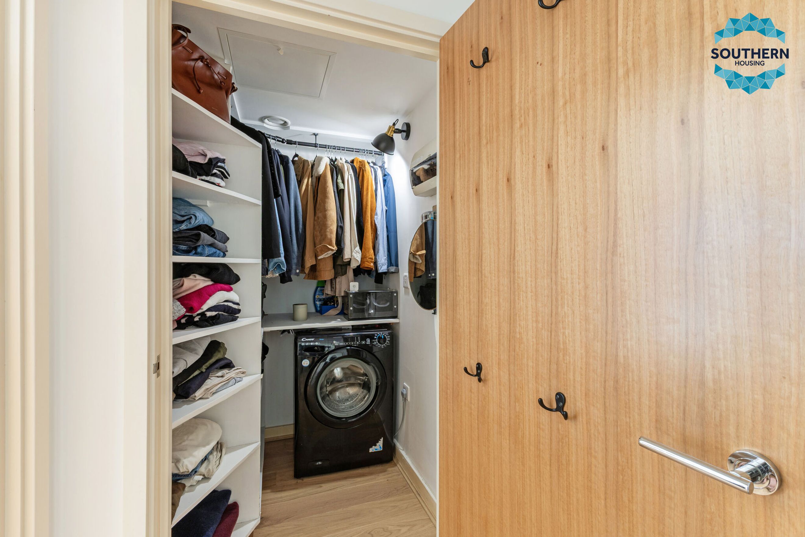 Step inside to a spacious entrance hallway, complete with ample room for coats and shoes, plus two generous storage cupboards-one of which acts as a utility space, plumbed for a washing machine and currently fitted and used as additional wardrobe storage.