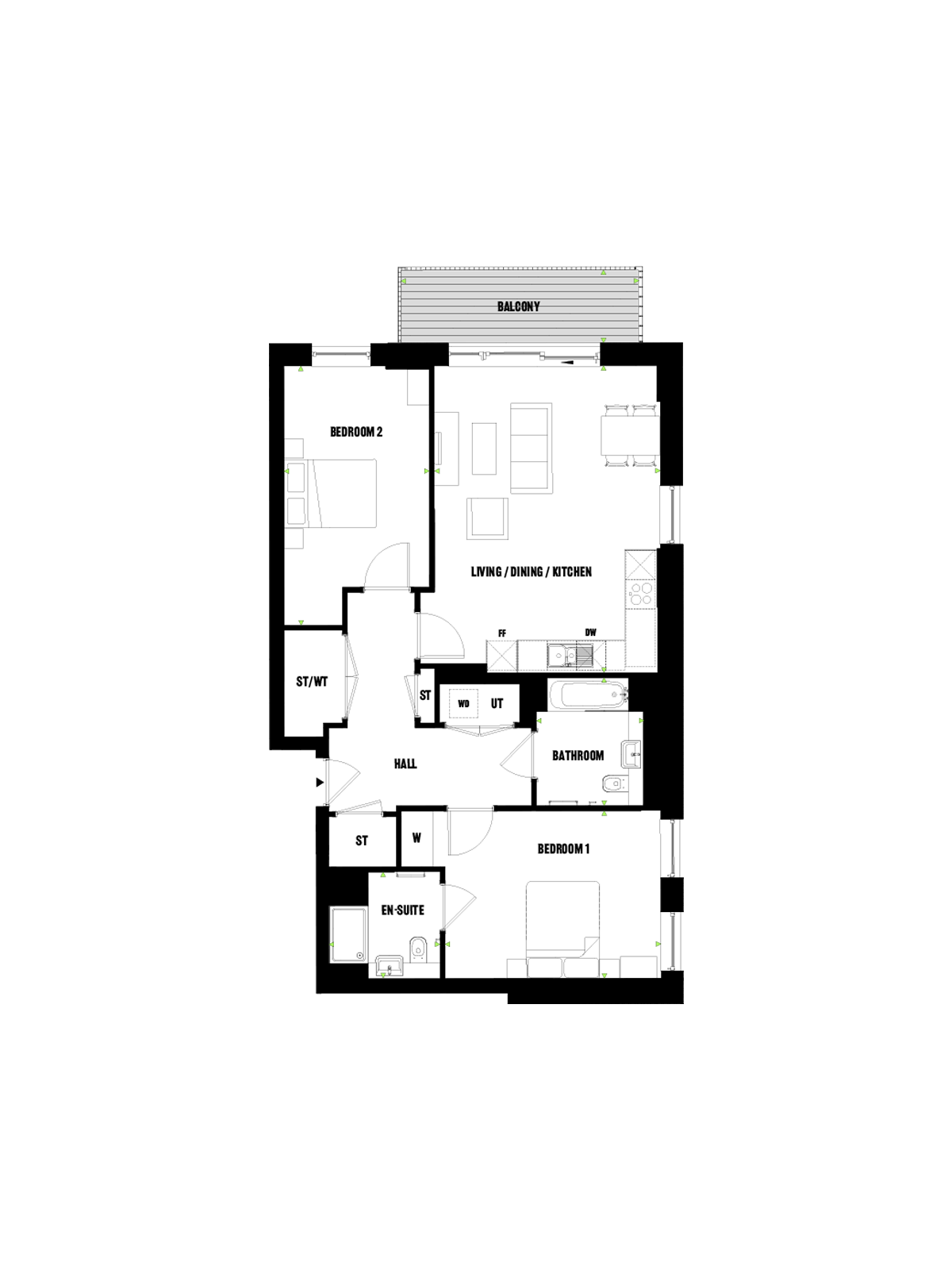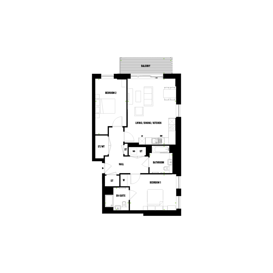 - Modern apartments with bright, spacious open-plan living areas