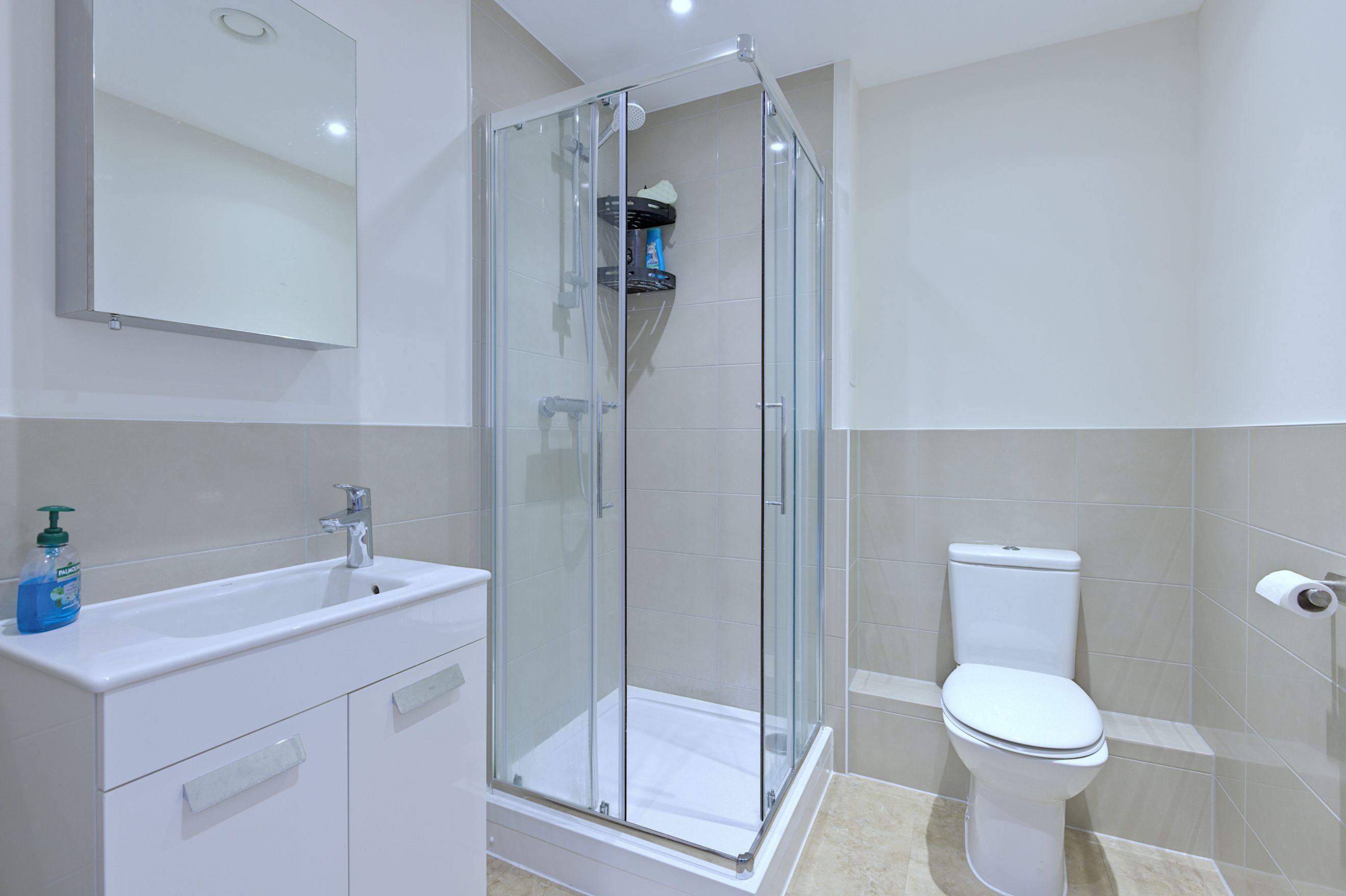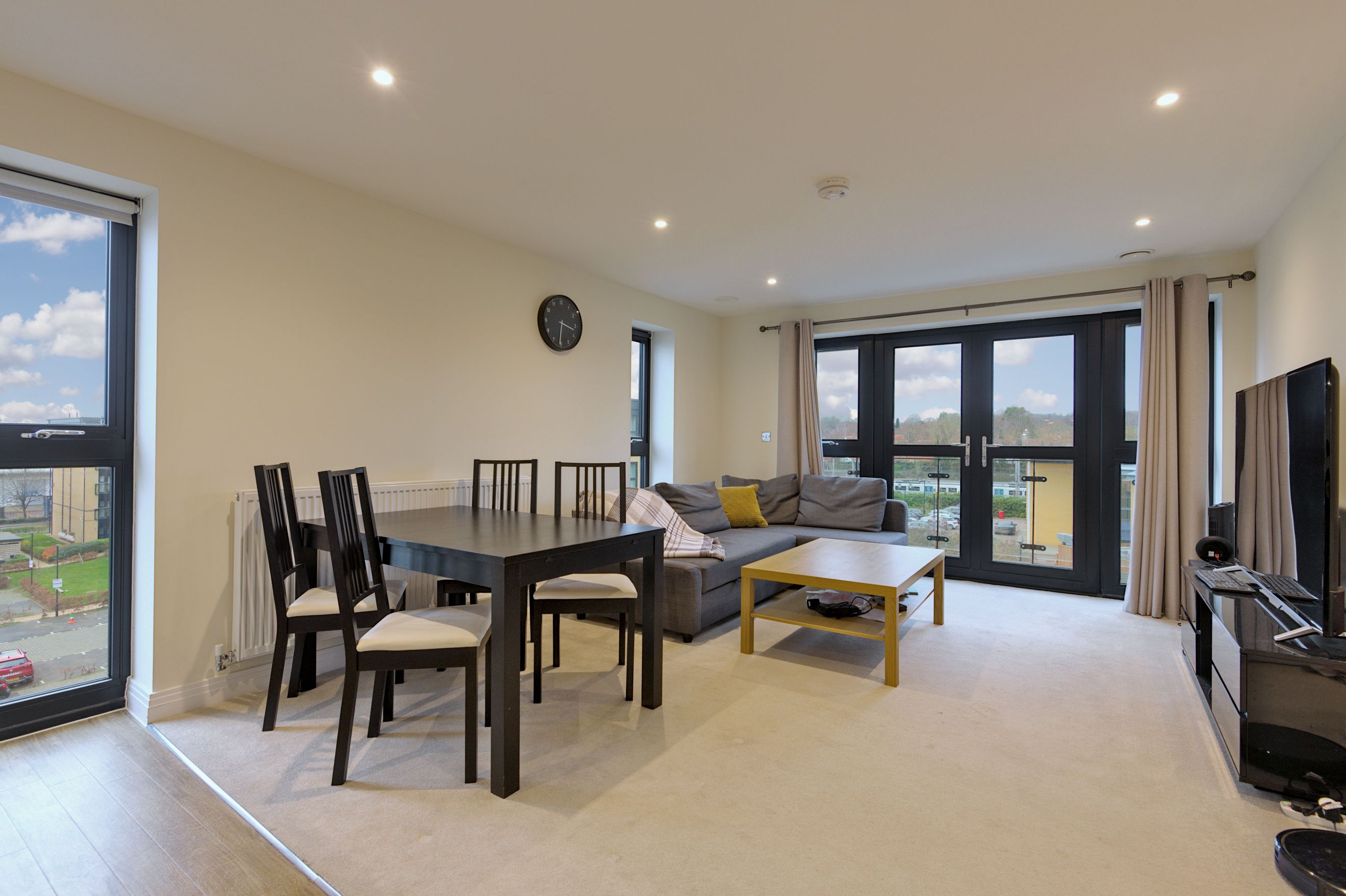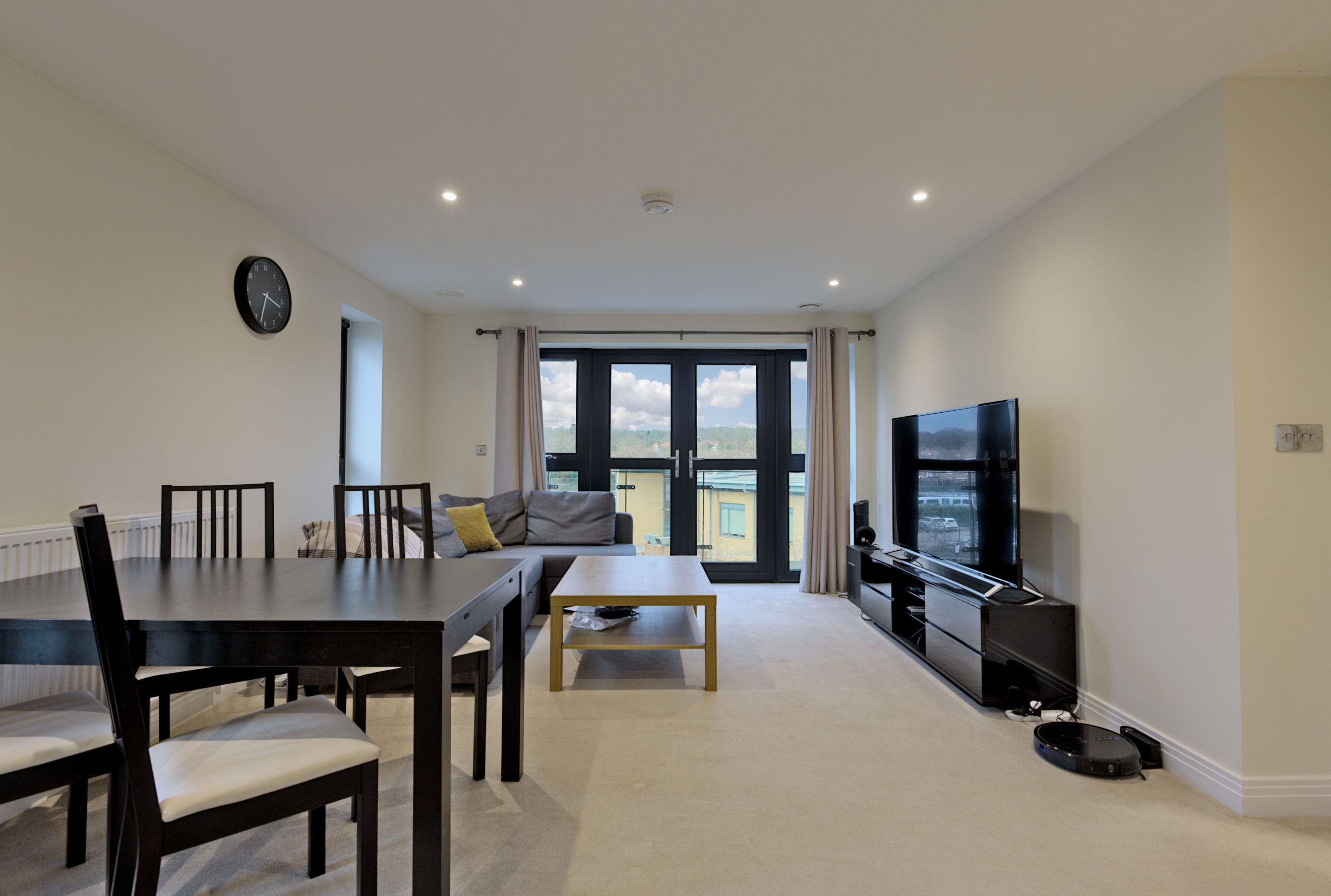 The apartment offers two well-proportioned bedrooms. The main bedroom benefits from its own modern en-suite shower room, while the second double bedroom is served by a sleek family bathroom finished to a high standard.