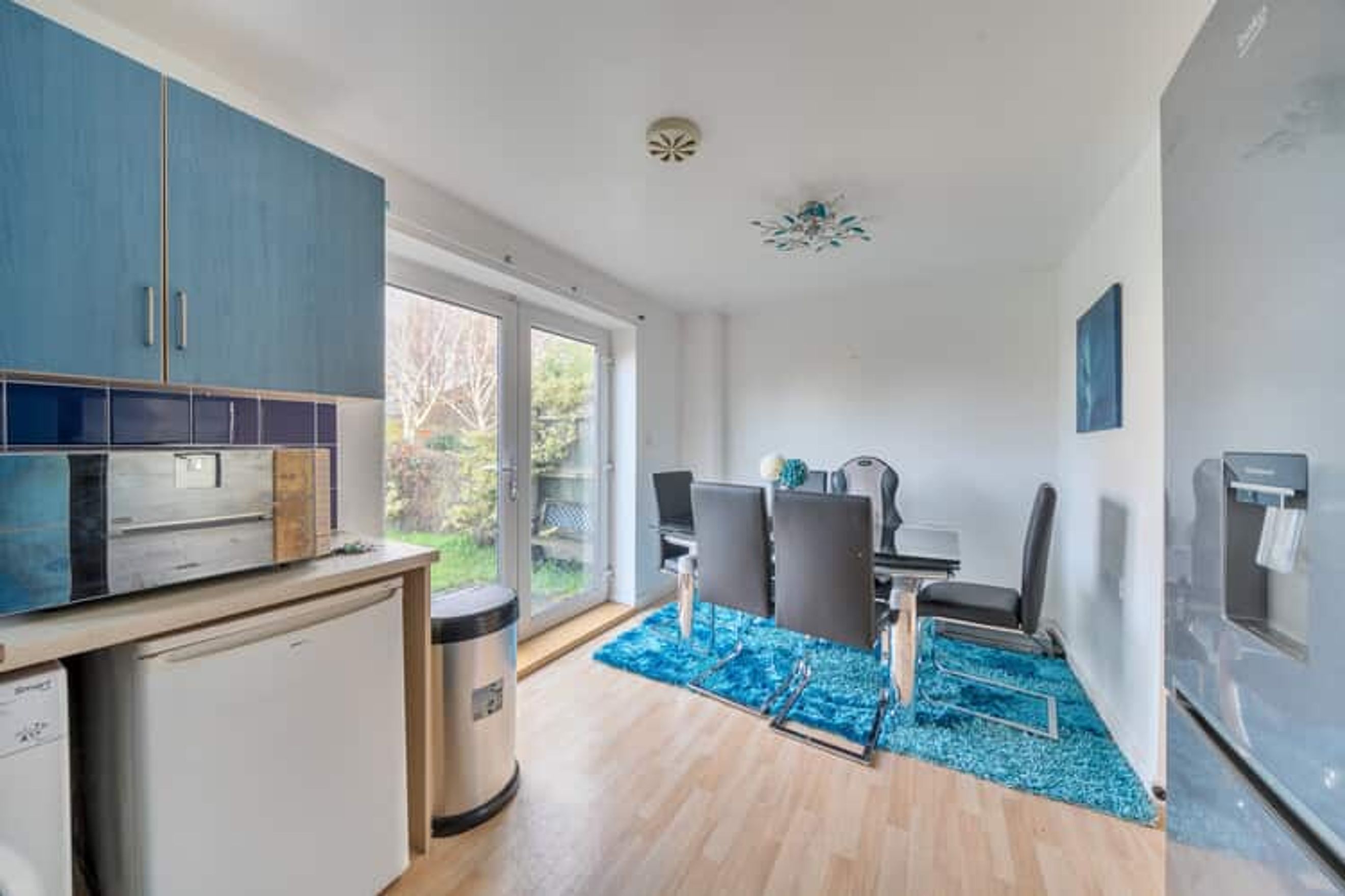 The property on the ground floor comprises of an entrance hall, a spacious living room, a fitted kitchen and dining space, as well as a separate WC.
