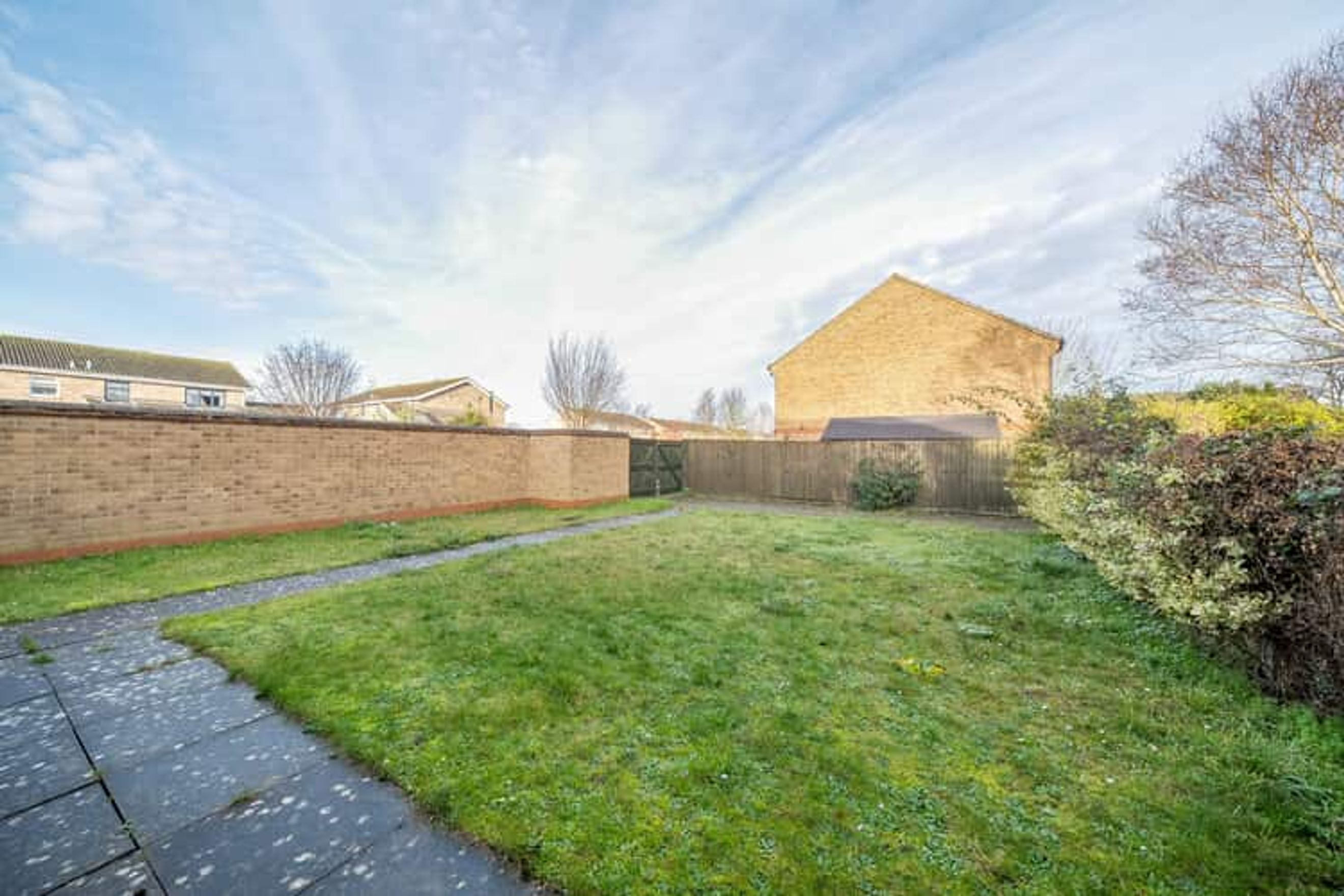 Outside, there is a driveway with space for two vehicles, a front garden and a large rear garden.