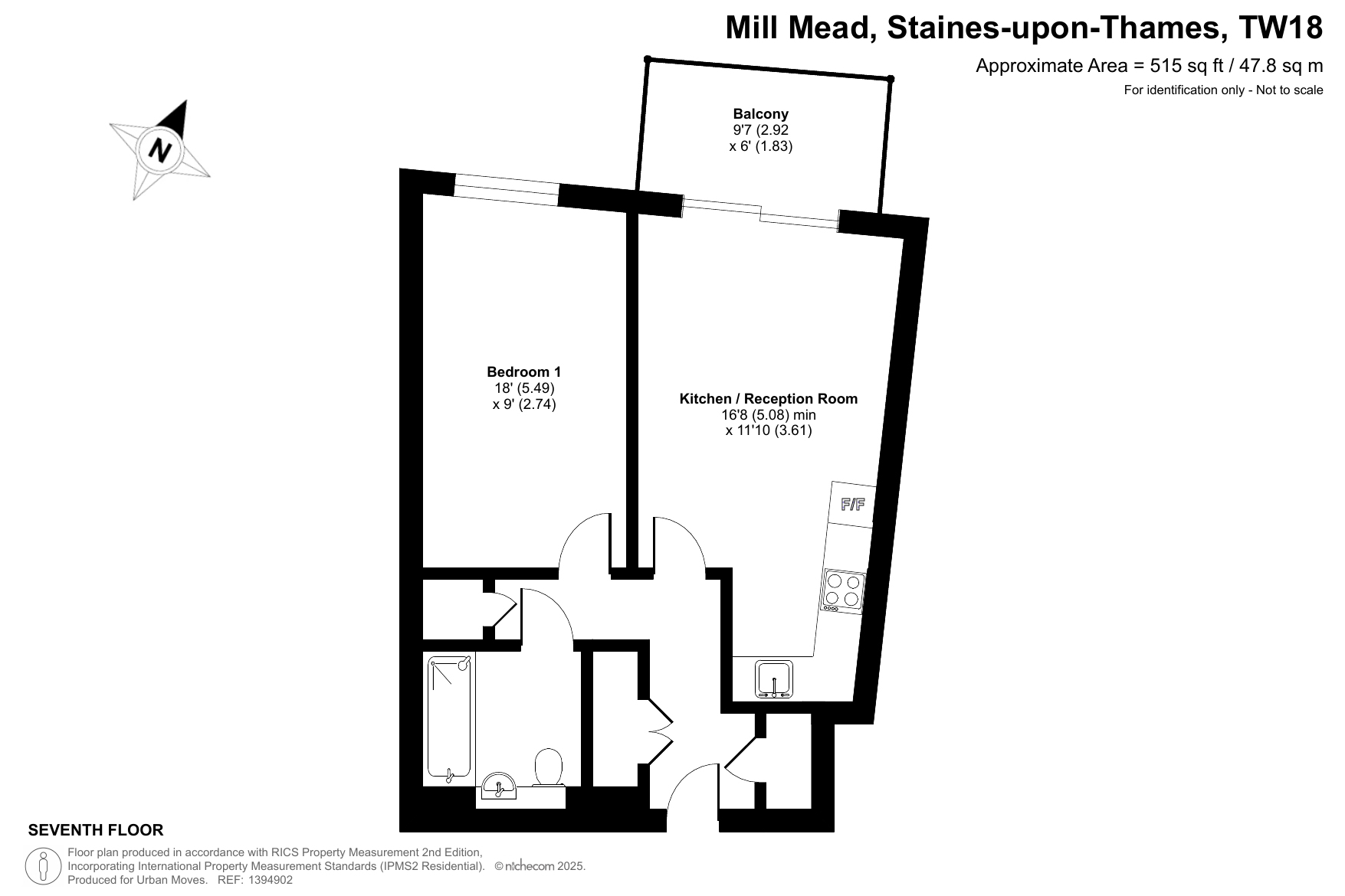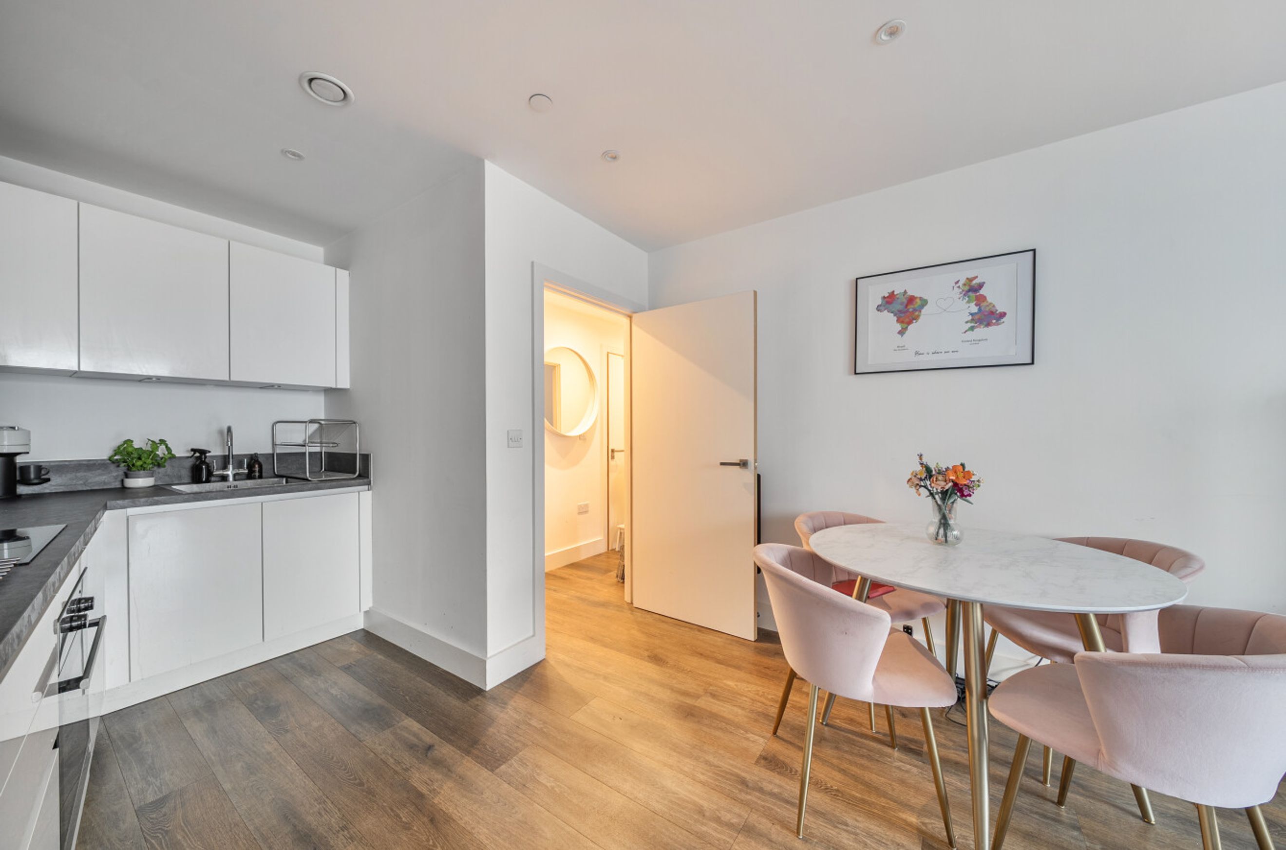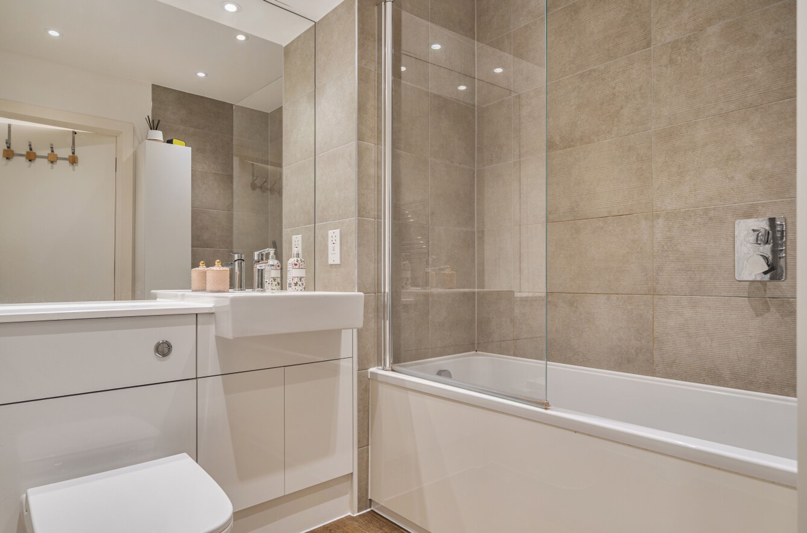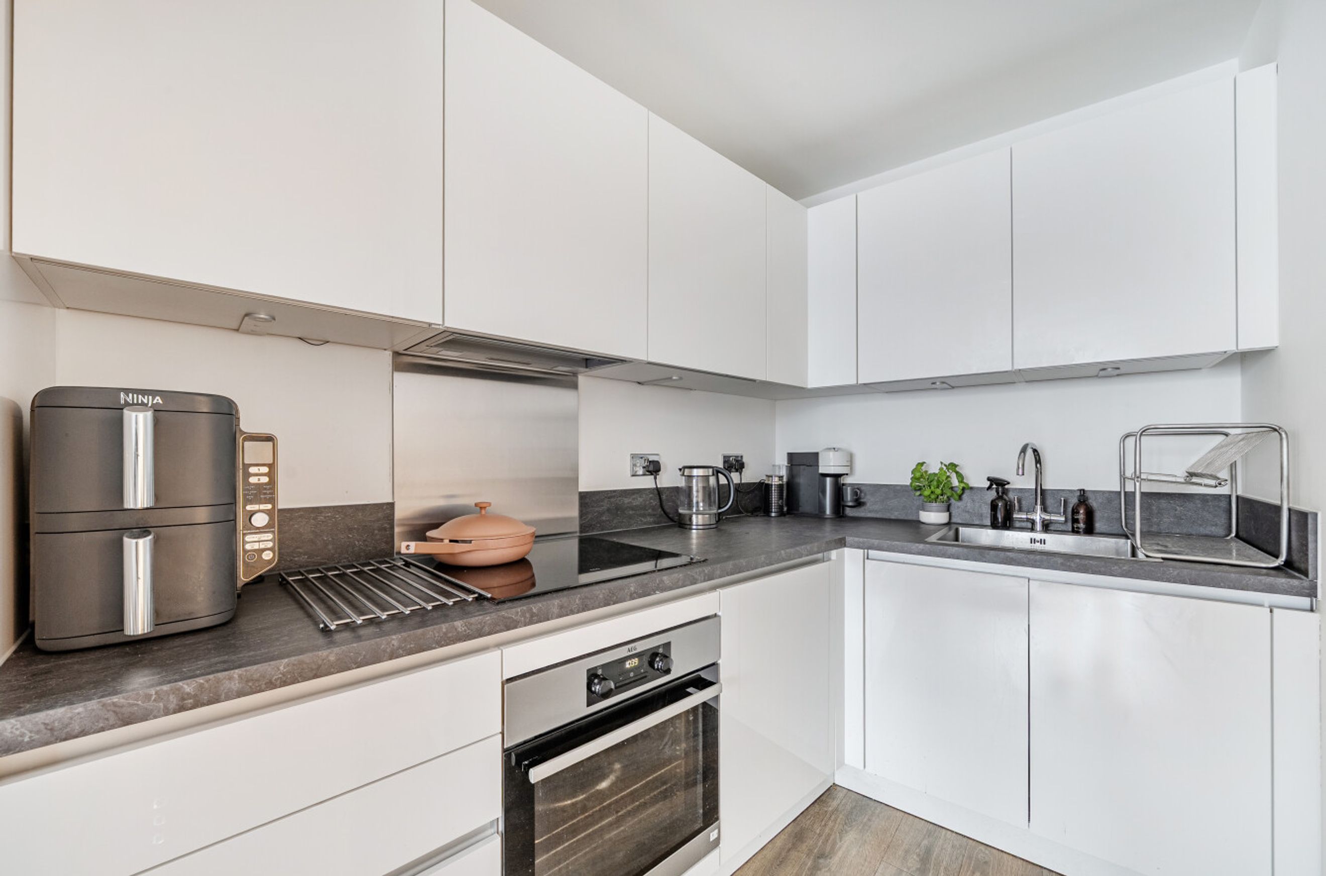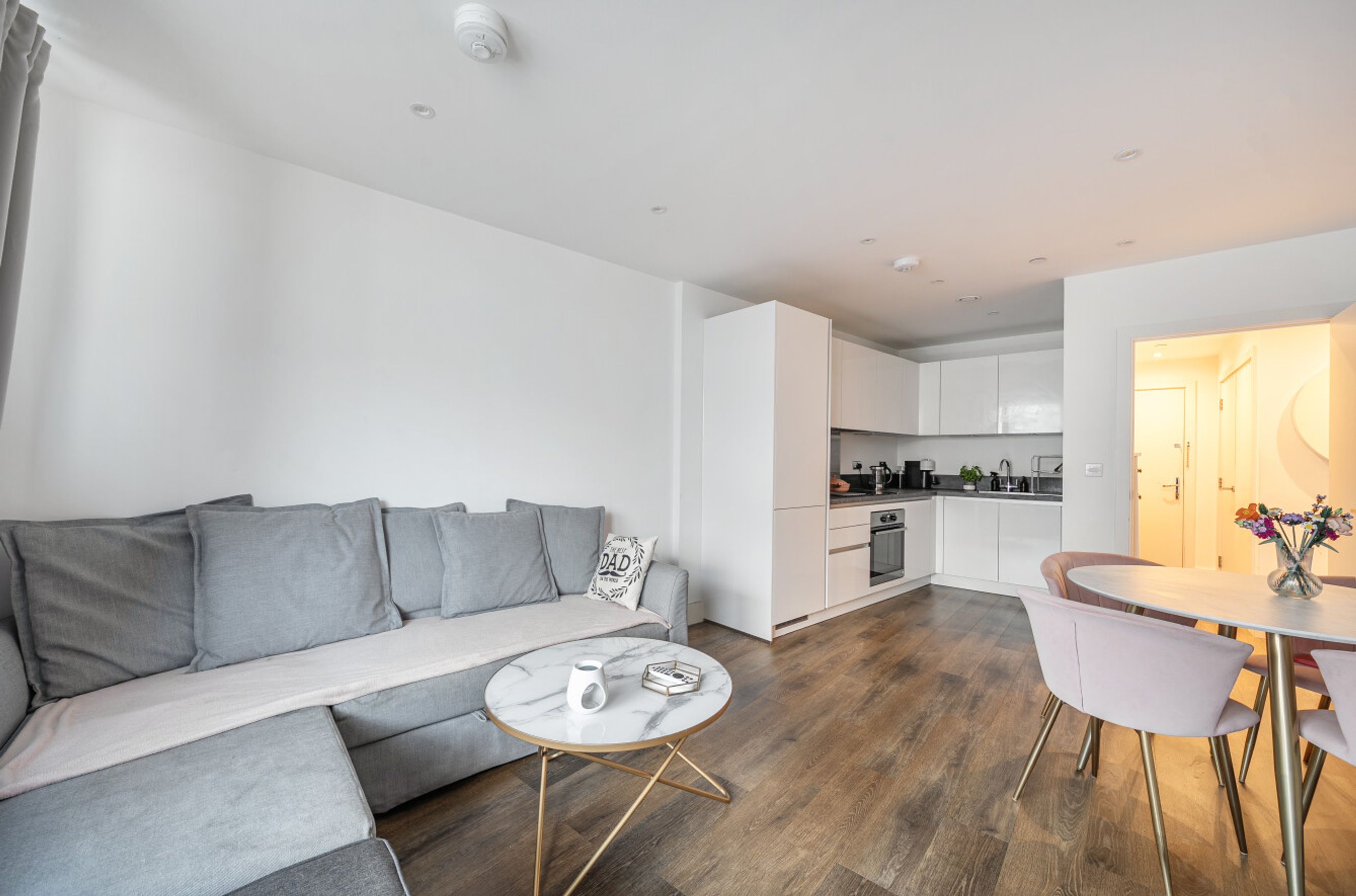 This smartly-presented apartment is on the seventh floor of a recently-constructed development. The property has a spacious reception room with attractive flooring and a sliding door which leads out onto the balcony. The open-plan kitchen features handle-less, gloss-white units and integrated appliances. There is a generously-sized bedroom, a high-spec bathroom and a trio of hallway storage/utility cupboards. Well insulated walls, high performance glazing and a communal heating/hot water system make for a very good energy-efficiency rating. Ascot House has a communal garden and a roof terrace which offers a panoramic view of the surrounding area. The town centre and main shopping district are close by and Staines Railway Station, for services between Reading/Weybridge/Windsor & Eton Riverside and London Waterloo, is also just a short walk away. The apartment is held on a very long lease.