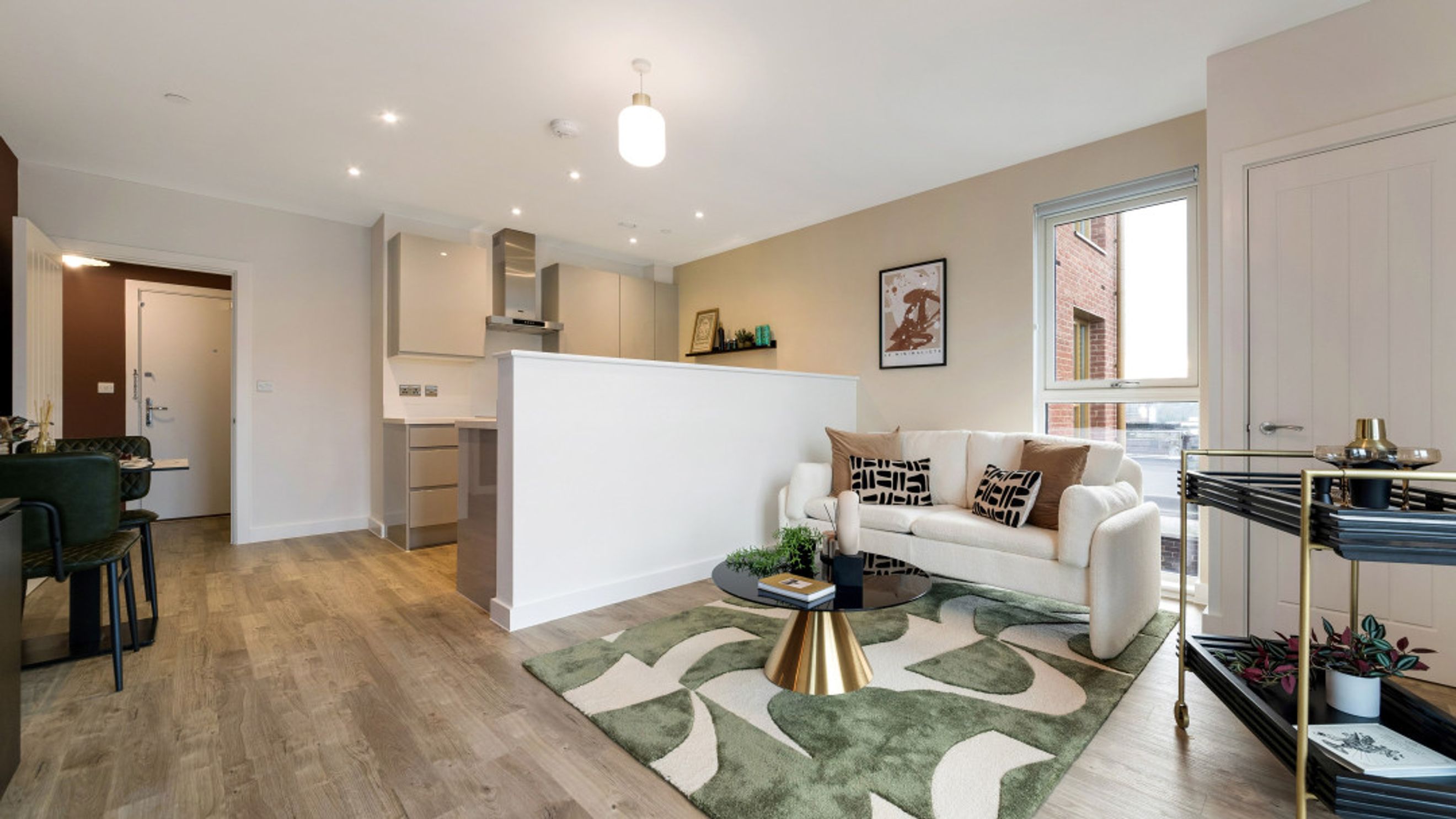 The living area of each Shared Ownership apartment is bathed in natural light. All apartments have high specs and benefit from their own private outdoor space as well as a communal courtyard.