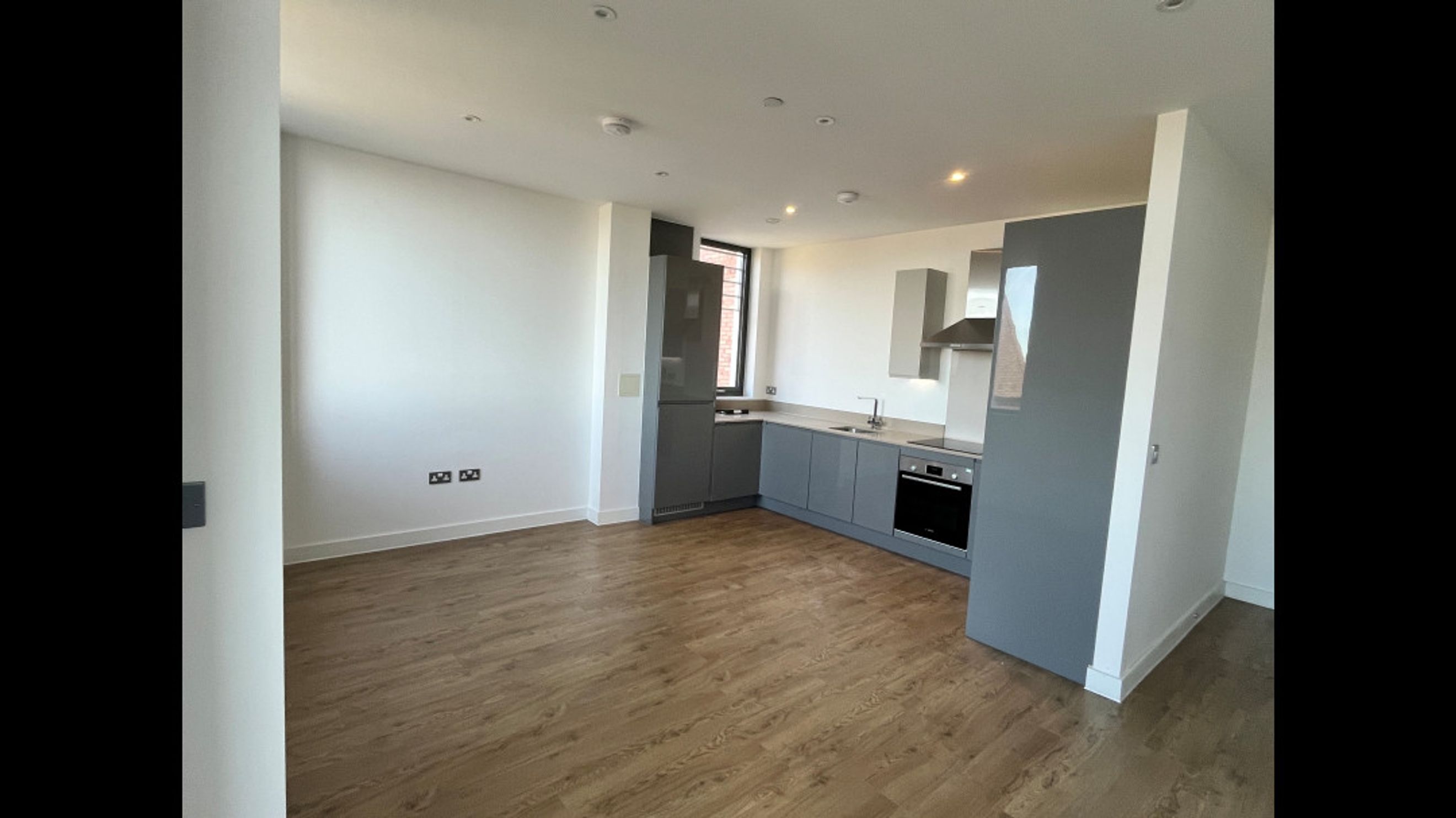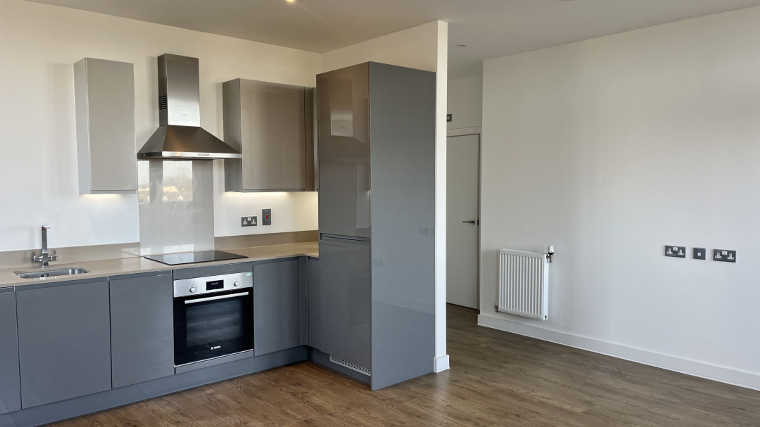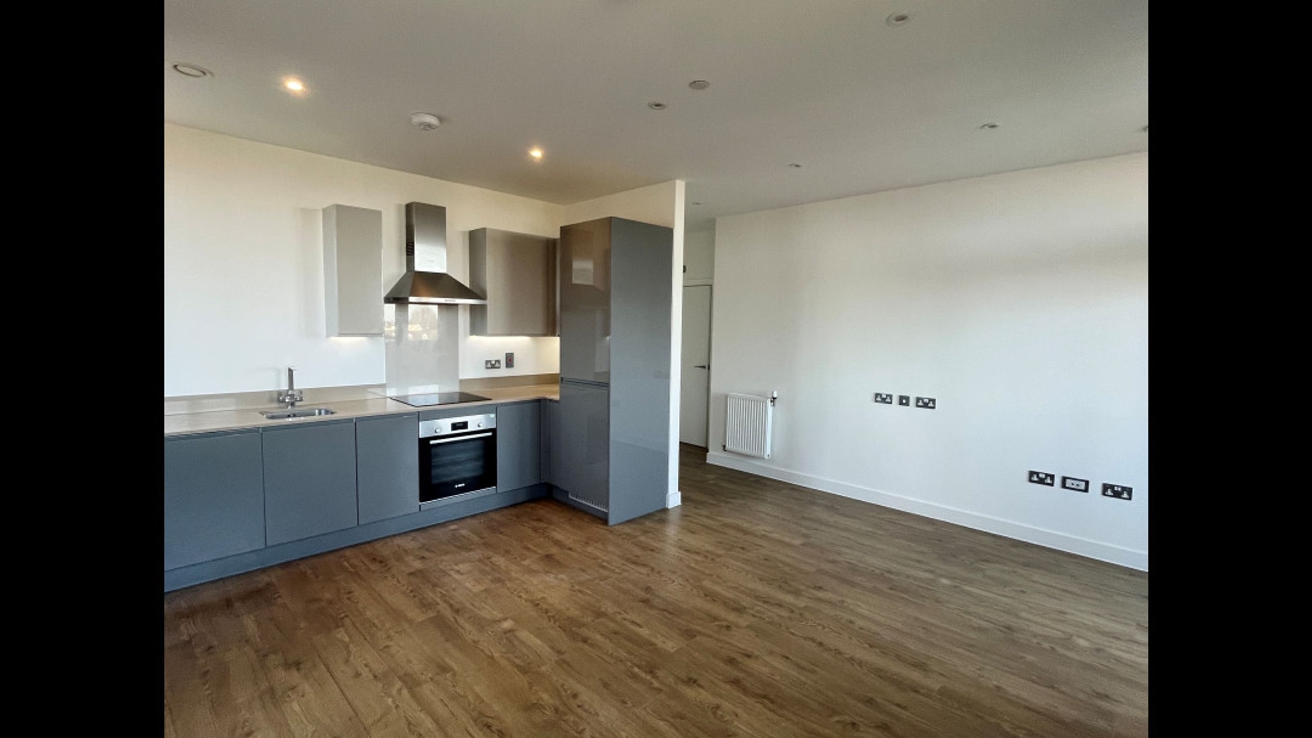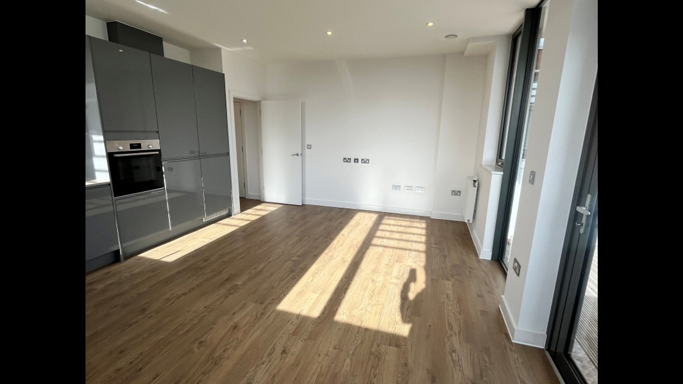 The apartment features a spacious open-plan layout. The kitchen is fully furnished with integrated appliances, including a washer-dryer, dishwasher and fridge-freezer. Most properties within the development benefit from private balconies, with some enjoying panoramic views either towards central London or Surrey.