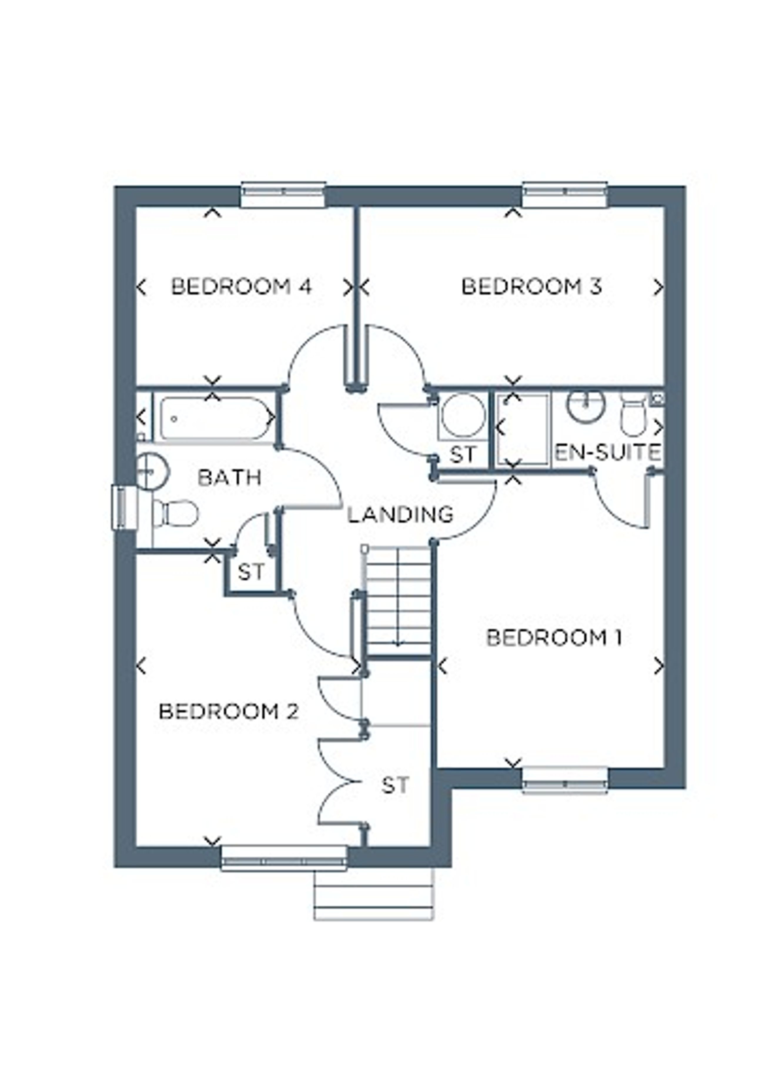 Upstairs, four well‑proportioned bedrooms provide flexibility for family life, home working or guests. The master bedroom includes a private en‑suite, while a stylish family bathroom serves the remaining rooms. Outside, the home benefits from front and rear gardens, with high‑quality specifications.