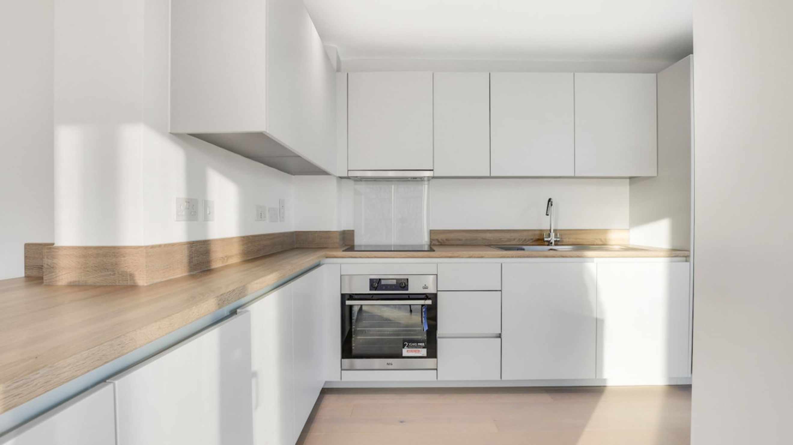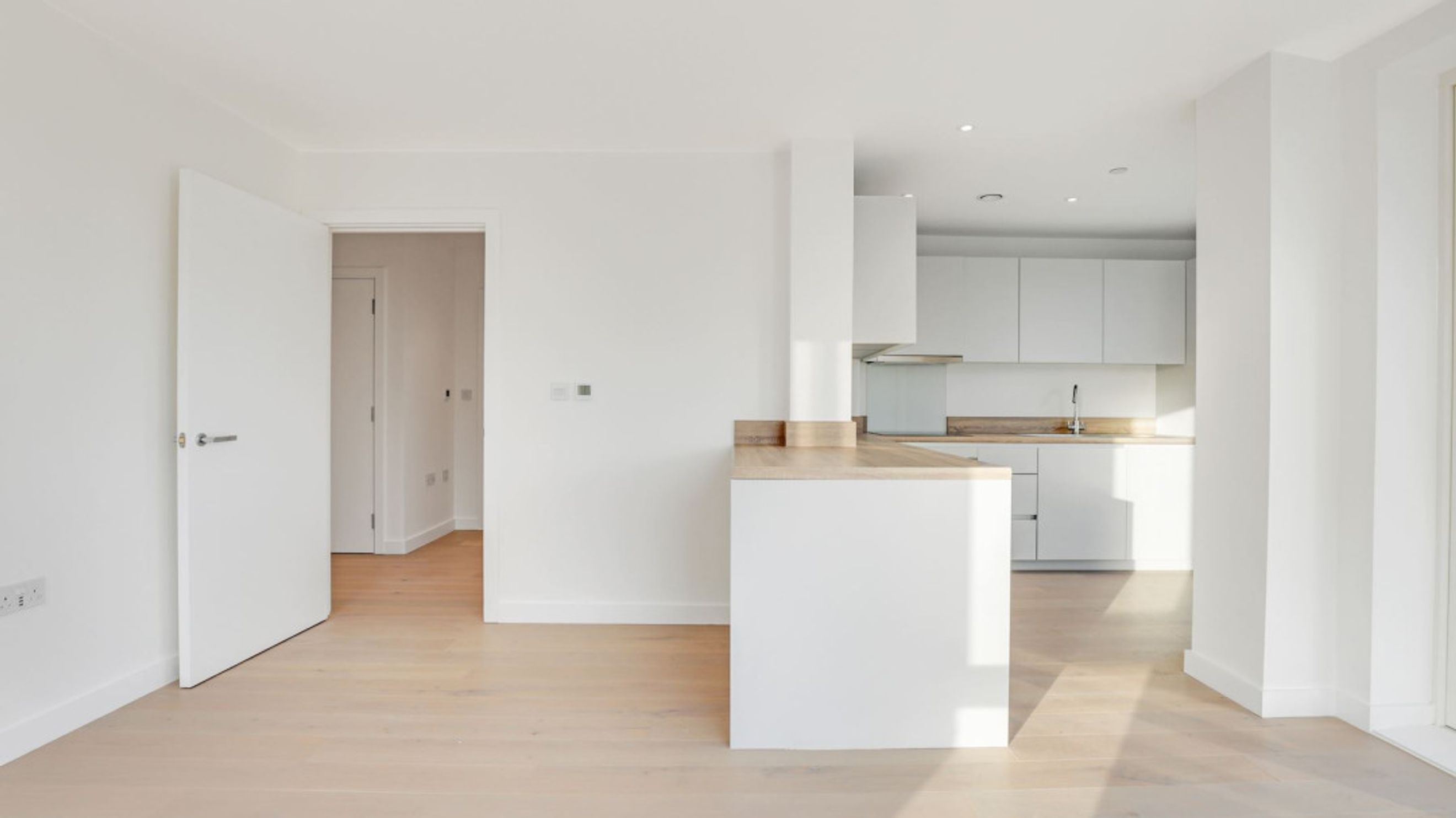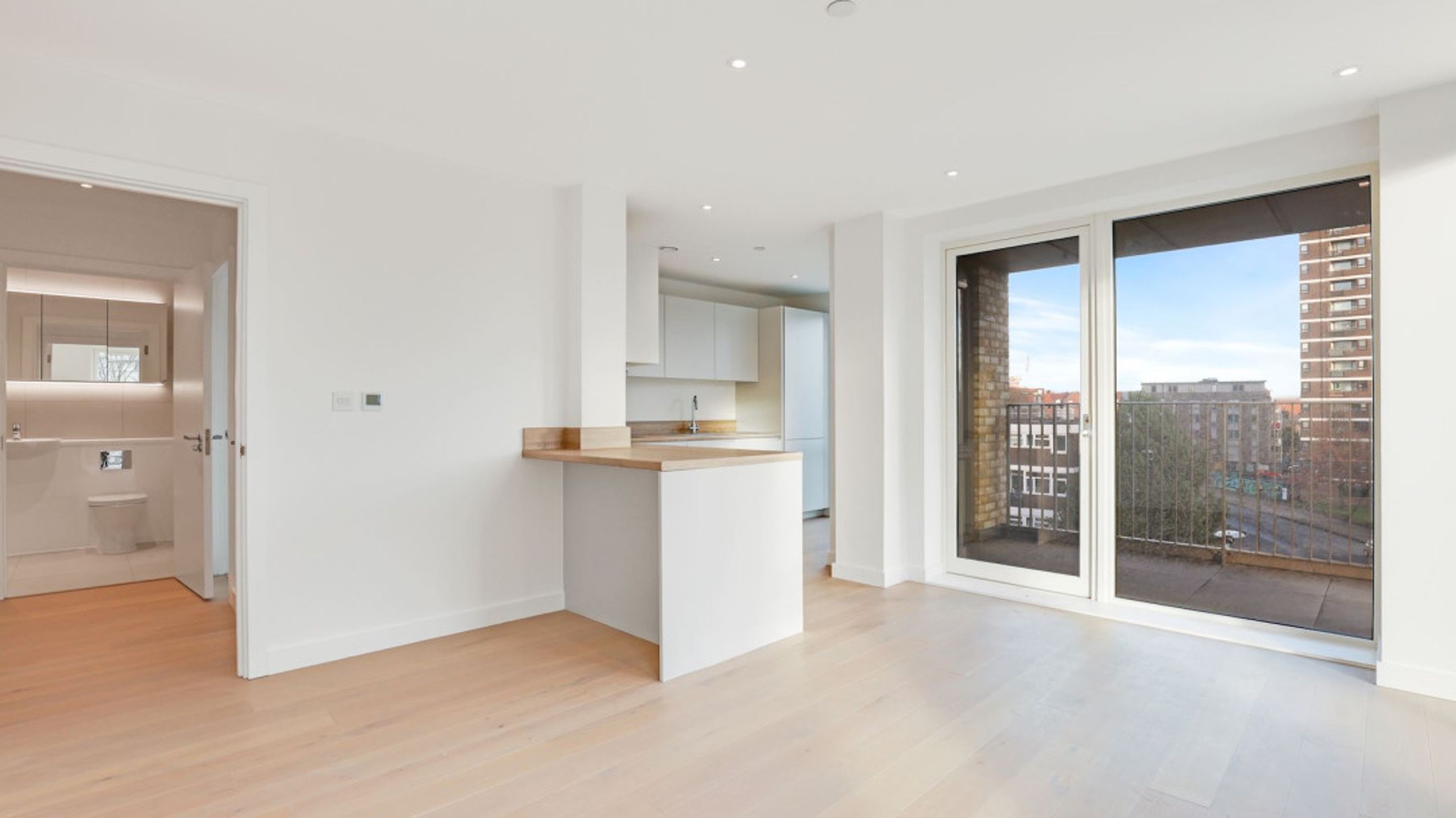 This modern apartment offers well-proportioned living space throughout, featuring a bright open-plan reception and kitchen area that opens directly onto a private balcony, perfect for relaxing or entertaining. The kitchen is finished to a contemporary standard with integrated appliances and sleek cabinetry.