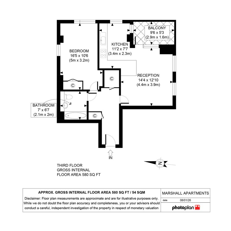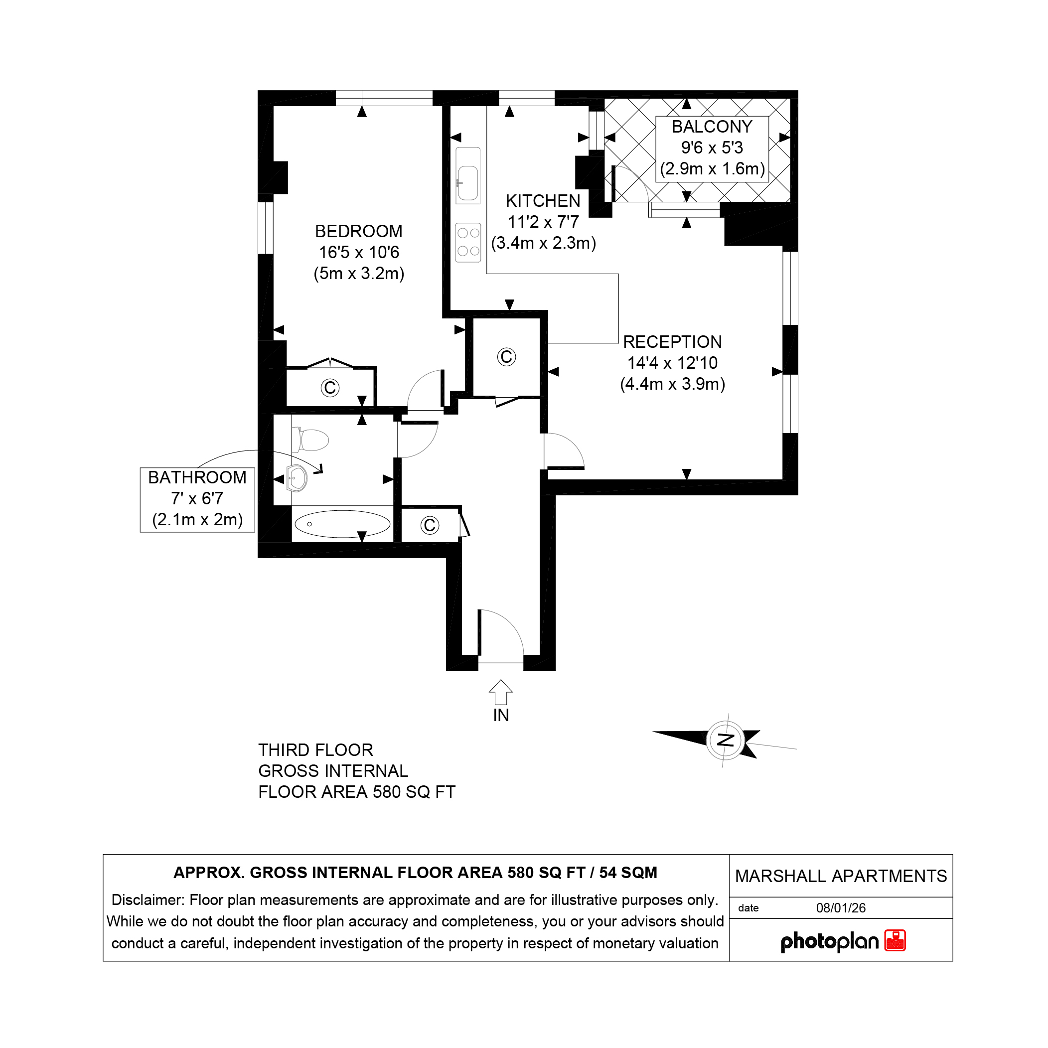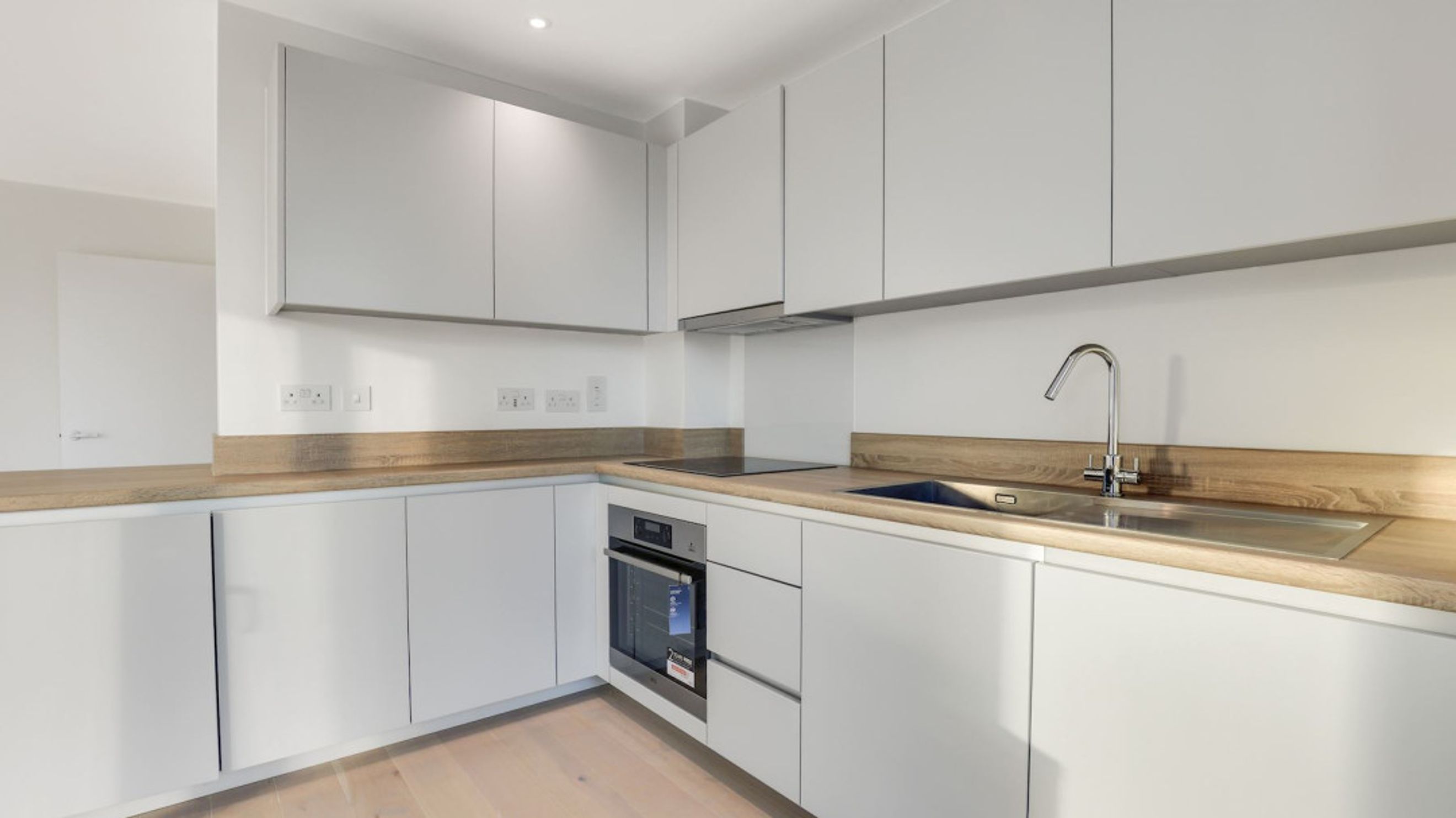 This modern apartment offers well-proportioned living space throughout, featuring a bright open-plan reception and kitchen area that opens directly onto a private balcony, perfect for relaxing or entertaining. The kitchen is finished to a contemporary standard with integrated appliances and sleek cabinetry.