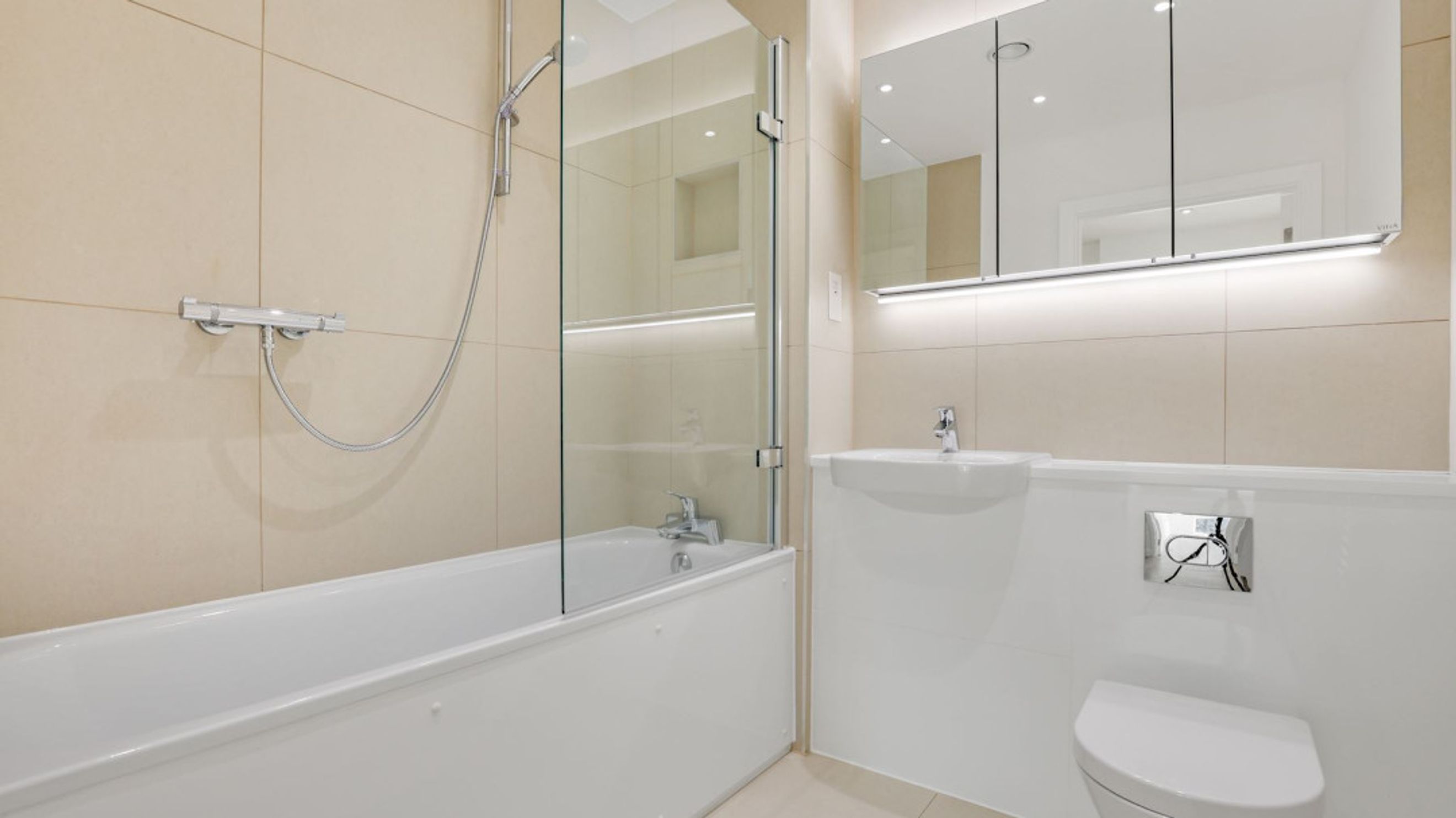 The double bedroom is a real highlight, enjoying stunning views towards The Shard, providing a striking London backdrop both day and night. The apartment also benefits from a stylish, fully tiled bathroom and ample storage.
