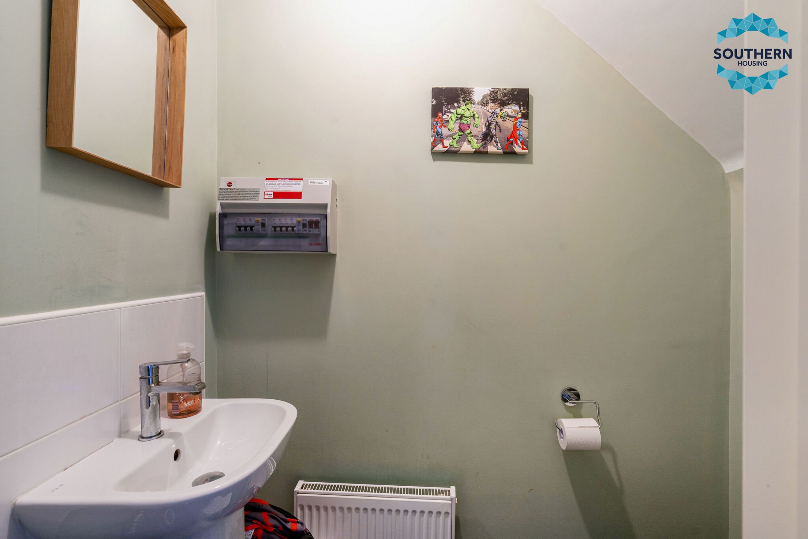 Upstairs, you'll find two generously sized bedrooms, each thoughtfully designed to maximise comfort and natural light. Both are served by a well-appointed family bathroom. The property also includes a downstairs cloakroom, adding an extra layer of practicality for everyday life.