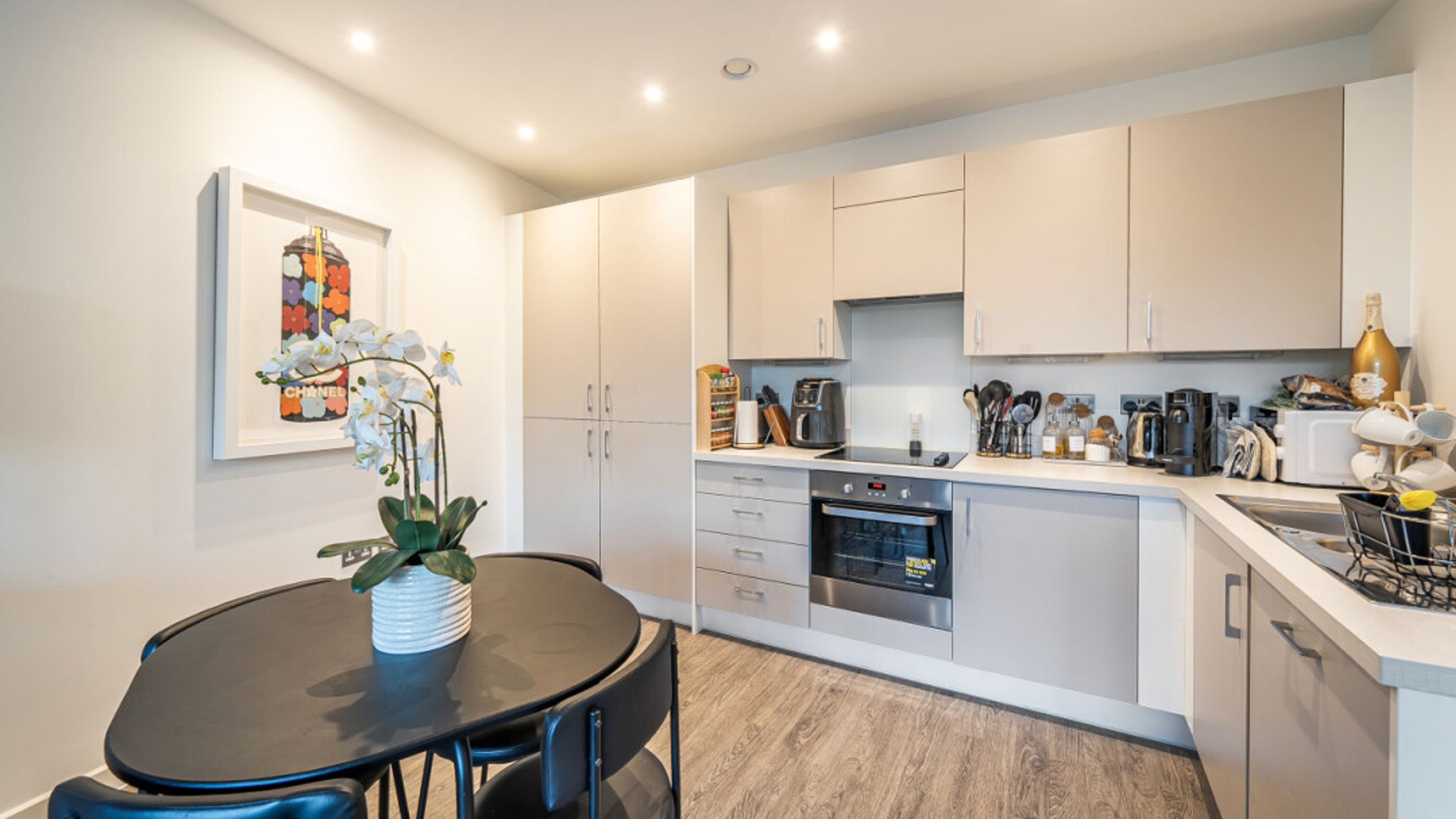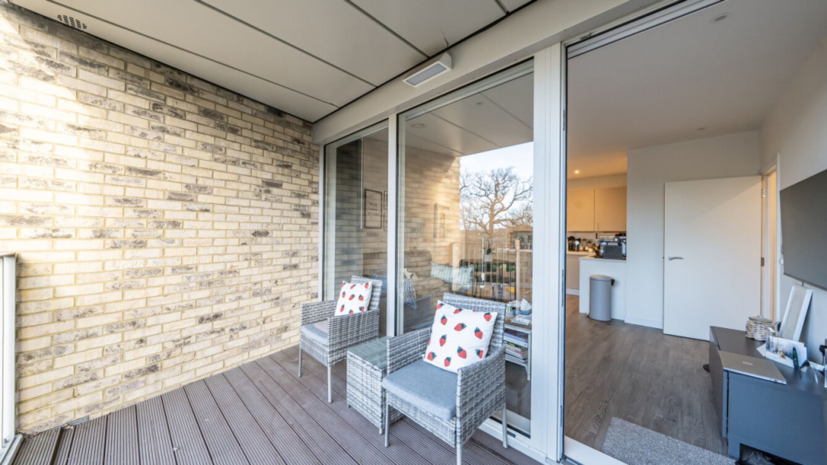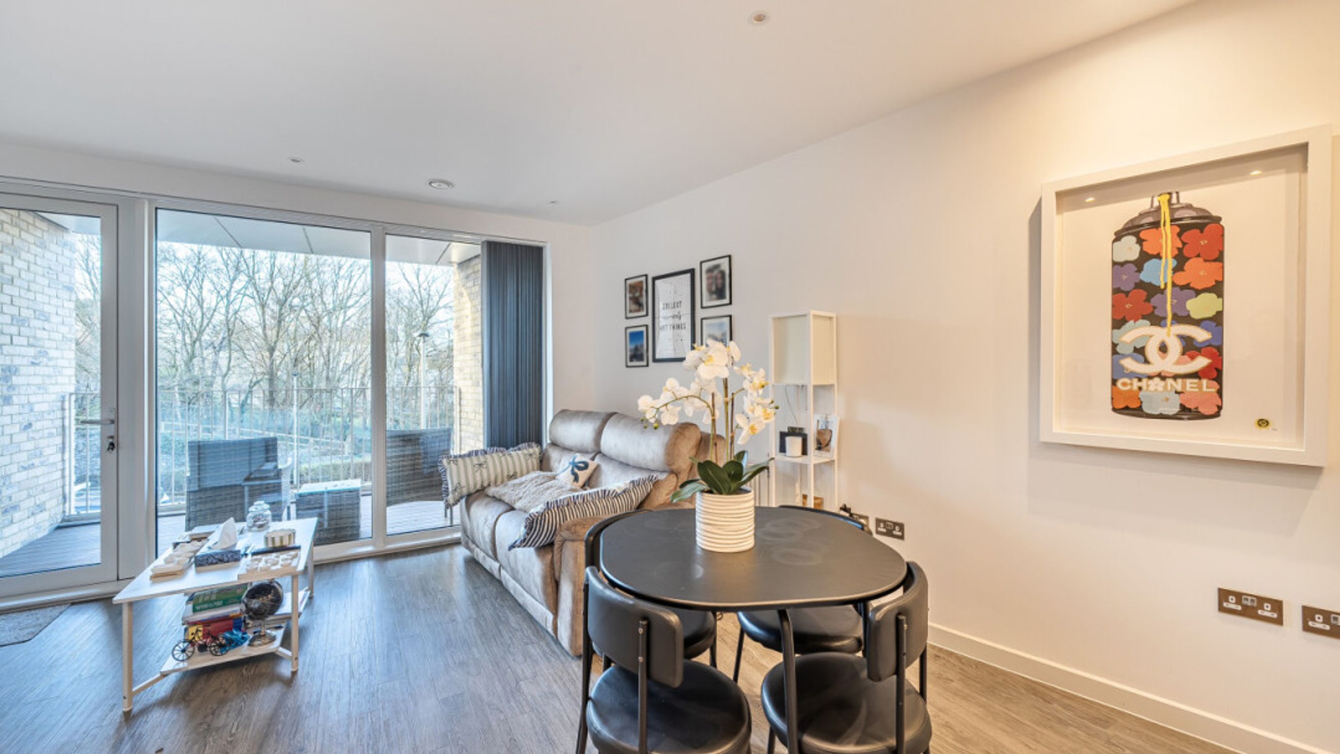 This bright and spacious one bedroom apartment has a stylish open-plan kitchen and living area, flooded with natural light from wide floor-length windows and access to the private balcony. The balcony is great for relaxing and entertaining. The kitchen is fitted with matt cream wall and base units and a white stone effect worktop. It also benefits from integrated appliances. The spacious double bedroom includes a built-in wardrobe. This room is also full of natural light. A contemporary bathroom completes the accommodation, with a white three piece suite with showerover bath.