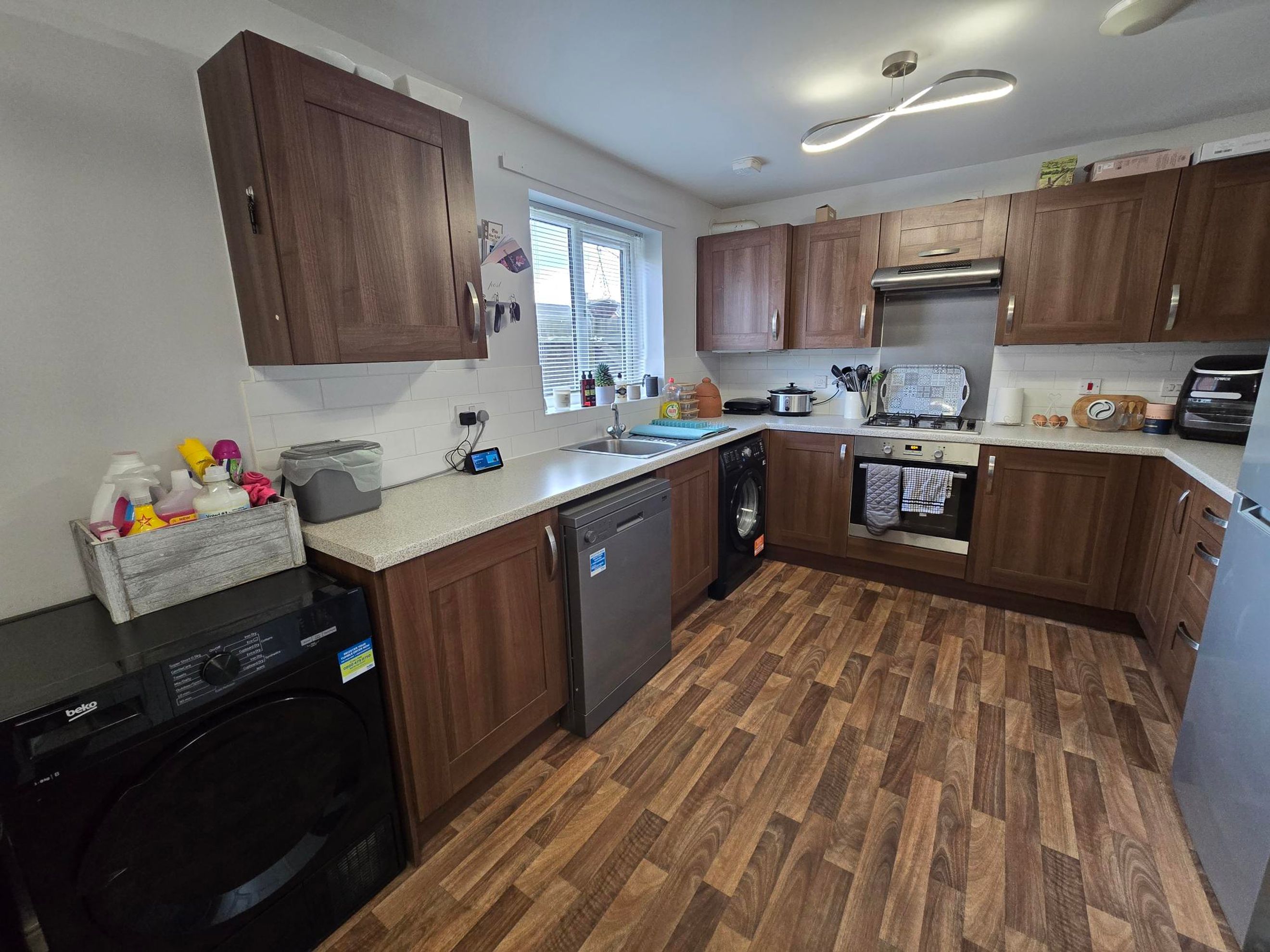 The accommodation begins with a welcoming entrance hall providing access to a downstairs cloakroom, a stylish kitchen/diner straight ahead, and a bright, generously sized living room off to the left. The living room is dual aspect and has a door that leads directly onto the large rear garden, which also enjoys gated access leading to the two parking spaces.