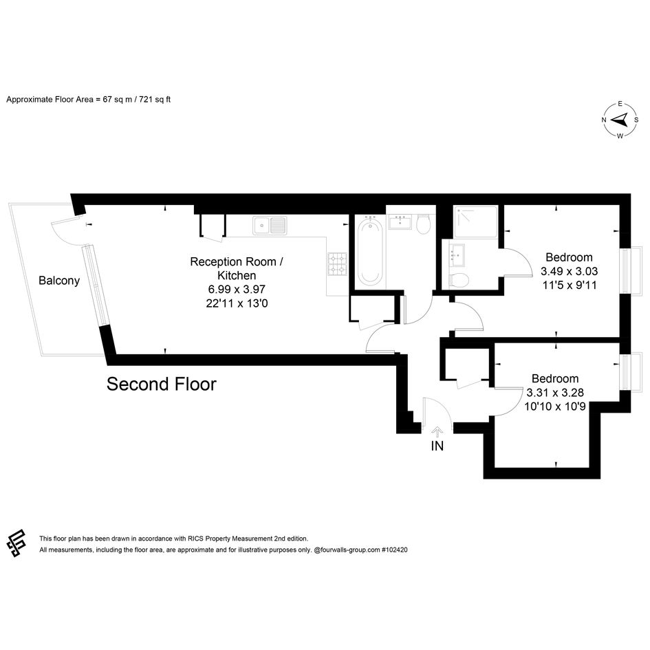 Located on the second floor, the property welcomes you into a well‑arranged hallway that leads naturally through the home. The spacious open‑plan reception room and kitchen forms the central hub, creating an inviting setting for relaxing, dining and entertaining. Generous glazing fills the room with natural light, while the private balcony provides an appealing extension of the living space, ideal for morning coffee or evening unwinding.