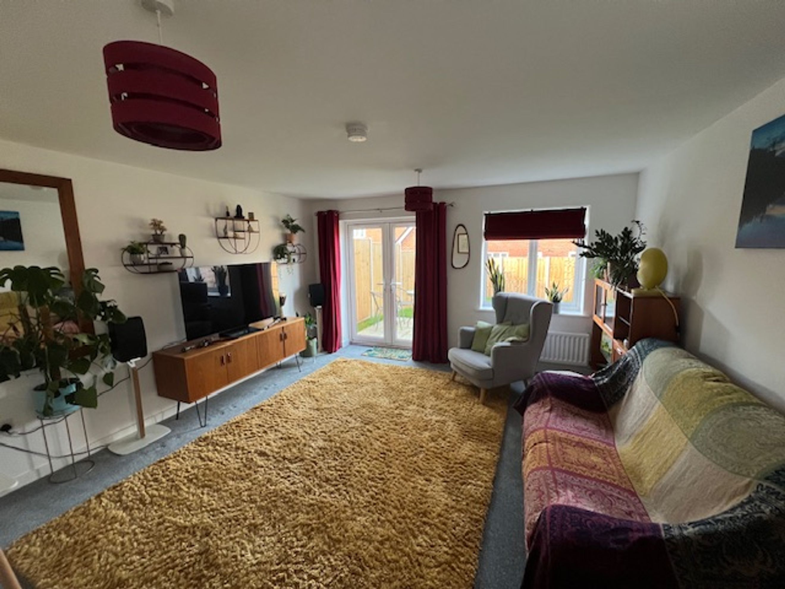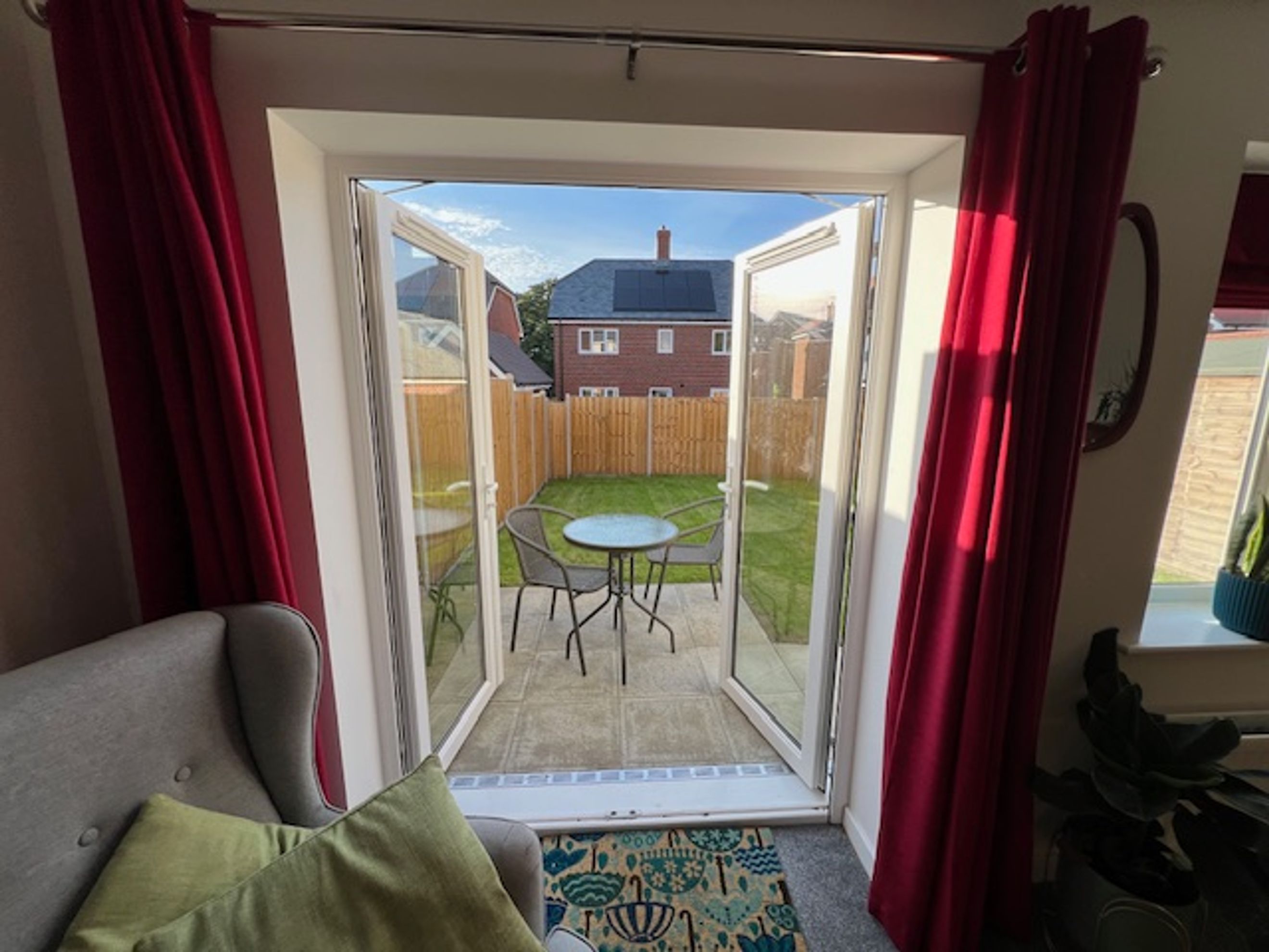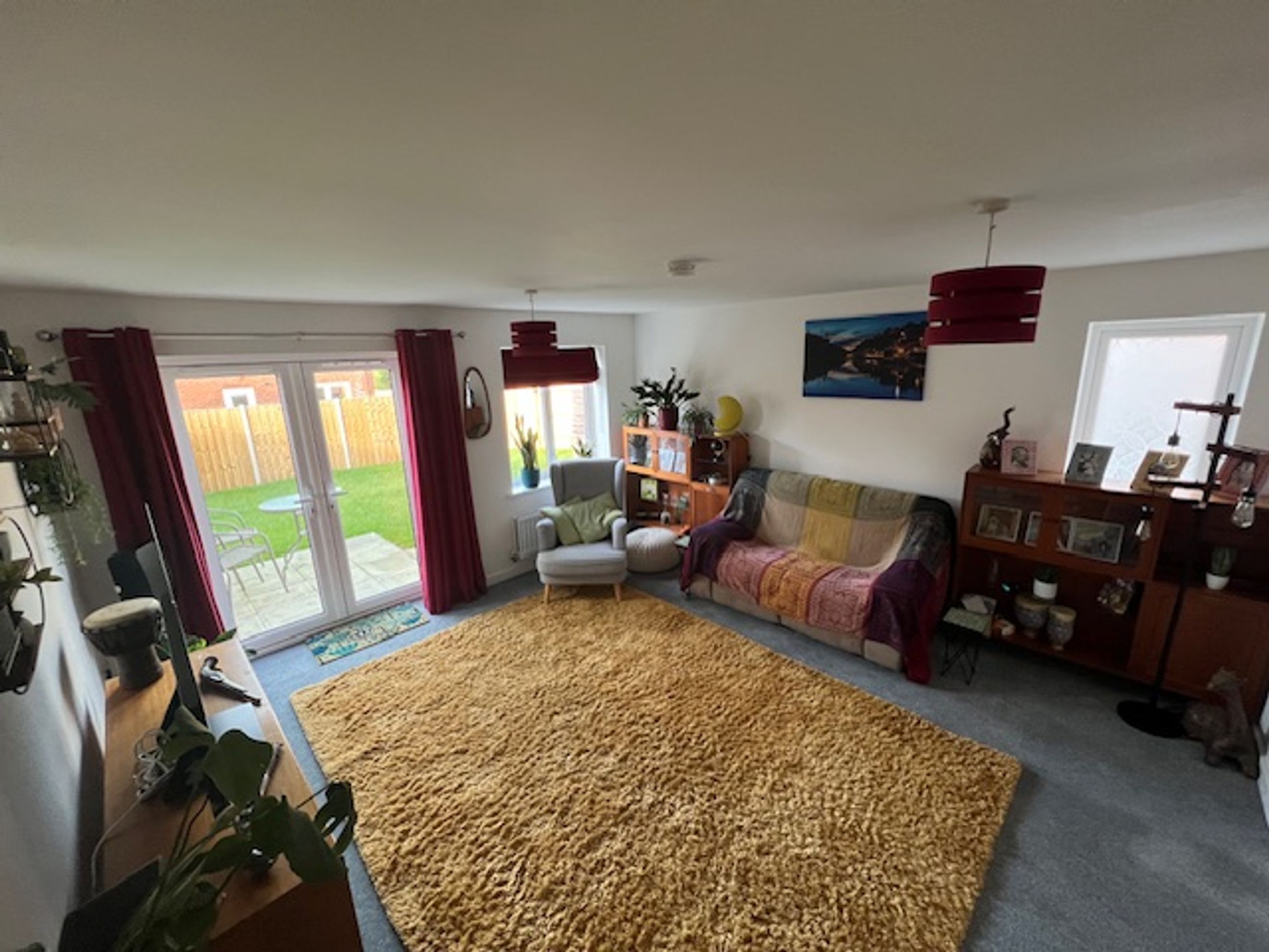The ground floor includes a practical downstairs WC and a good‑sized lounge with patio doors opening onto the rear garden.