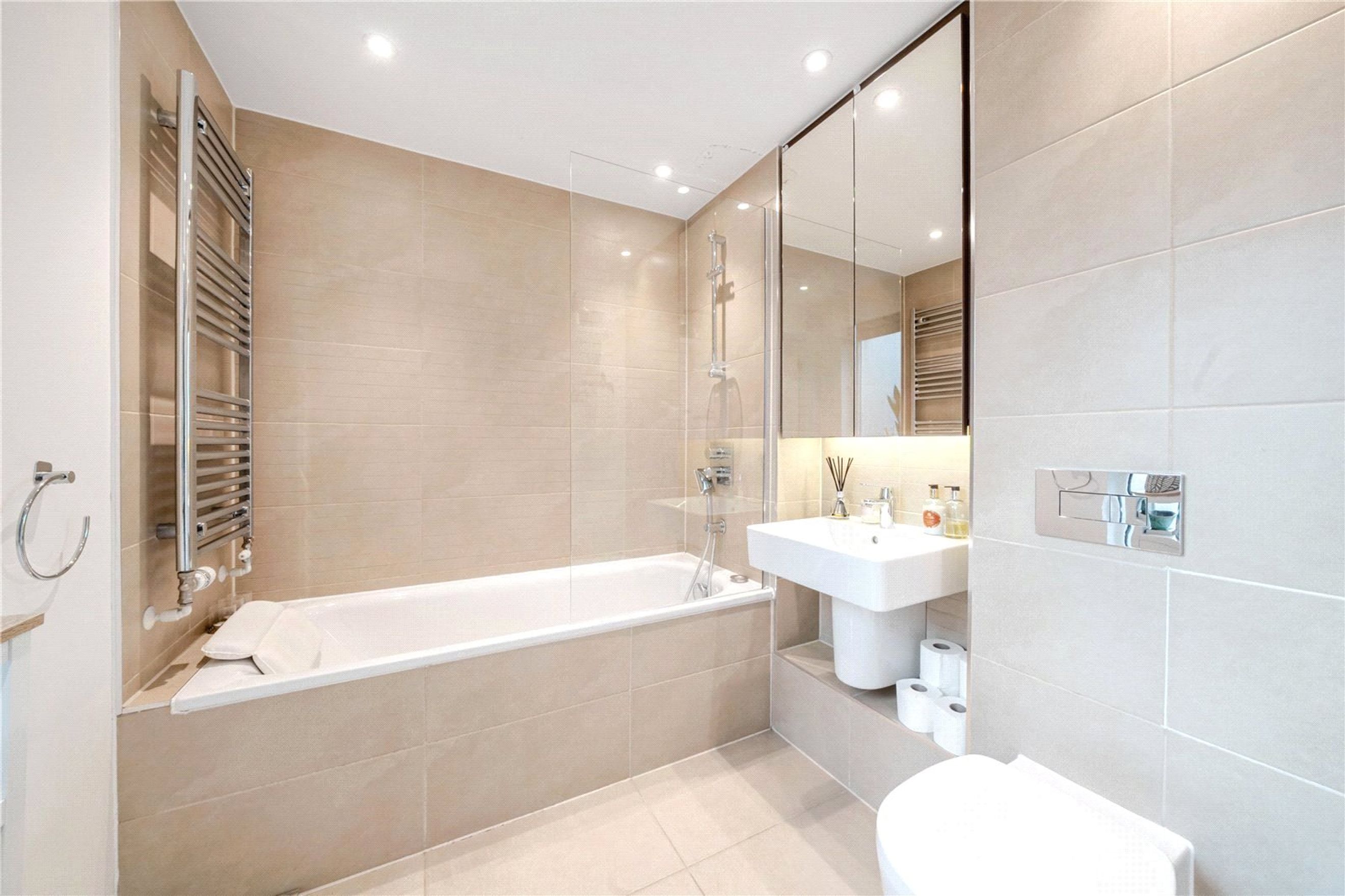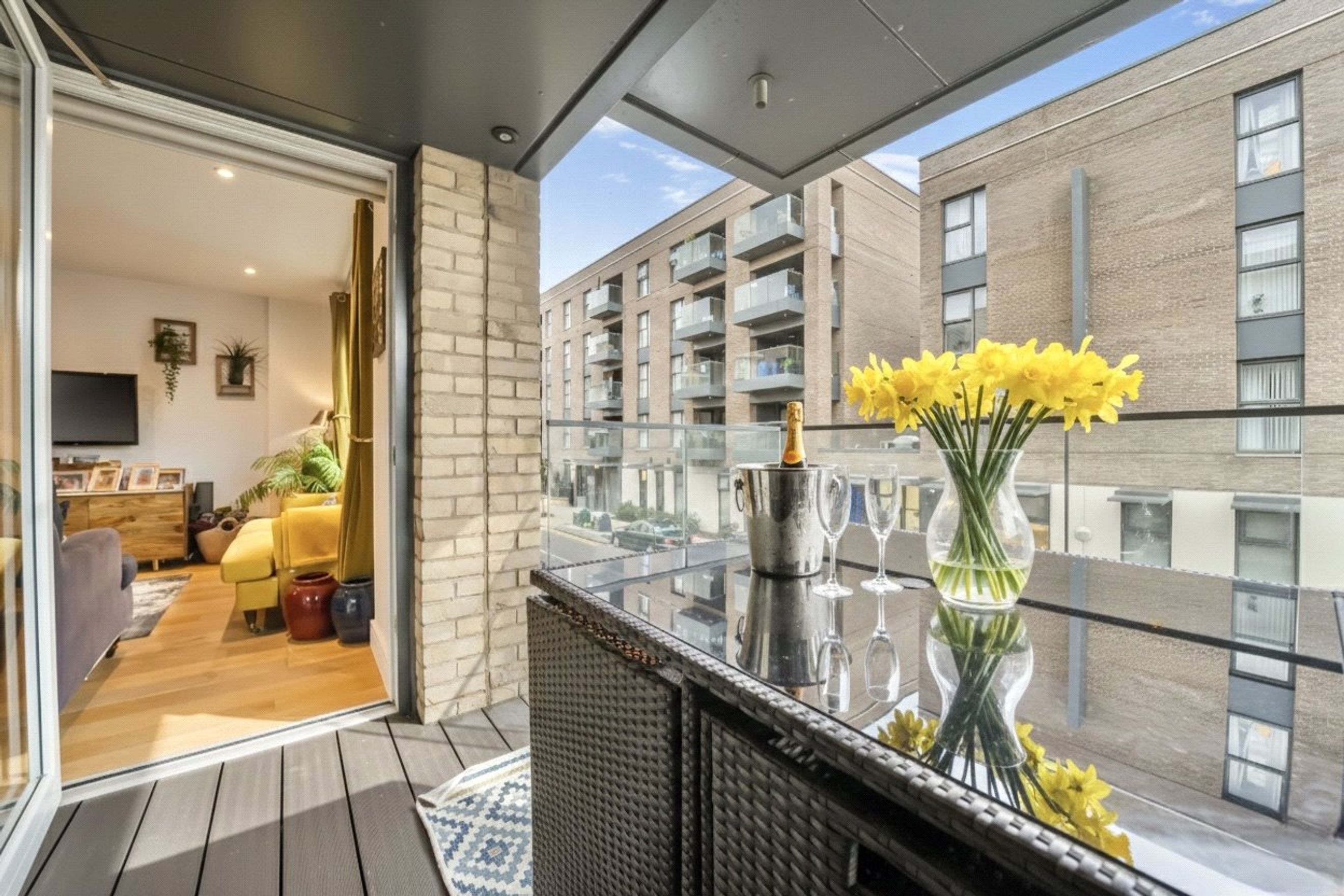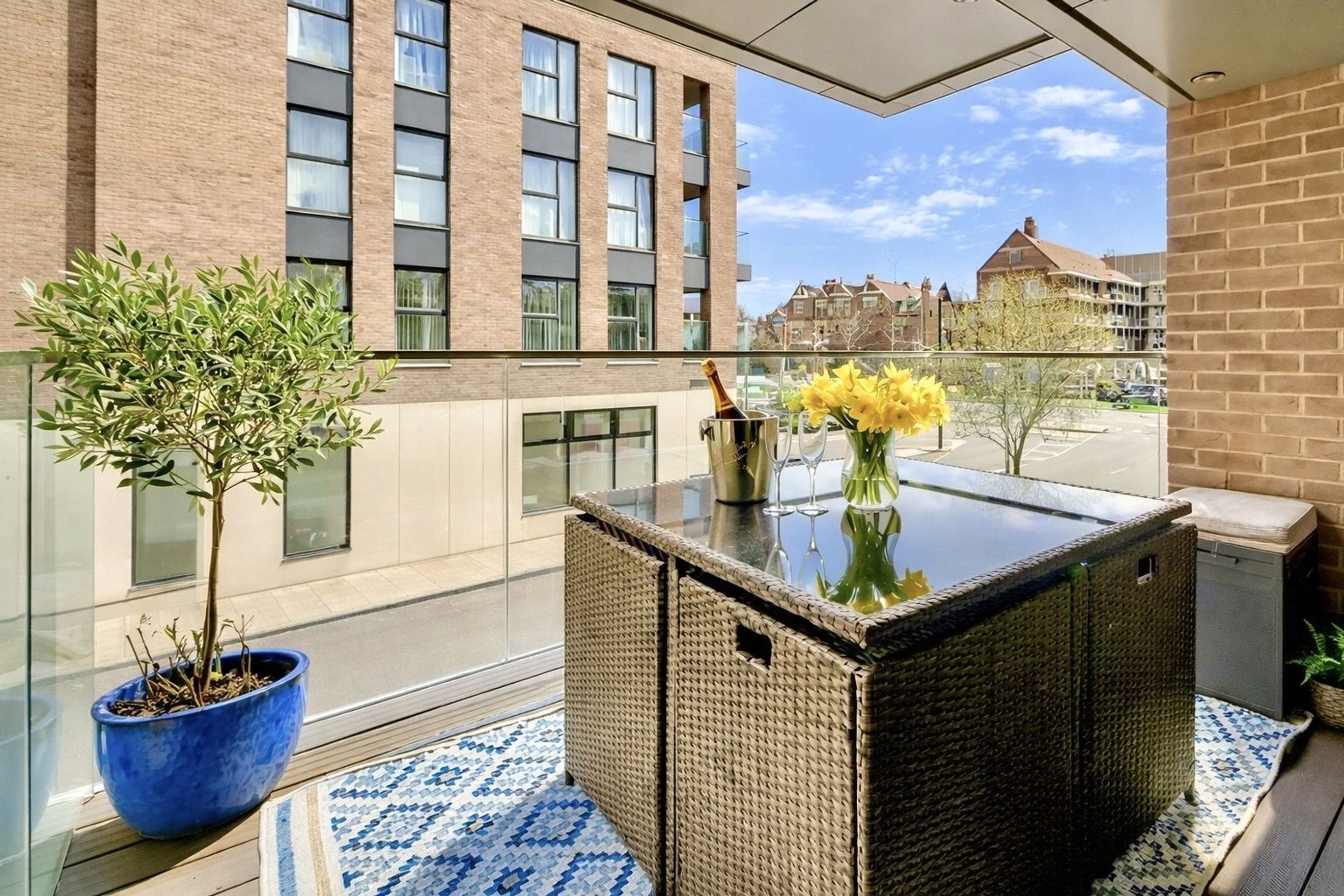 There are two well proportioned bedrooms, including a principal bedroom with an en suite and direct access to the private balcony. The apartment further benefits from a contemporary bathroom suite.