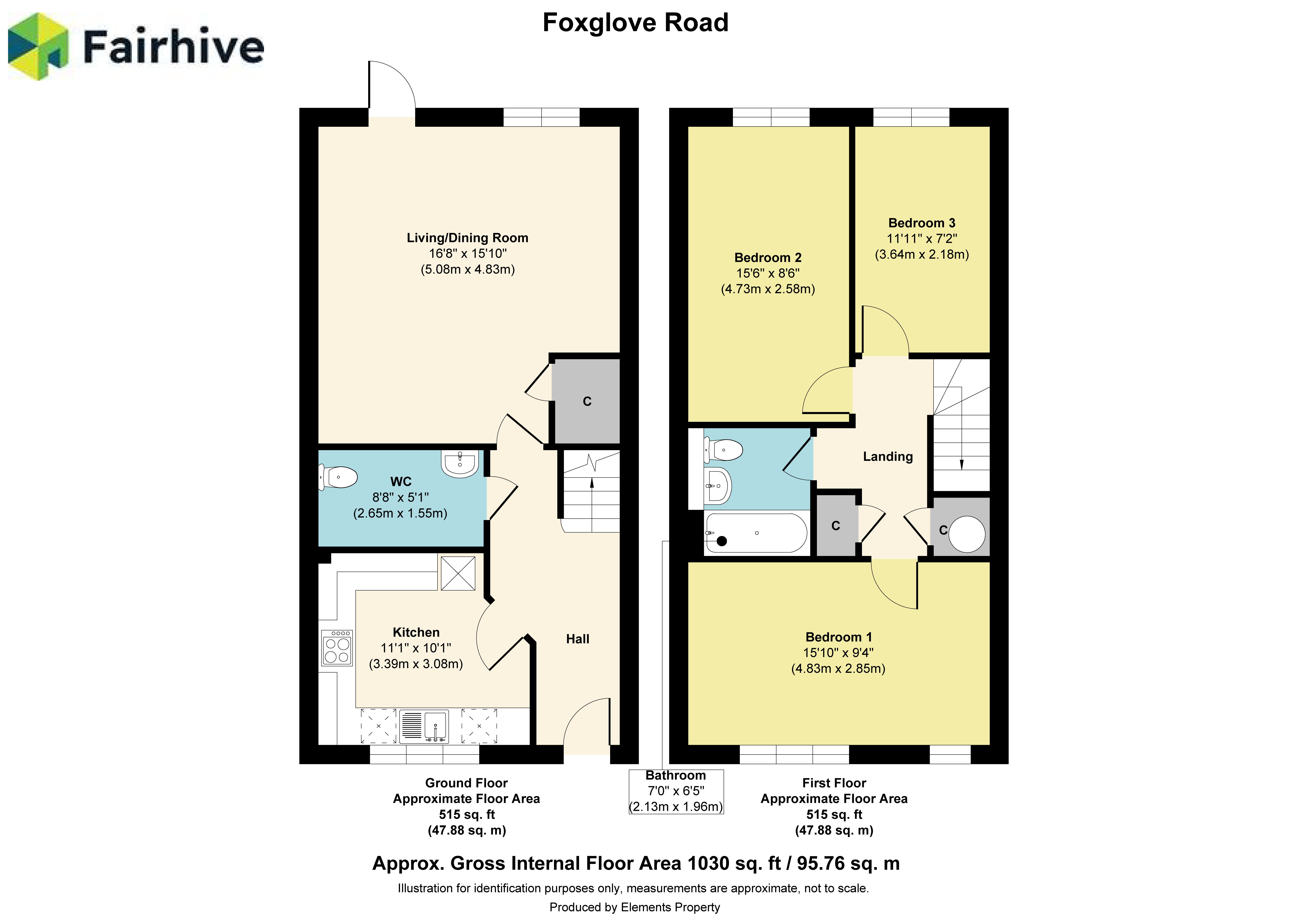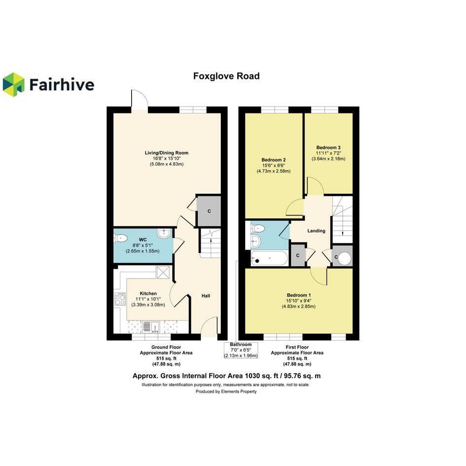 The property consists of a kitchen, living/dining room, downstairs WC on the ground floor and 3 bedrooms and a bathroom on the first floor.