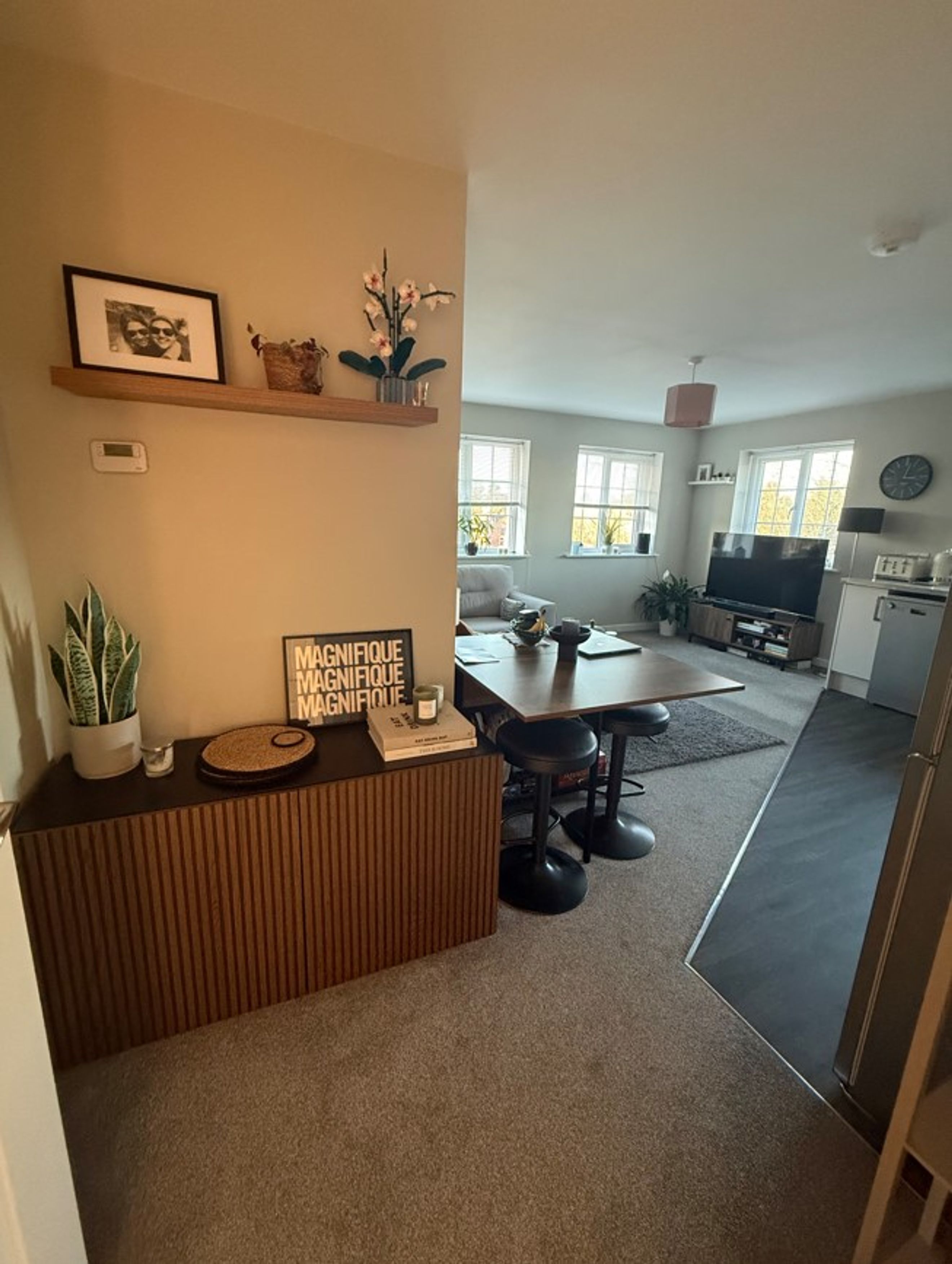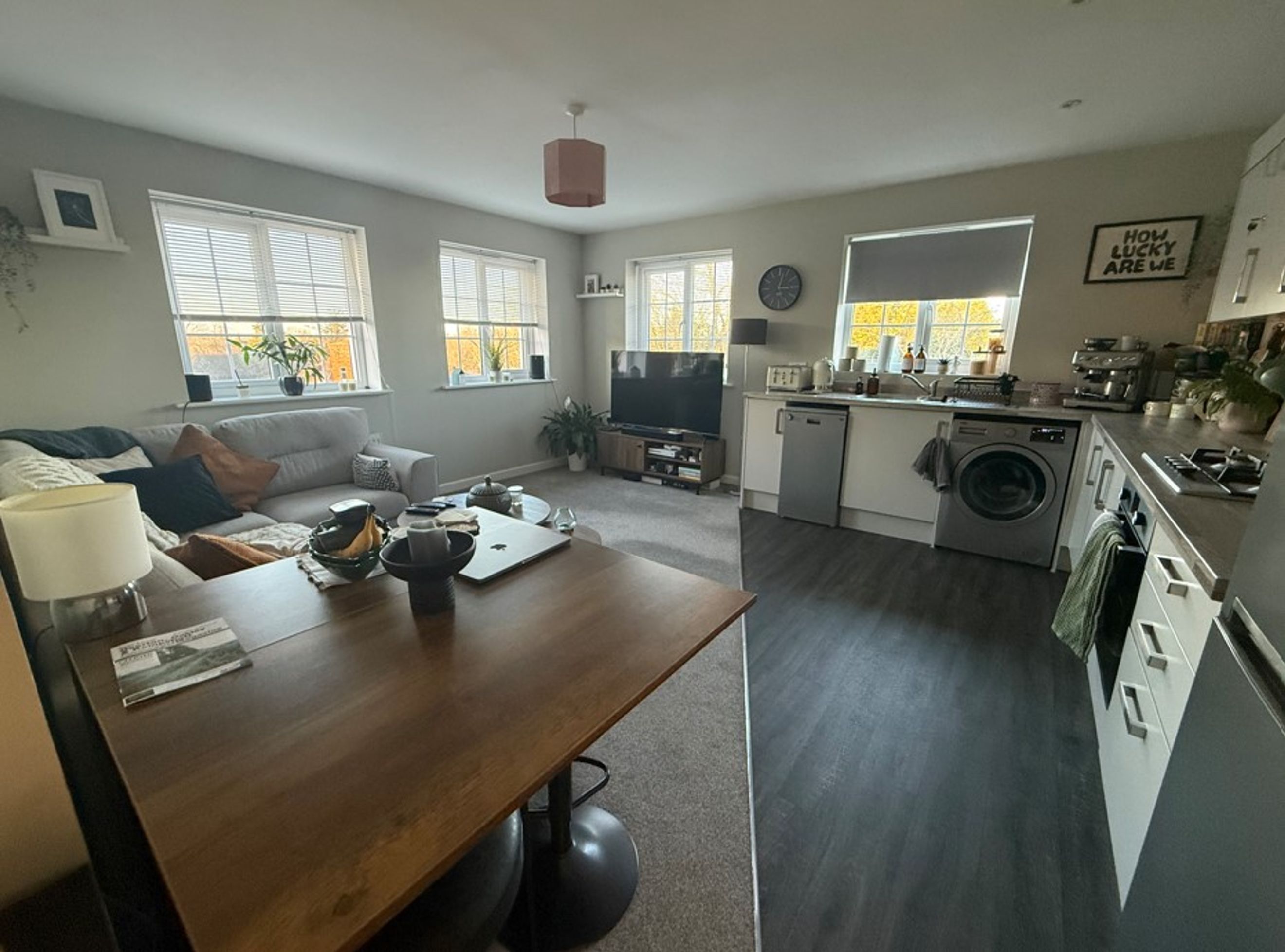 A well‑presented two‑bedroom maisonette set in a peaceful village-style area on the outskirts of Basingstoke, offering a blend of modern living and countryside charm. The property opens into an entrance hallway with a large storage cupboard, leading through to a bright open‑plan kitchen, lounge and dining area. The kitchen includes an oven, hob and extractor, with space for your own washing machine and fridge freezer, while the living space provides plenty of room for relaxing or entertaining.