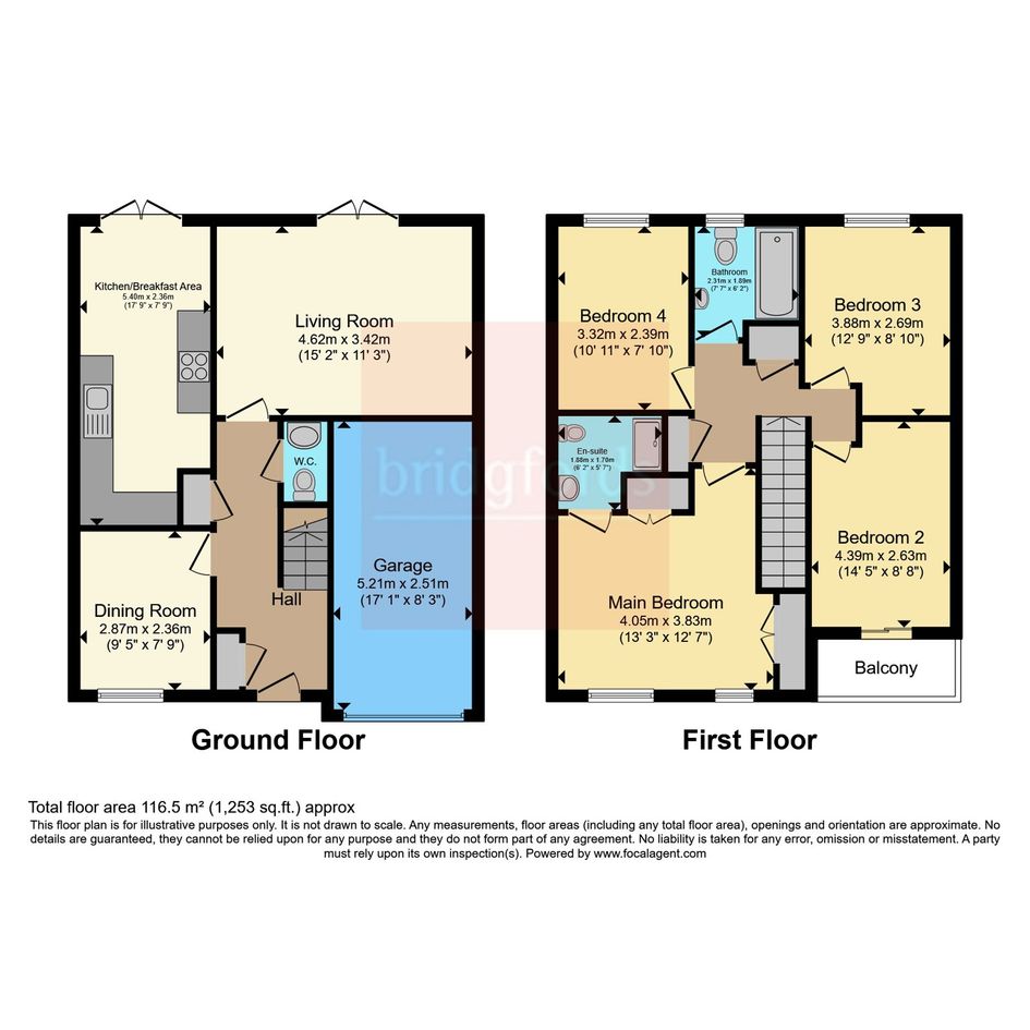Upstairs, the property boasts four generously sized double bedrooms. The master bedroom features a fully tiled en suite, while a well-appointed family bathroom serves the remaining rooms. The downstairs WC is also elegantly half-tiled.