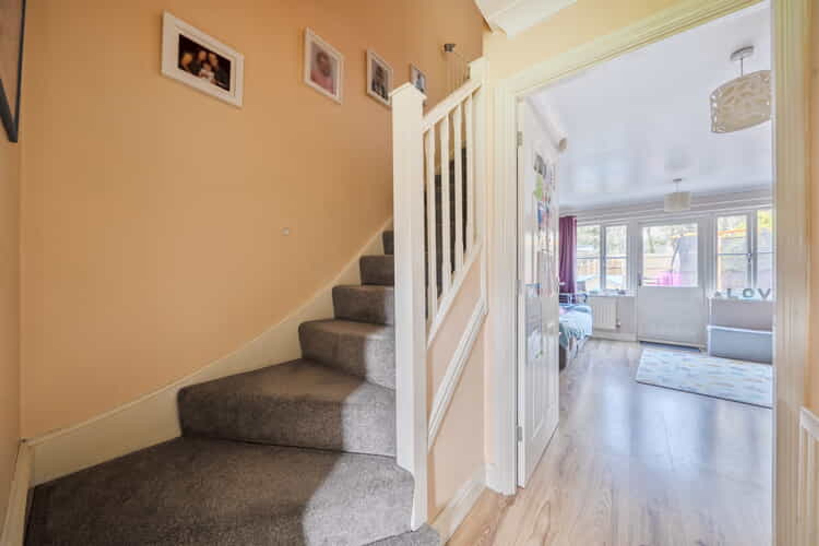 The property on the ground floor comprises an entrance hall, cloakroom with WC, a living room and kitchen. On the first floor, there is a landing with a fitted airing cupboard, a bathroom with WC and two bedrooms (one with a fitted cupboard).