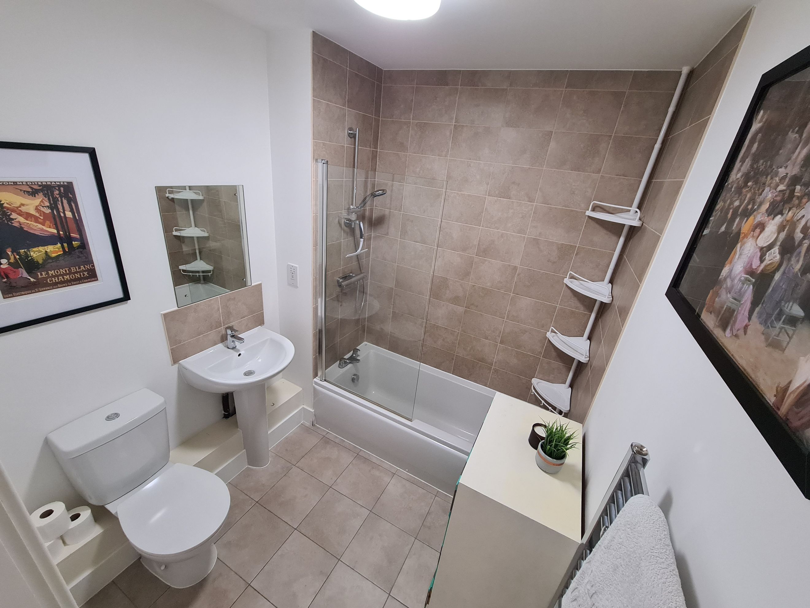 The apartment is set within a contemporary multi-storey residential development, accessed via communal entrance, with a concierge available from 7am-7pm, Monday-Sunday. The property also has access to a shared garden with a play area. Living here means you are close to local shops and supermarkets for your everyday essentials.