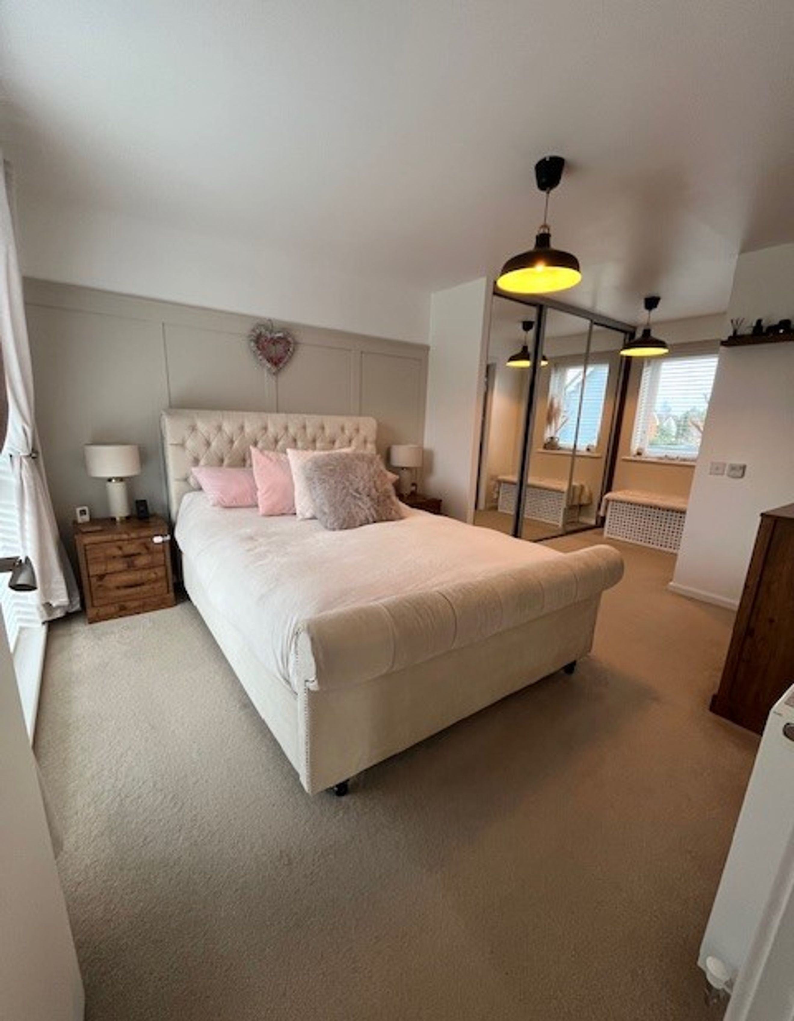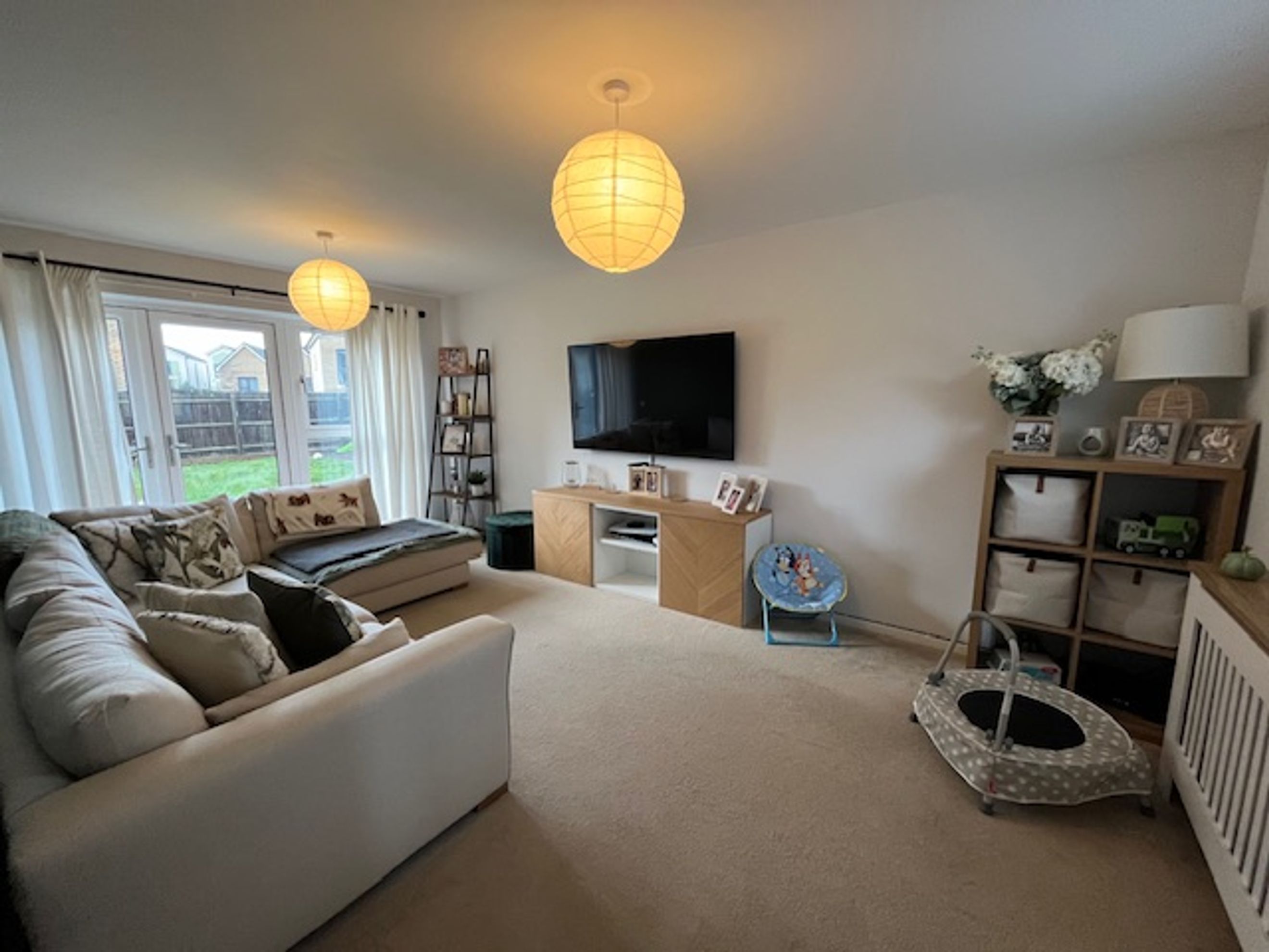 Outside, the property has front and rear gardens, side access, and a driveway with space for two cars.