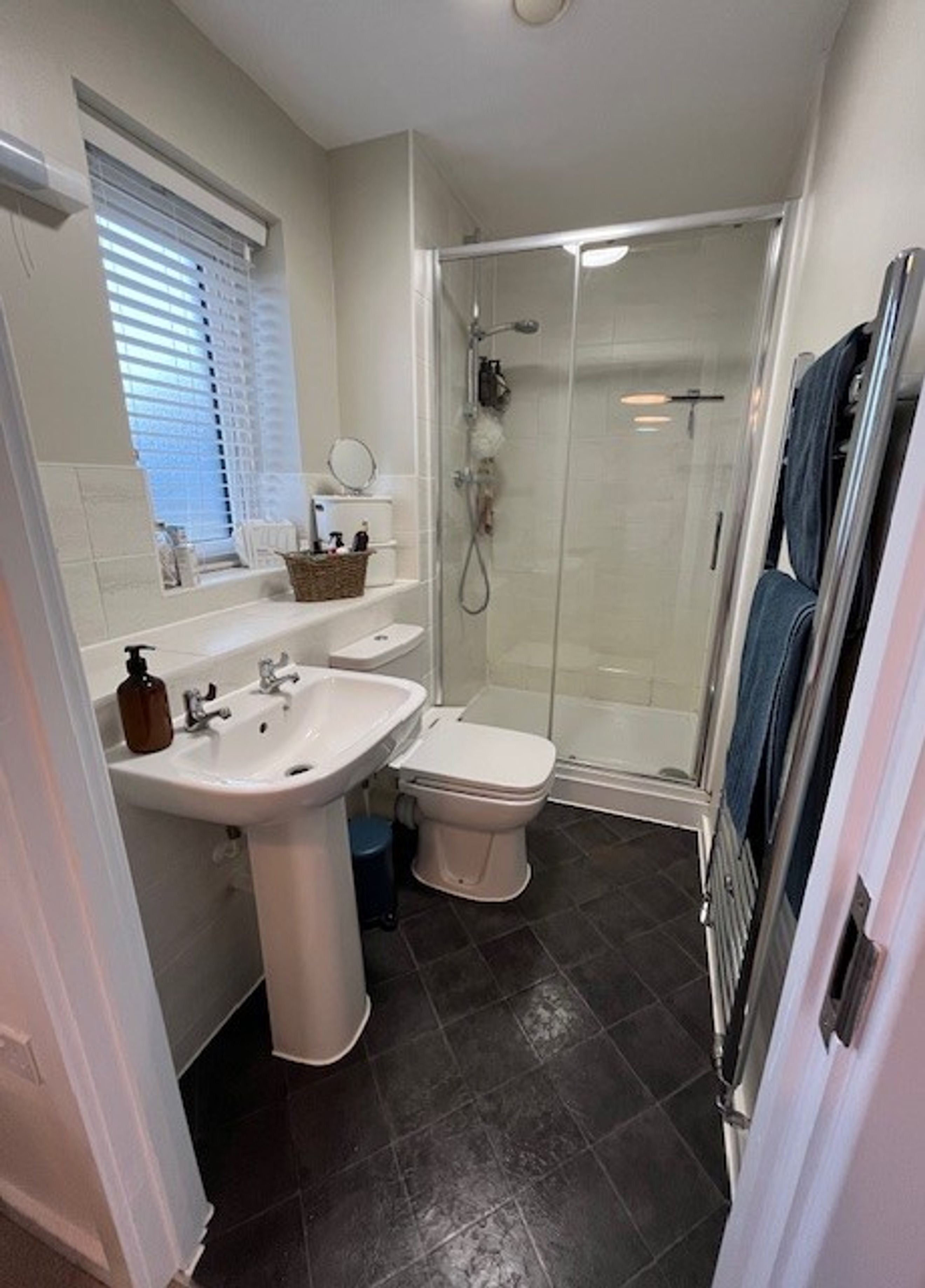 The home features a living room, kitchen/dining area, and a downstairs WC. Upstairs there are three bedrooms, including a main bedroom with an en-suite, plus a family bathroom.