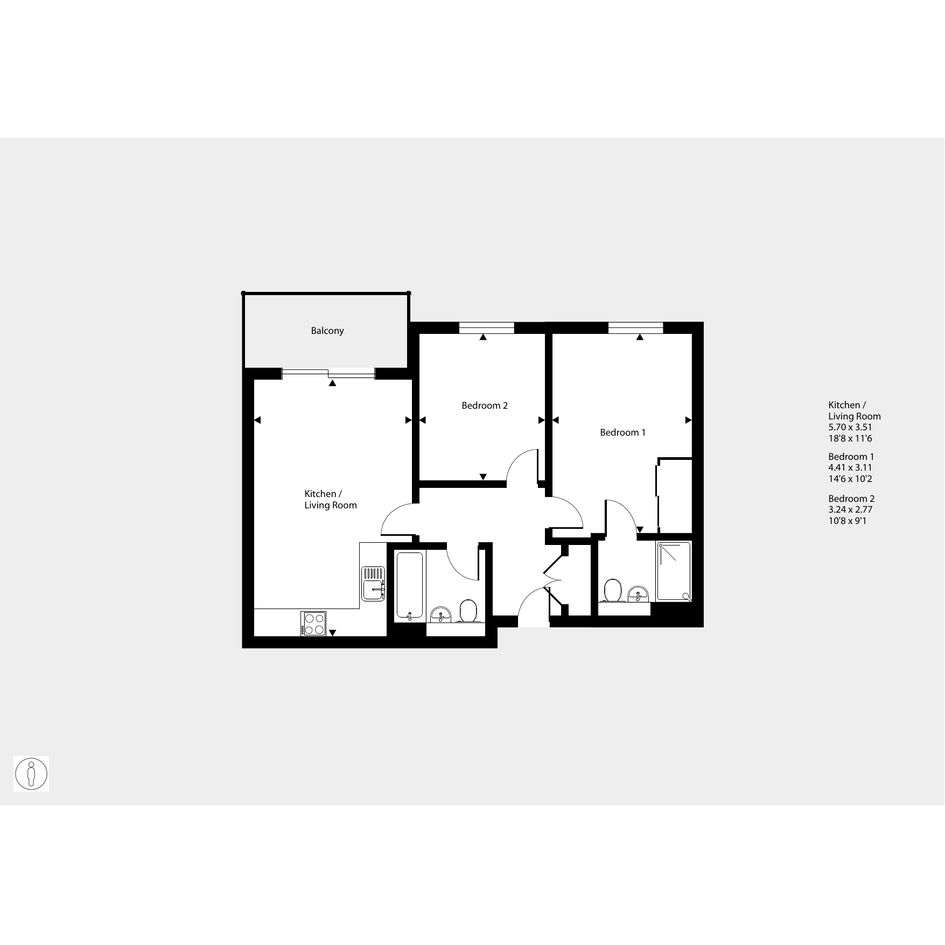 Featuring an open-plan living area with doors leading out onto your balcony. The kitchen has an integrated fridge freezer, oven, hob and hood.