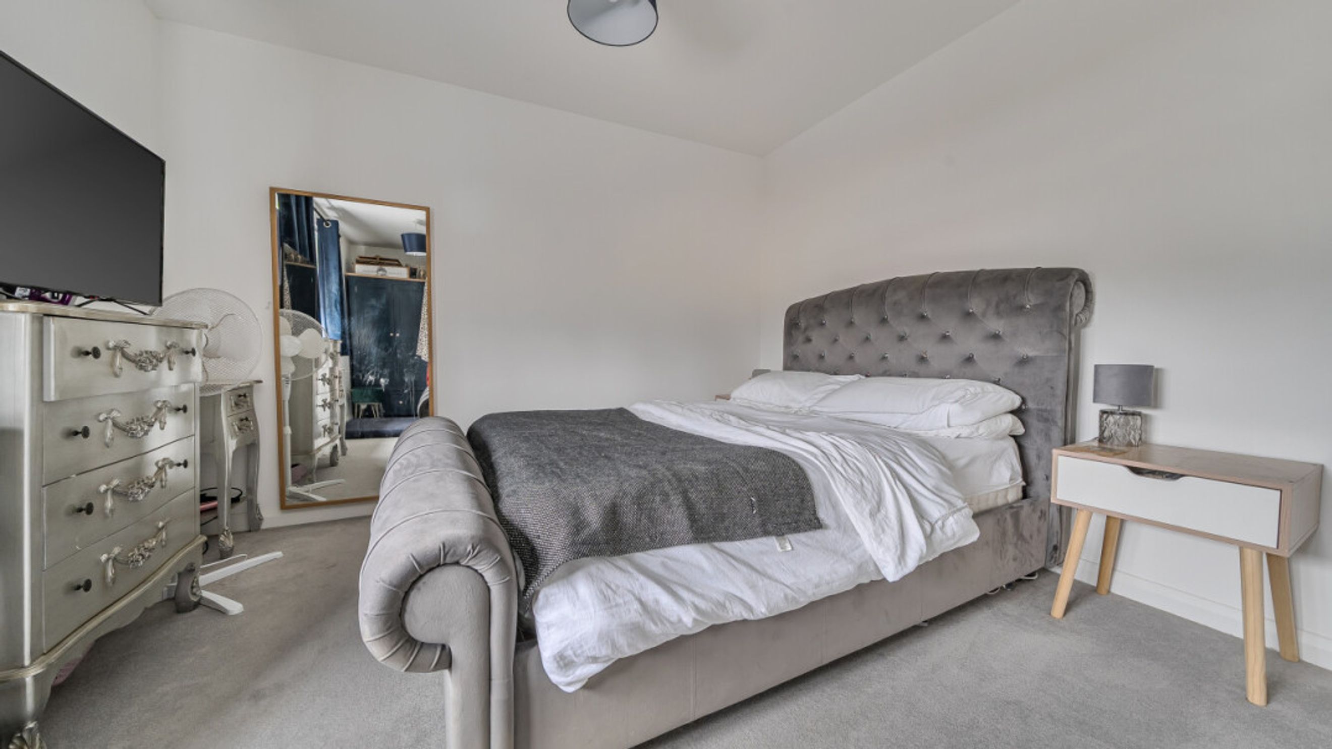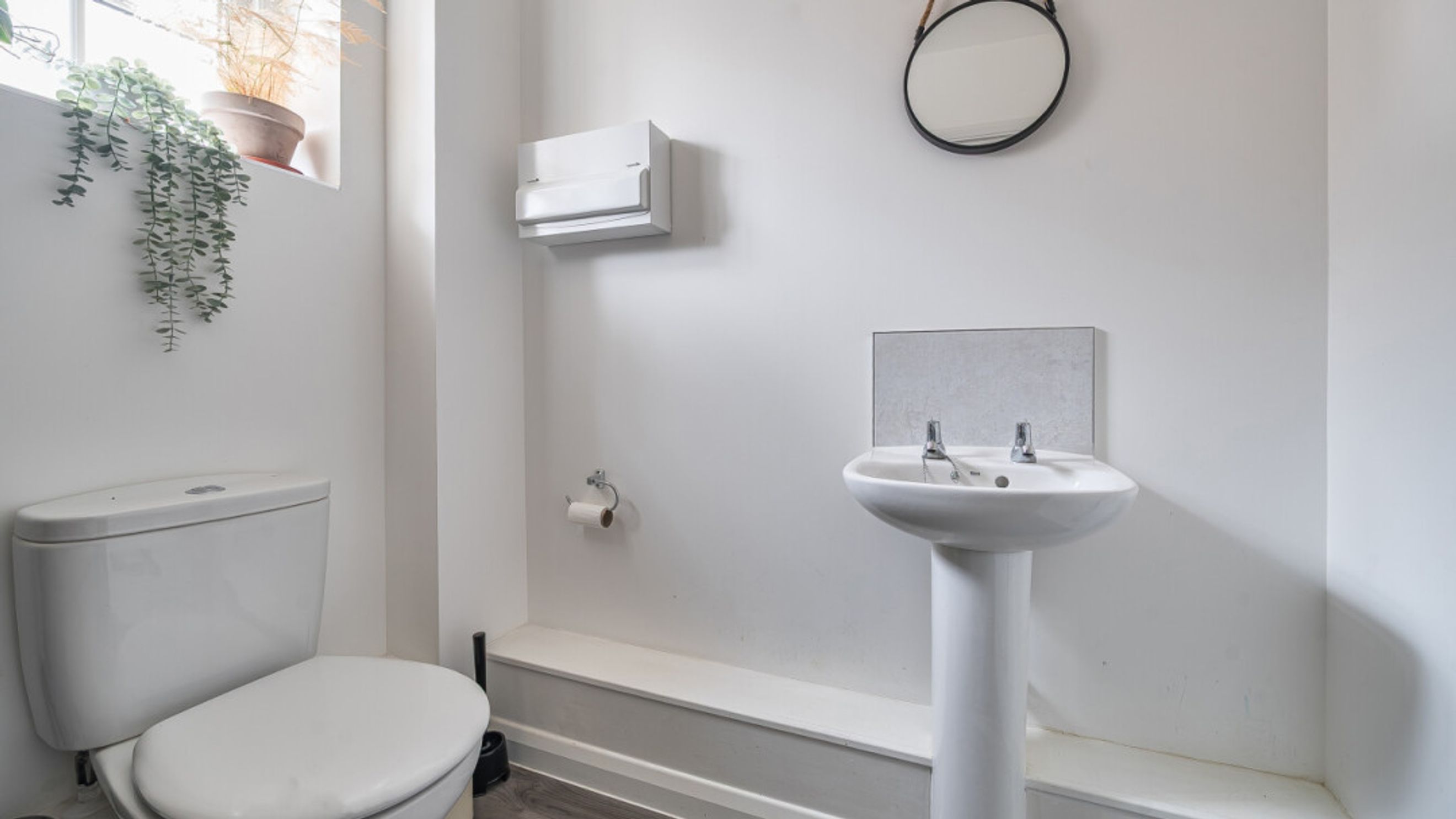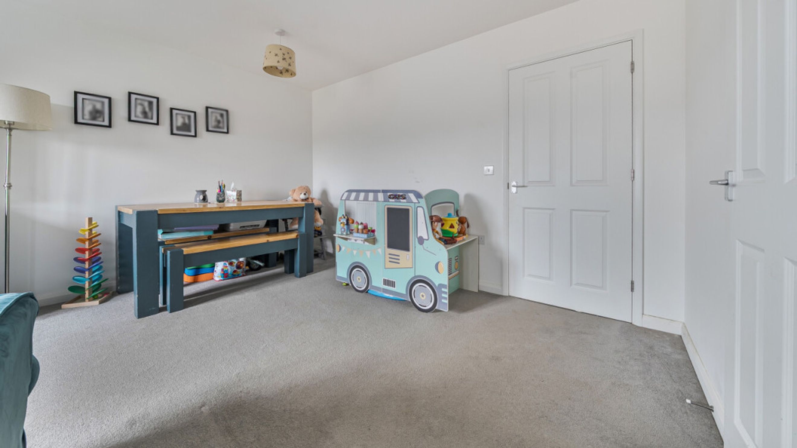 Upstairs, there are two well-proportioned bedrooms, including a particularly spacious principal bedroom, plus a family bathroom. The layout makes the second bedroom ideal for a child's room, guests or a home office.