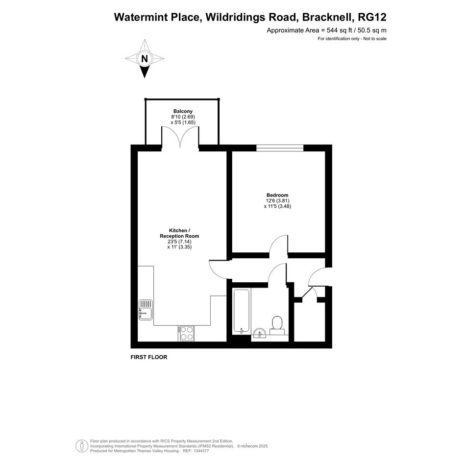 The property is situated on the first floor which comprises one bedroom, a bathroom, and an open reception/ kitchen area leading to a private balcony.