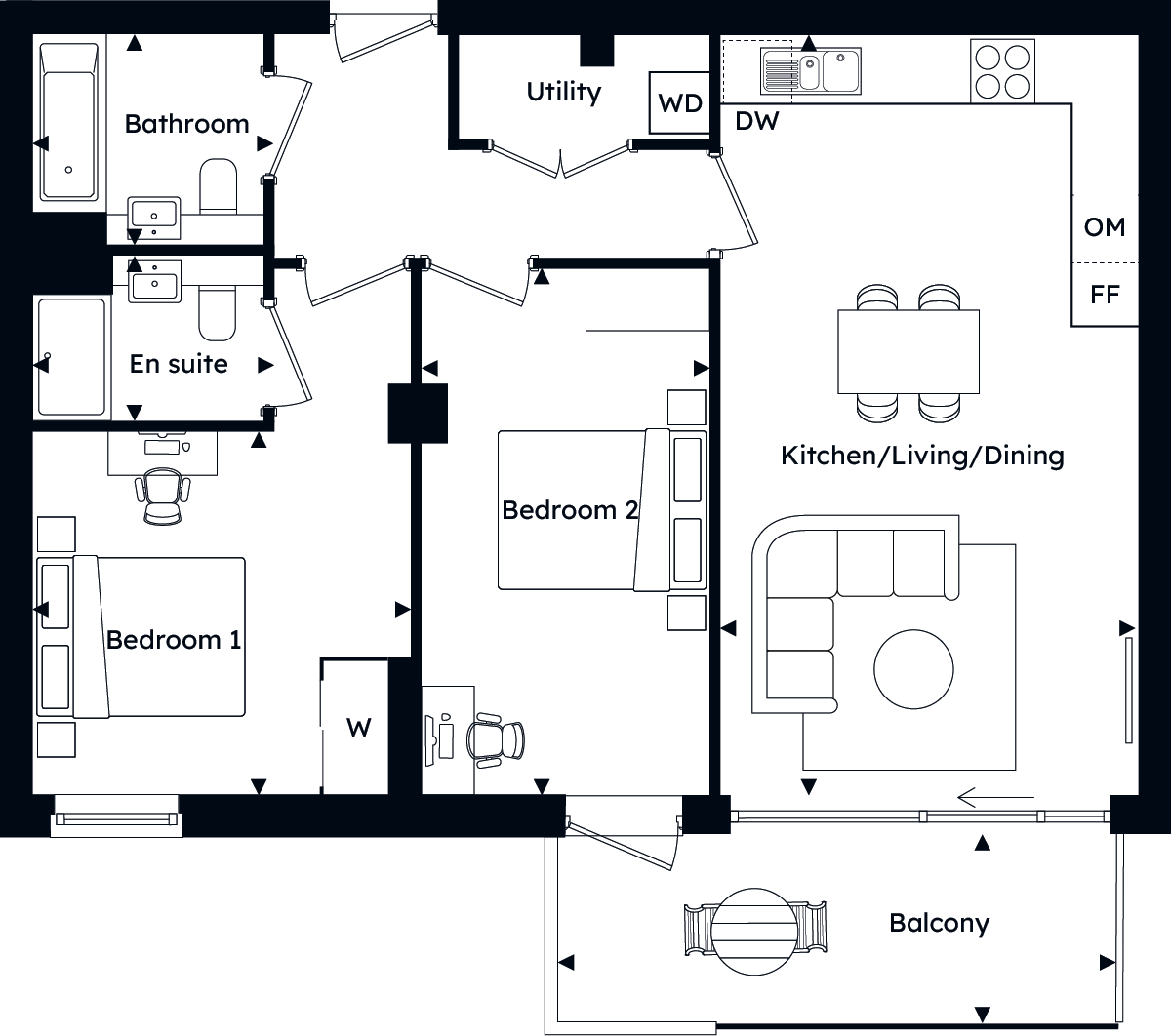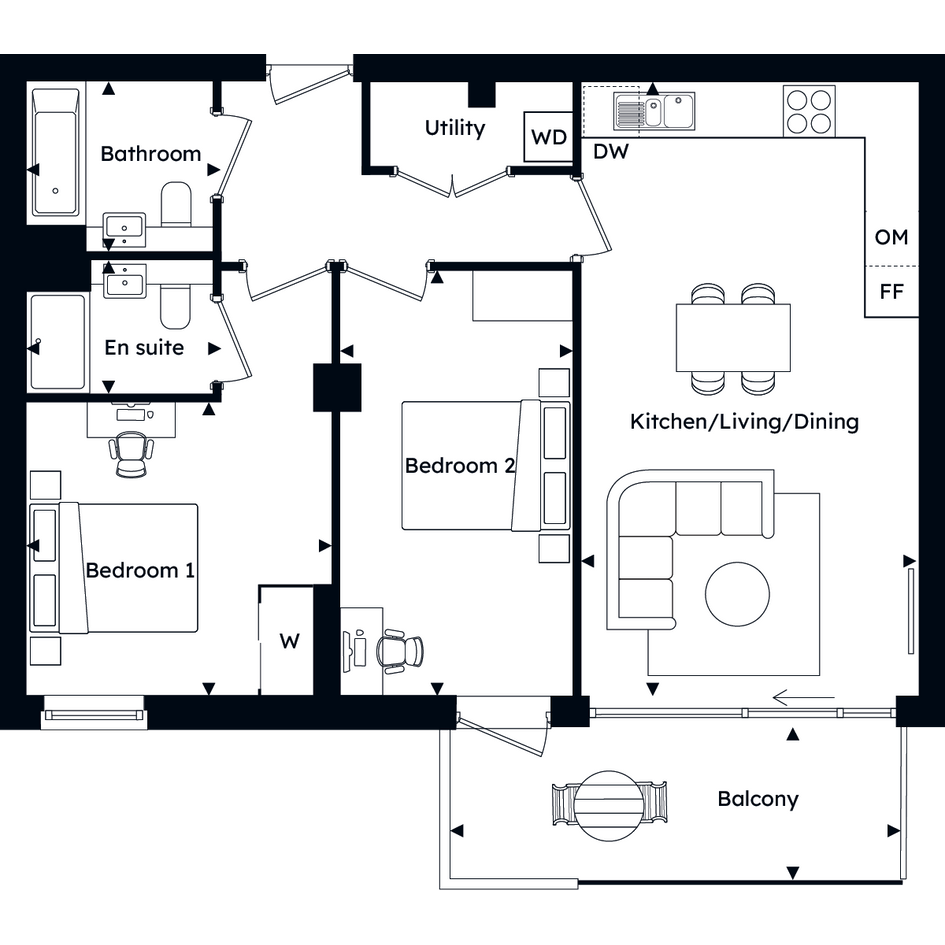 - Private balconies to all homes
