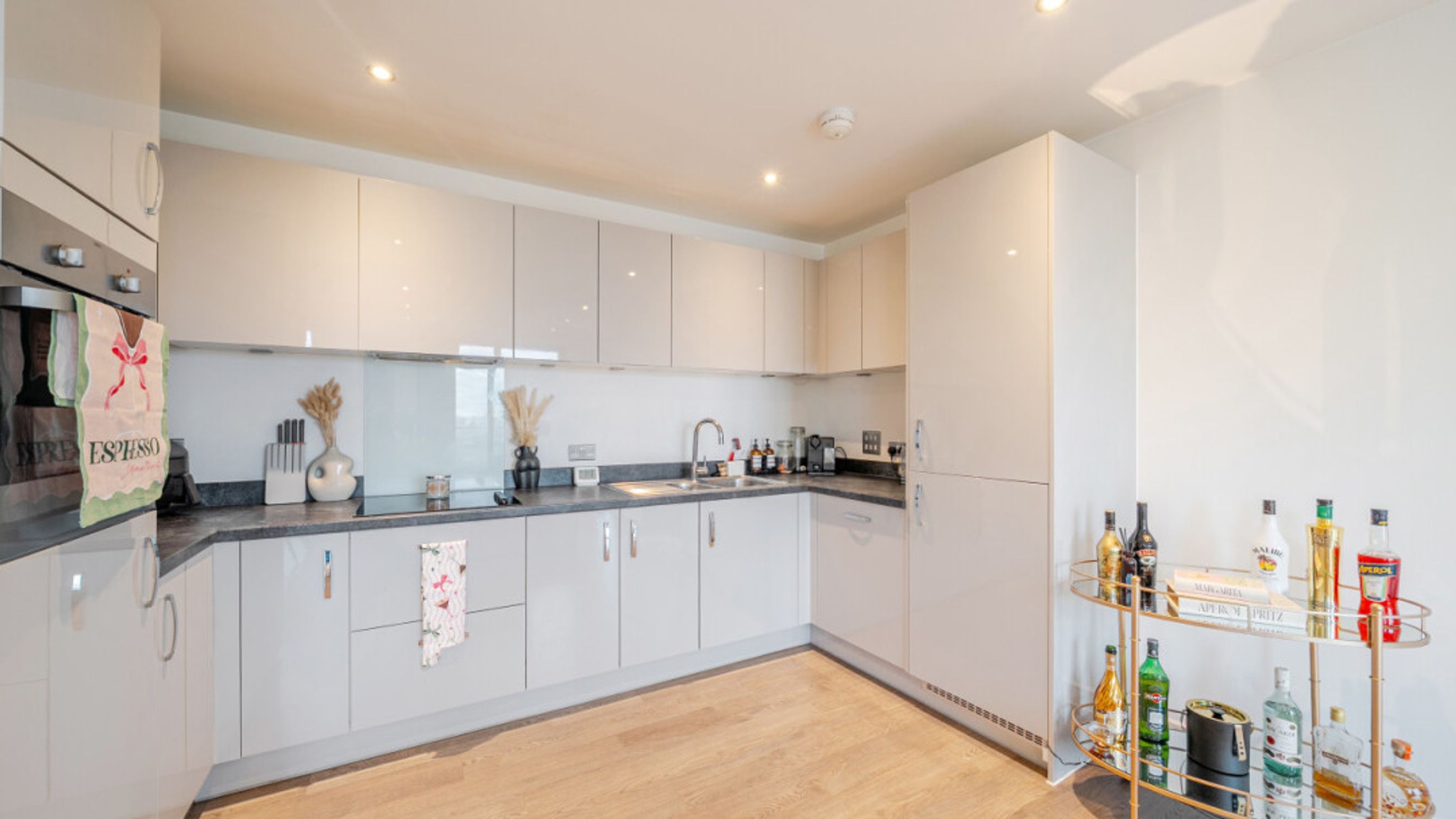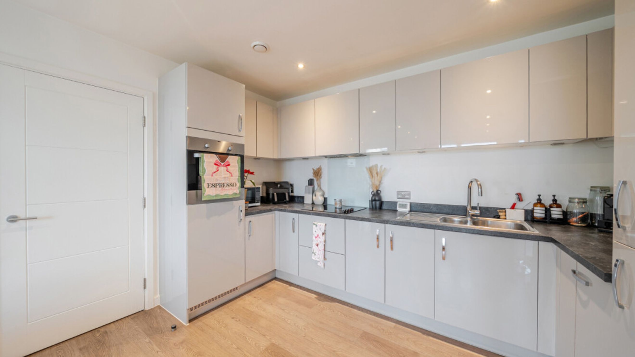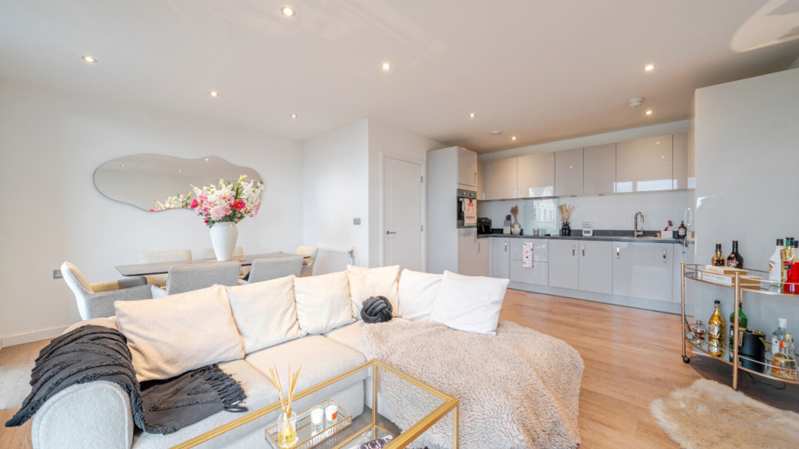 Welcome to this spacious two bedroom well presented apartment. There is a L-shaped living area which opens onto the first of two private balconies which is great for relaxing or entertaining. The apartment is full of natural light. The kitchen is modern fitted with gloss units and the benefit of integral appliances. There are two good sized double bedrooms, the master not only having benefit of a beautiful modern en-suite shower room and built in wardrobe but also its own separate balcony for relaxing. A contemporary family bathroom completes the accommodation with a white three piece suite with shower over bath.
