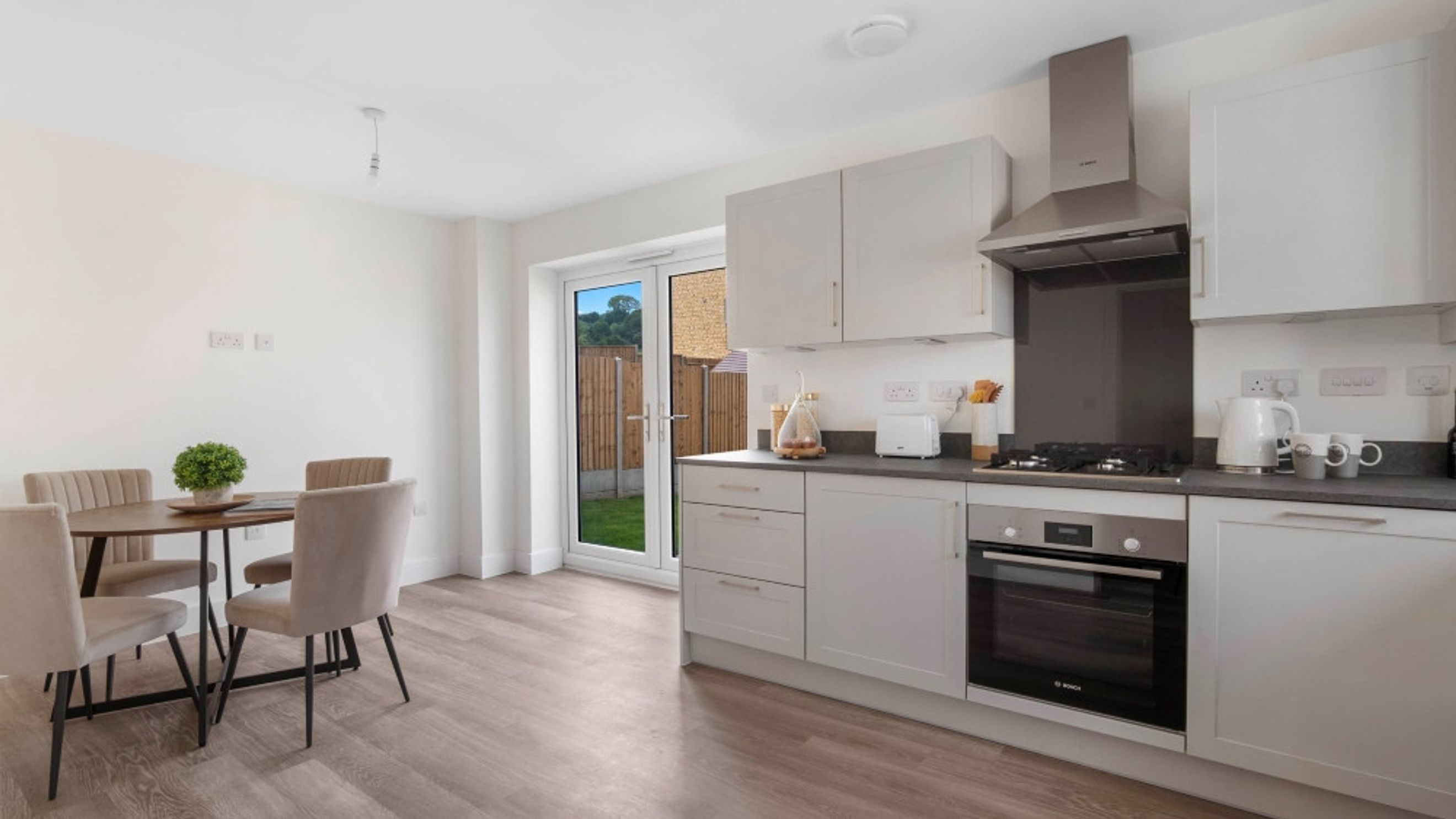The open-plan kitchen with dining area is the heart of this home, offering a versatile space for family meals and with French doors to the rear garden it's ideal for entertaining family and friends. A guest cloakroom and handy under-stair storage cupboard complete the ground floor.