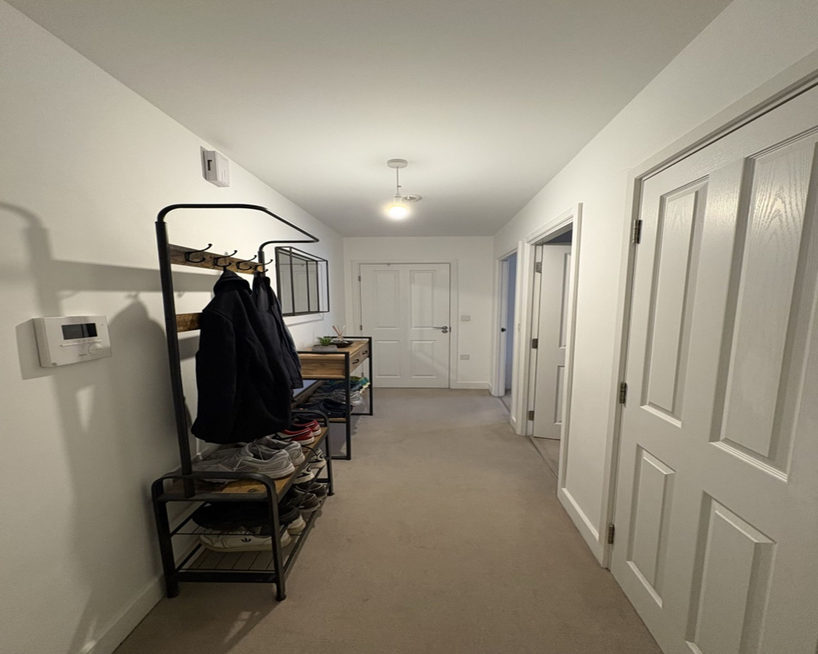 Fitted double wardrobe to bedroom, modern bathroom with shower over bath, large utility cupboard off the hallway which can house a washer/dryer.