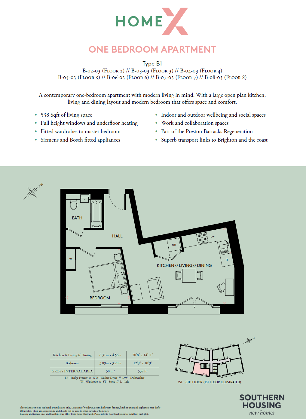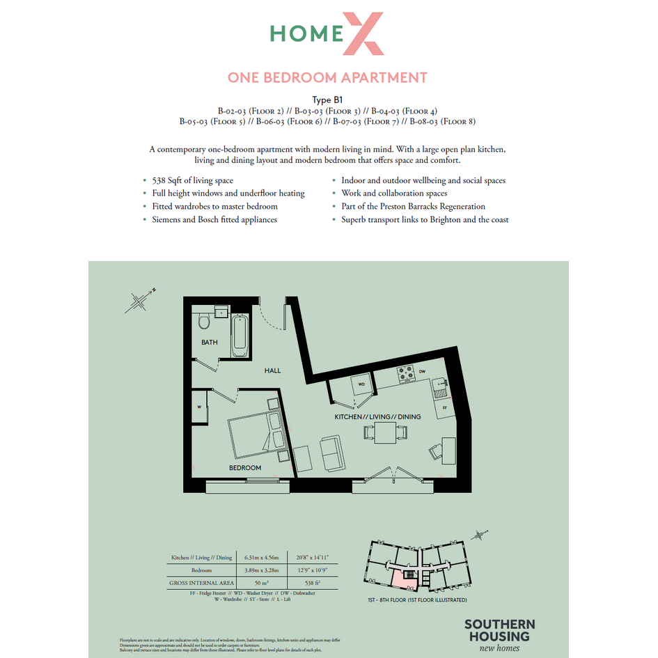 Home X is crafted with your everyday living and wellbeing in mind. Step into an apartment bathed in natural light where the open-plan living room offers the flexibility to design your perfect living area, while the stylish kitchens boast contemporary worktops and sleek, handleless, soft-close units in a sophisticated indigo hue. Each apartment is thoughtfully equipped with integrated appliances, underfloor heating, and a state-of-the-art video/ phone entry system, ensuring your comfort and peace of mind.