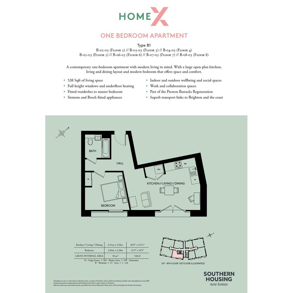 Home X is crafted with your everyday living and wellbeing in mind. Step into an apartment bathed in natural light where the open-plan living room offers the flexibility to design your perfect living area, while the stylish kitchens boast contemporary worktops and sleek, handleless, soft-close units in a sophisticated indigo hue. Each apartment is thoughtfully equipped with integrated appliances, underfloor heating, and a state-of-the-art video/ phone entry system, ensuring your comfort and peace of mind.
