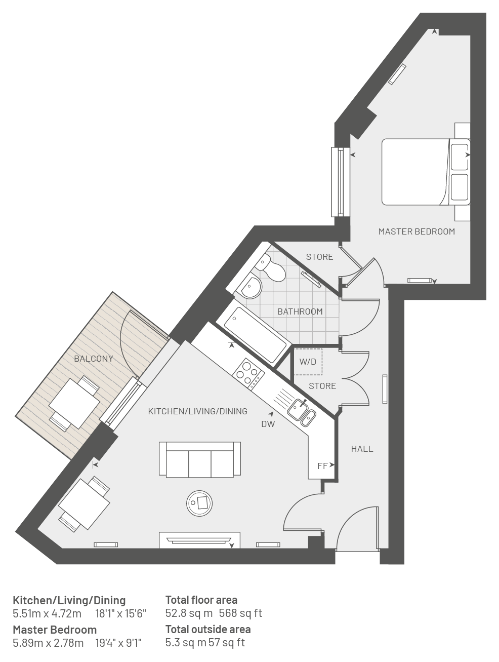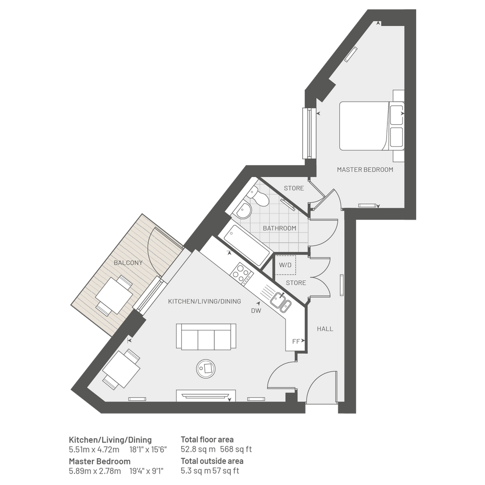 Plot 106, The Aspen,1 Bed, 1 Bath and balcony 568 Sq Ft